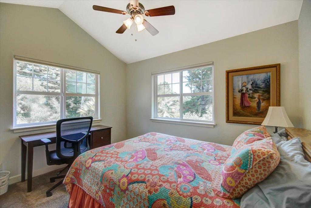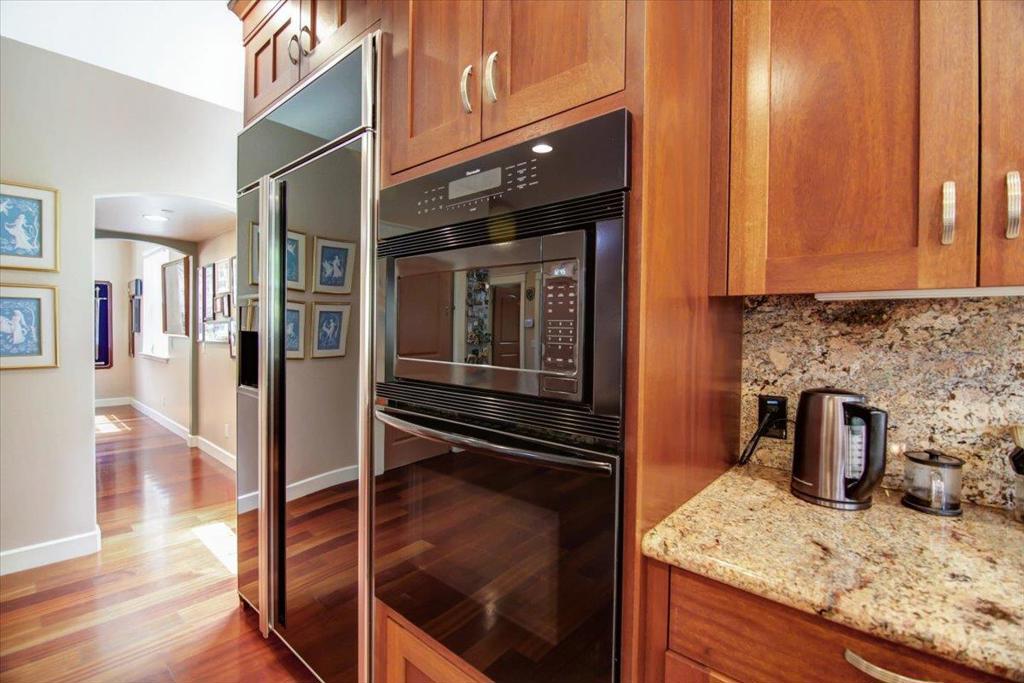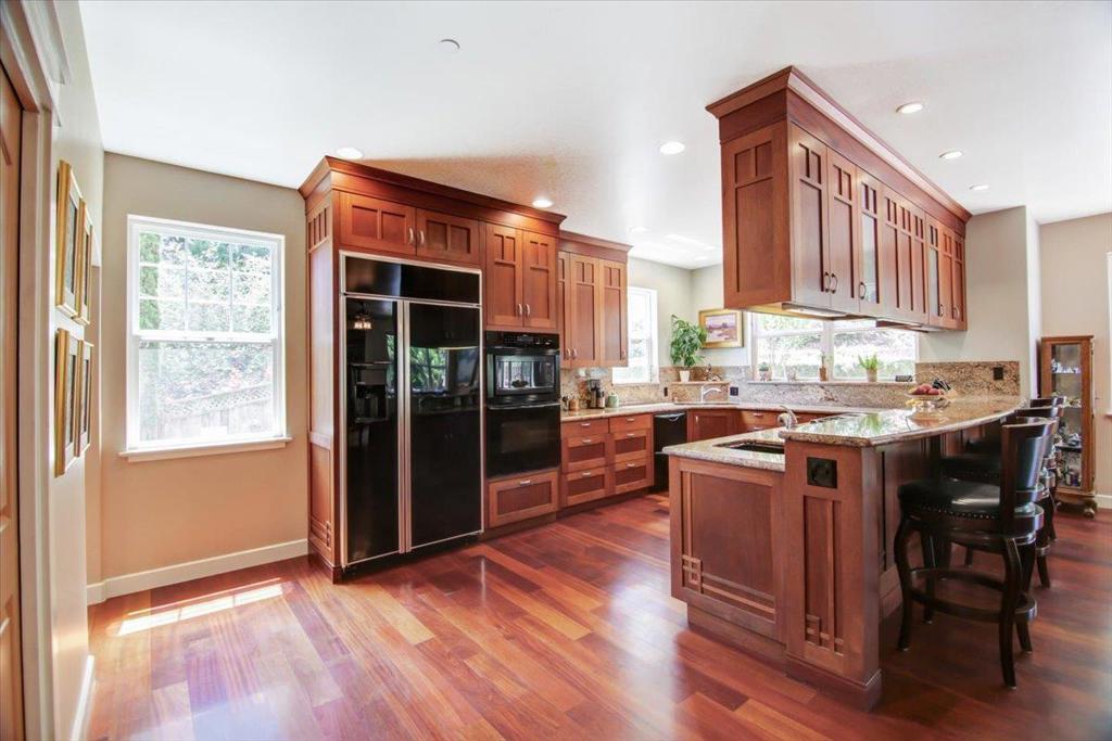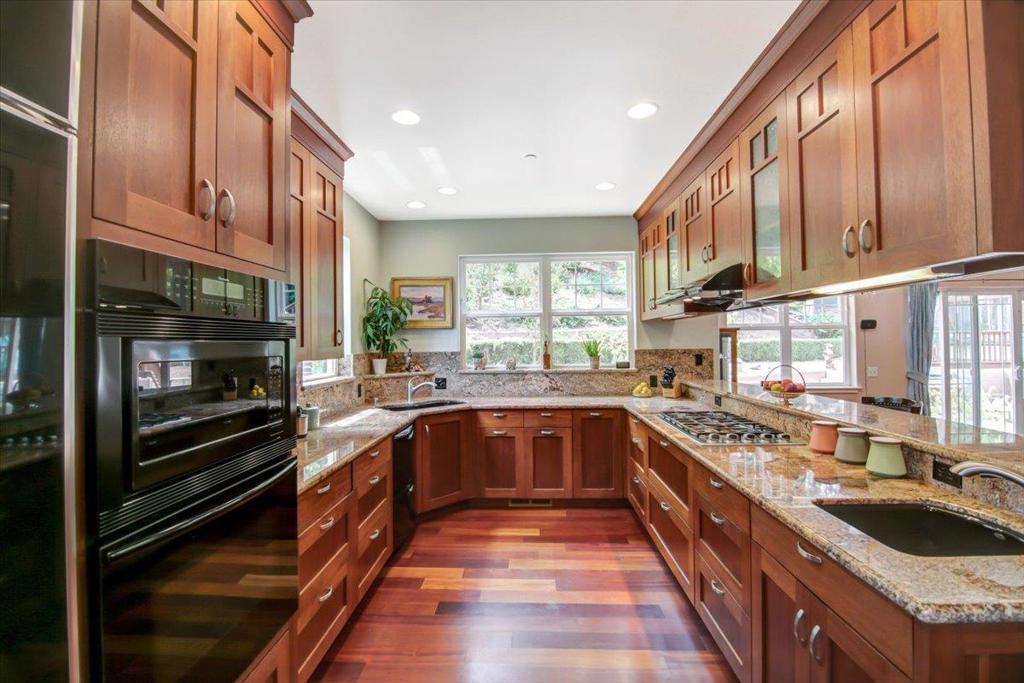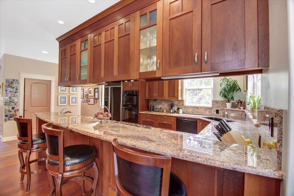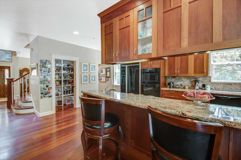 You're going to love this custom country Craftsman home with a 7 minute drive to Hwy 1, without all the work of owning a home in the country. Custom made Mahogany cabinetry throughout the home, with granite countertops in the kitchen. The chef's kitchen includes dual dishwashers and an open kitchen. There's a limestone entryway surrounded by the beautiful Brazilian Cherrywood flooring. There are high ceilings, and a ground floor bedroom and bath too. The home is wired for sound and intercom provide music and easy communication. 2X6 construction creates a sound and energy efficient home. It has solar panels to keep your electric bill low, and exterior siding that is pest, fire and weather resistant. The spacious outdoor living area includes a terraced yard with many fruiting trees, and a cathedral of redwoods. There are horse facilities should you want to ride, with many hiking/riding trails, a few doors away. This home features a backup generator system too. Nice WFH setting.