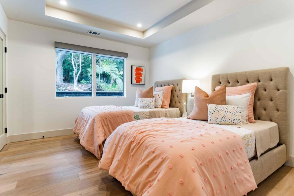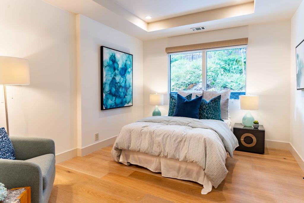 Modern and stylish 5-bedroom, 4.5-bathroom Sharon Heights home extensively renovated in 2015 and set on .40 acres. Hardwood floors, high ceilings, and great natural light throughout. Open-concept floorplan perfect for entertaining and everyday living with highlights including large public spaces, a fireplace, chef's kitchen with suite of Thermador appliances, and comfortable bedrooms including the primary suite with a lavish bath. Backyard oasis with fireplace, salt water lap pool, spa, and greenhouse. Forward-facing views of the SF Bay. Incredible location just minutes to Sharon Heights amenities including shopping center, golf and country club, and park. Short drive to downtown Menlo Park, Sand Hill Road, Stanford, and Interstate 280. Top-ranked schools Las Lomitas Elementary, La Entrada Middle, Menlo-Atherton High (buyer to verify eligibility).