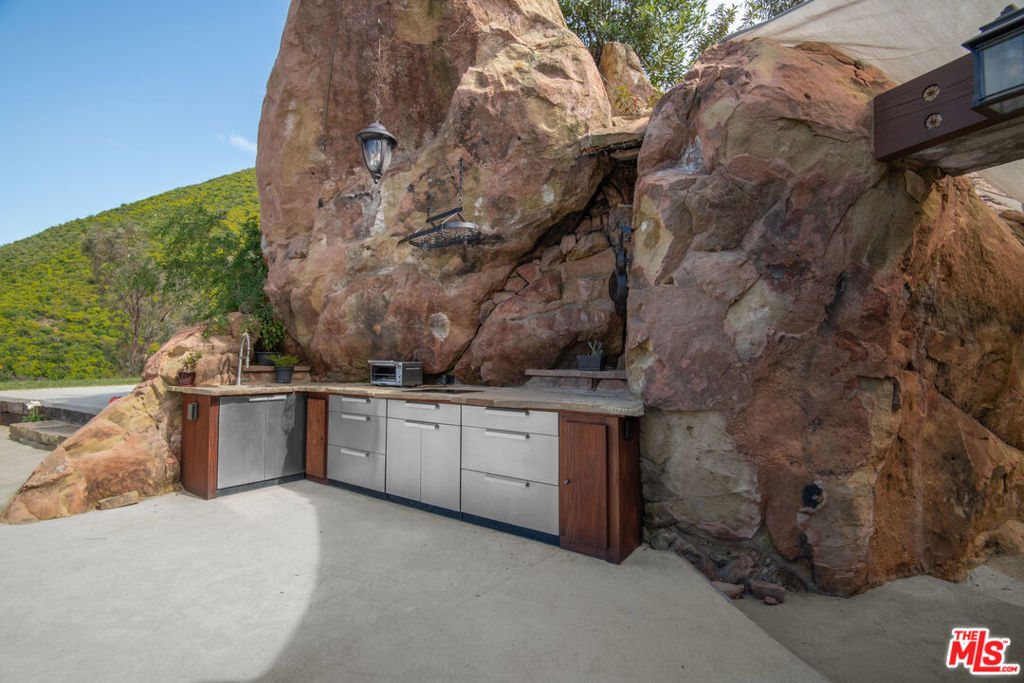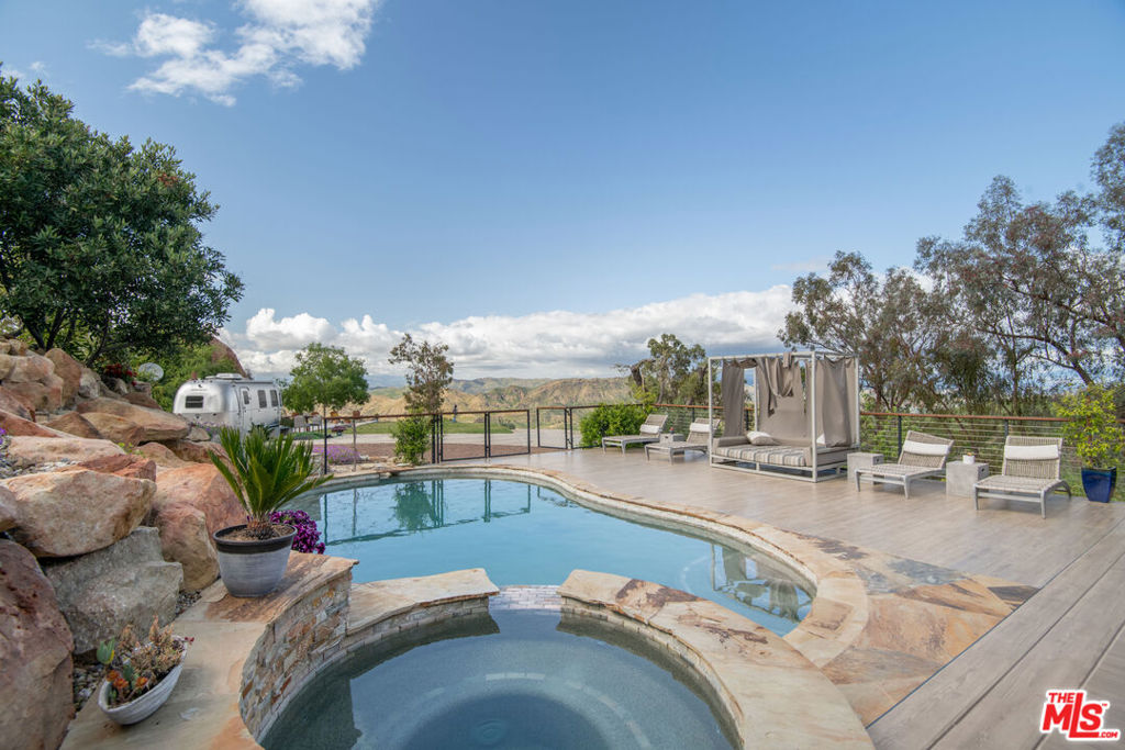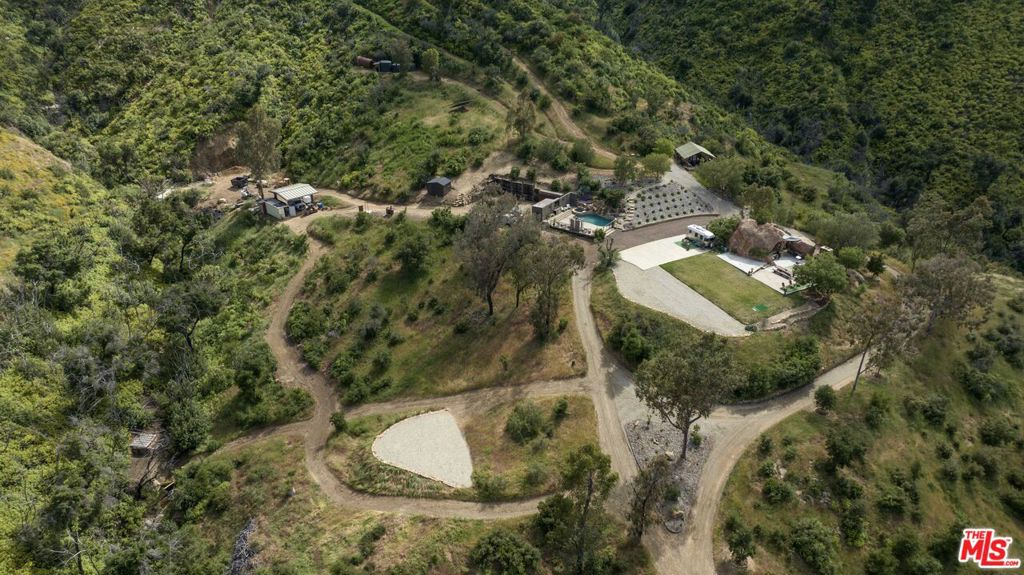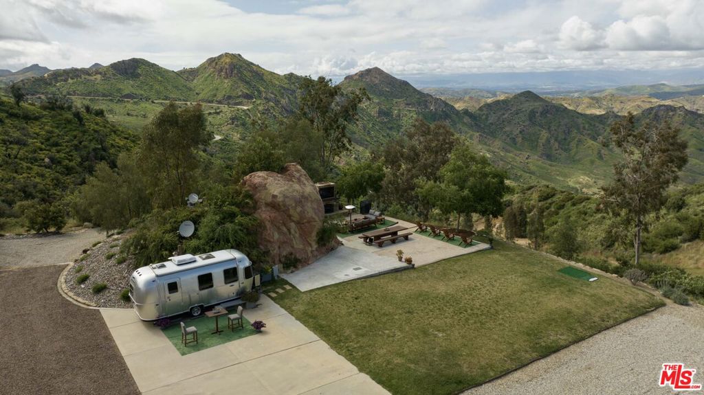 Incredible 40-acre mountain top compound with two helicopter pads, luxury glamping tent, pool, numerous entertaining areas and breathtaking 50-mile views. The property features one-of-a-kind privacy and several flat manicured areas perfect for events. A stunning outdoor kitchen is custom built into a massive sandstone boulder formation and features a custom fireplace with outdoor TV. The glamping tent is built on a true foundation with wrap-around decks and appointed with a full kitchen, washer dryer, double vanity bathroom, king sized bed, HVAC and an outdoor shower. The pool area with its waterfall includes a jacuzzi, beautiful decking and a pool house with bathroom. This fully off grid property also provides immense peace of mind with its large solar system, propane, septic, commercial generator, artesian water well and 27,000 gallons of water storage. Its size and location are ideal for horses as it has great trails on site and nearby as well as two beautiful creeks. It also includes a beautiful Airstream trailer and everything you need to run the property including a tractor, pickup truck, UTV and equipment storage. With all its offerings and so much future potential this one of a kind property is only bound by your imagination. --As in the case of all vacant land, agents and buyers viewing this property do so at their own risk.