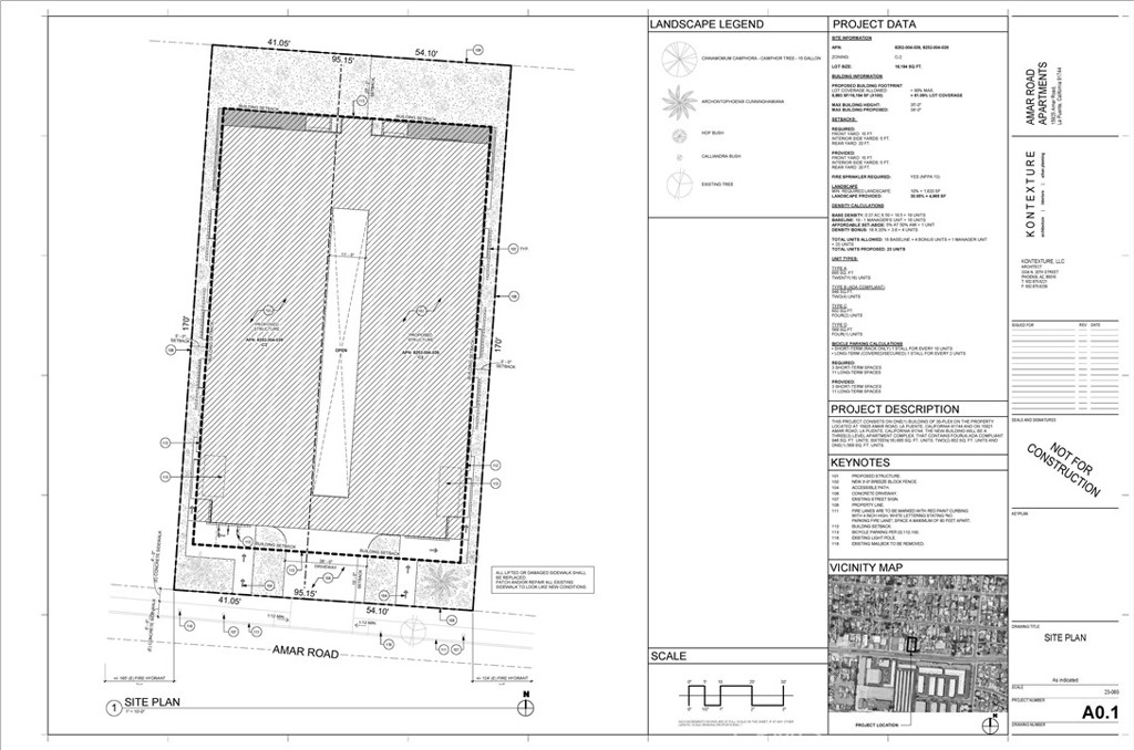 The project consists of 22 apartments in a Metro-designated area. The ground level features parking, while the 2nd and 3rd floors house the apartment units. 15923 Amar Rd is included in the sale price, APN #8252-004-039. This will be a prime development in the heart of Los Angeles County. Building size and project is in the proposal stages only.
