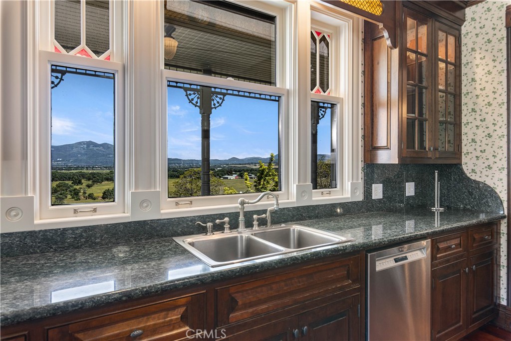 Exquisite custom-built modern Queen Anne Victorian on 49+/-ACRES offering end of the road privacy and panoramic Mt. Konocti, vineyard, & Lake views! To say this property has it all would be an understatement- from the 5853sqft family home, to the detached, sprawling 8680sqft barn style main level rec/game room with a 1950’s inspired diner and full bowling alley lane, to the full lower level commercial grade heated woodshop (w/ 3 phase power), detached 2400sqft AUTOSHOP (w/car lift and RV storage), to the in-ground solar heated pool complete with outdoor kitchen. Everything has been custom designed with the large family & entertaining in mind. This home boasts 4 elegant, Victorian era décor bedrooms, 5 full bathrooms, a formal dining, complete chef’s kitchen, formal study/office, a full wrap around brick patio covered porch & a gorgeous massive paver circular gated drive up. Home even includes a secret door leading into a hidden staircase spanning the height of the entire home, up into the unfinished 2000sqft bonus living space (w/ additional roughed in 4bathrooms/4bedrooms!) up in the third story of this impressive masterpiece. Home also has a subterranean style 4 car garage under home along with a “man cave” & bar! The amount of detail and love put into every style of wood flooring, finish of door trim, crown molding, window design, etc. is something you must see to believe! Located only a minutes’ drive to local airport, 5 mins into downtown Lakeport or Kelseyville for shopping, restaurants and schools. All of this on a beautiful 49 acres of rolling hills overlooking the valley and Lake, surrounded by meticulous landscaping, all with so much attention to detail it is truly something to behold.