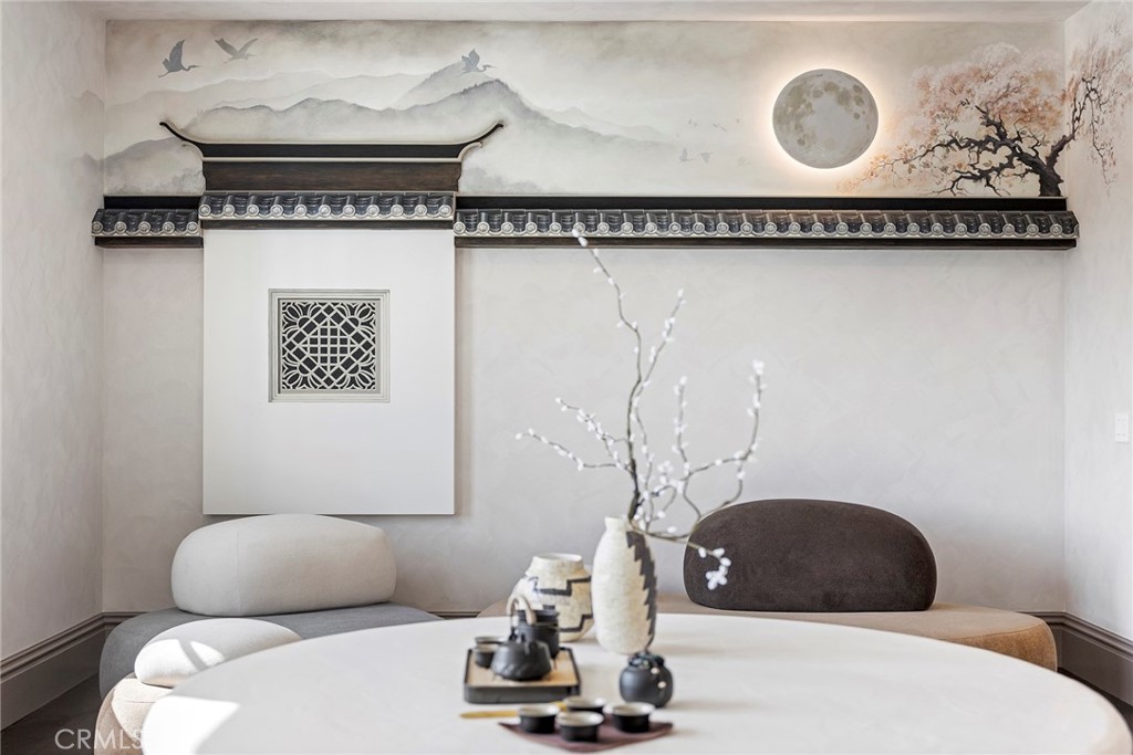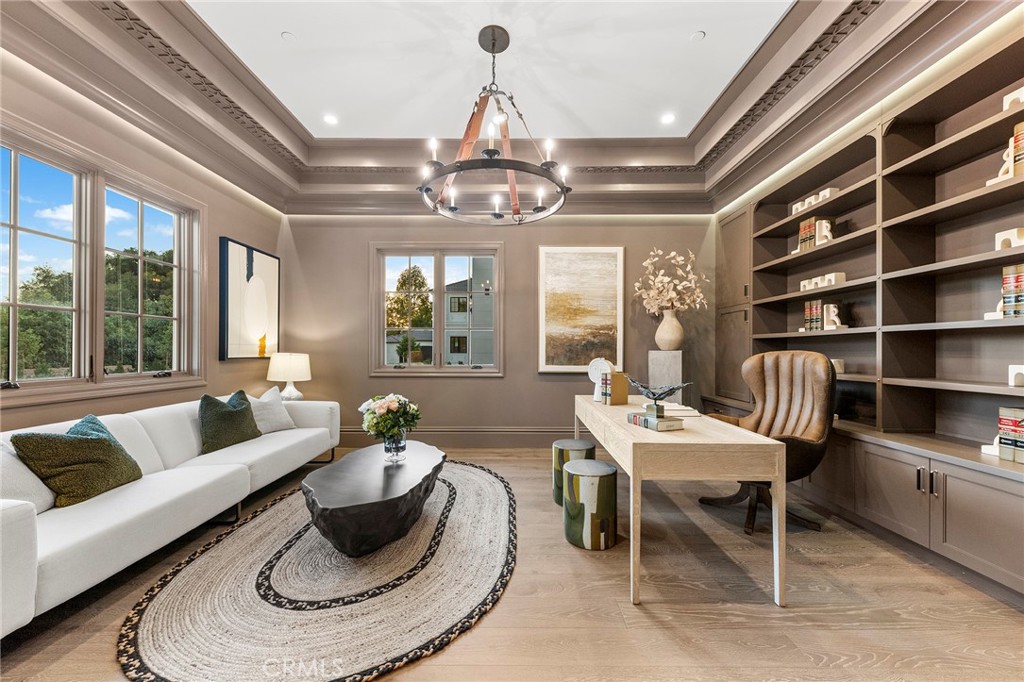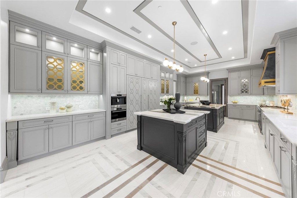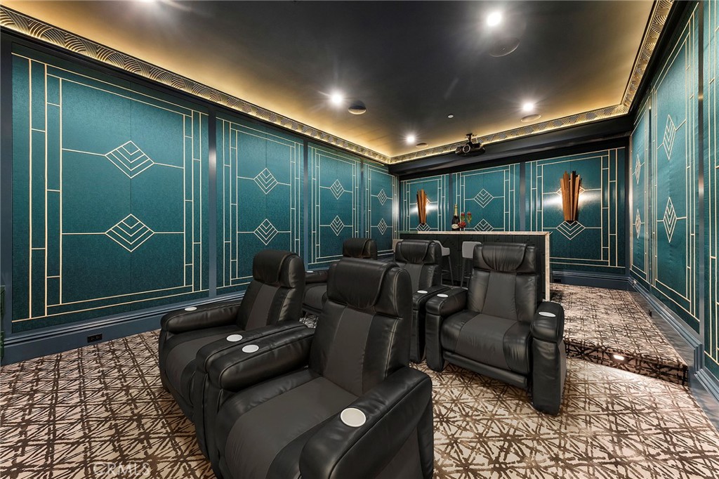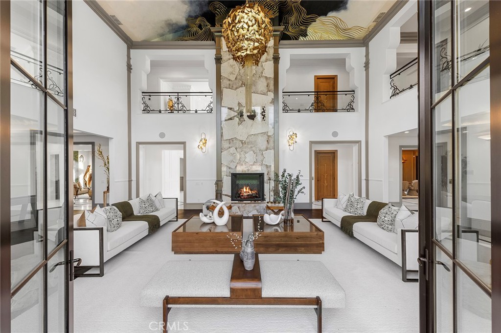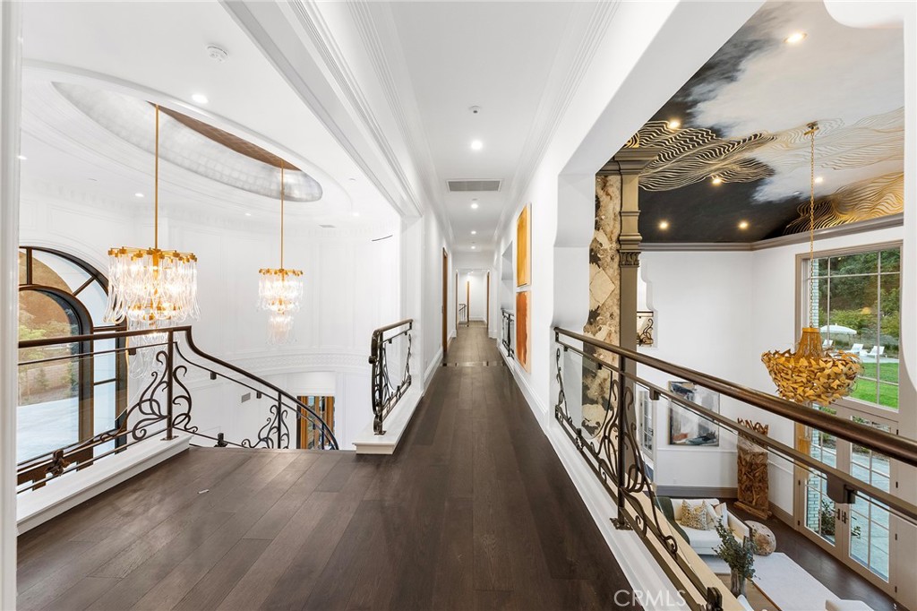 Nestled in the exclusive, 24/7 guard-gated enclave of Bradbury Estates, this estate offers an unparalleled gateway to a life of exceptional luxury and distinction, perfect for those seeking an escape from the ordinary. Set on an expansive 116,164 SF square lot, this mansion offers a expansive, level landscape with sweeping views from every angle. The 14,780 SF main building features a rectangular symmetry that allows for excellent natural light and integrated flow. With common areas in the center and bedrooms on both sides, the layout provides both functional convenience and enhanced privacy for its residents. The house dazzles with a bold Hollywood Regency style, blending sleek, sophisticated designs with striking contrasts. Gleaming gold accents, bold decorative touches, and chic organic modern influences form the heart of the home's show-stopping aesthetic. In the connected space encompassing the foyer, living room, formal dining room, family room, powder room, kitchen, and entertainment room, the cohesive design seamlessly ties these areas together in perfect harmony. The thoughtful selection and installation of stone and wood, combined with a clean, high-contrast color palette, creates a striking sense of design. The extensive use of wood elements infuses warmth, elevating the inviting atmosphere of the entire space. The mansion’s park-like grounds feature a resort-style pool, complemented by a sleek, modern 2,450 SF pool house. The stylishly designed space includes an open kitchen, living room, 2 en-suite bedrooms, a powder room, a poolside bathroom, massage room, sauna, steam room, dipping room, and a cabana with a fireplace. It also is adorned with a professionally lit tennis court. This extraordinary property stands as a timeless gem, poised to become a cherished family heirloom.