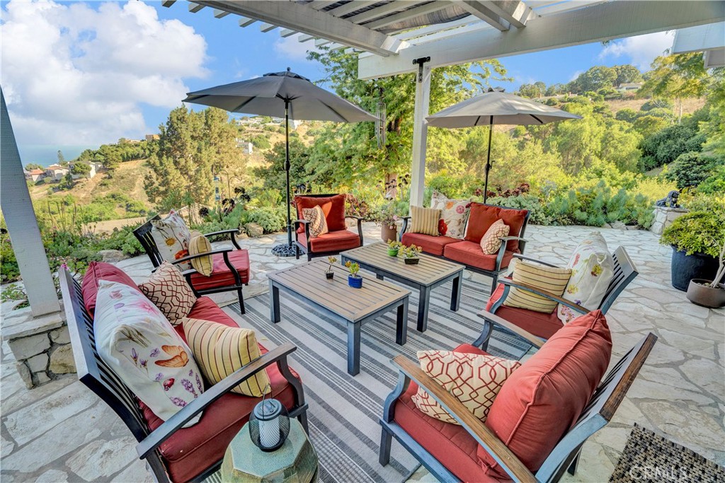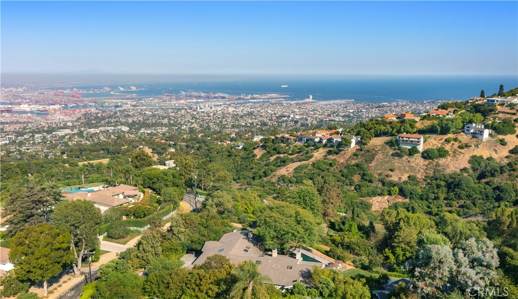 Modern Ranch Home Built in 1999 by the current owners from the ground up. This home has all of the space and amenities anyone could want! With privacy and views of the Harbor Breakwater and Ocean, Long Beach City Lights and Coastline to the south, one will see glorious sunrises. With 1.7 acres of usable land, this home features a private guest house (fully equipped with a cozy fireplace, separate bedroom, bathroom and laundry), bocce ball court, swimming pool with spa, gardens and paths, orchard and grassy yard and the potential to build a barn. With over 6000 sgft of outside patios and porches that overlook the views and grounds, visitors are drawn outside through large glass walls of windows, to enjoy the serenity of mature trees and landscaping. Enter into the home through a covered veranda and you are greeted with warm wood flooring and wood ceilings with a neutral color palette that were inspired by a love of Big Sur. Inside you will find gracious open entertaining spaces with large stone fireplaces. The kitchen is in the heart of the home and accesses both the Living, Dining and Family rooms (with a wet bar and pool table). There is a large library with walls of woodwork shelves and a fireplace to relax in front of and read. The primary bedroom overlooks the views and is ensuite to a large bathroom featuring his and hers closets, dual vanities, soaking tub and skylights. Down a hand crafted spiral staircase, there is a finished basement ready to customize a wine room and media room. Enjoy the existing mirrored dance or exercise room which is ready to go. There is also a large bathroom that leads out to the spa and pool. There is a workshop next to the oversized three car garages. Community schools are excellent and within the Equestrian inspired City of Rolling Hills are 26 miles of trails, two riding rings and tennis and pickleball courts. With 3 separate 24/7 attended gates, Rolling Hills offers less traffic while enjoying incredible views and a rural lifestyle. Easy access to all other Southbay and Los Angeles cities for dining and beaches. The Palos Verdes Peninsula also offers local shopping and dining options and incredible parks and vistas from them all!
