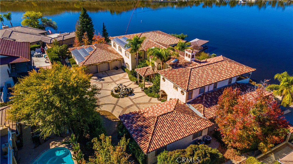 The “ICONIC” Canyon Lake Waterfront is now available……….Located on one of the best streets in Canyon Lake, this property sits on well over 1/2 acre set back down a long private driveway with over 170’ of pristine waterfront in the “No Wake Zone”. Immaculate grounds with huge pool and spa overlooking the main lake, RV parking with full hook ups, split 9 car garage, full solar, propane, dock with hydrolift and fully enclosed boat house with winch system and private launch to keep your boat and water toys clean and ready all year around. Enter the home through the custom solid wood double entry doors into the foyer boasting 22’ ceilings with floor to ceiling picture windows and large fountain setting the tone to tranquility. Main level offers 1 full bedroom with private bathroom, den, living room, kitchen, laundry/ Mud room, 1/2 bath and 2 bedroom 2 bathroom apartment with private entrance. Upstairs the estate is split with the Master wing sitting on one side of the home boasting a large sitting area with fireplace , bathroom with soaking tub, steam shower, walk in closet with built ins throughout, and private covered deck to take in the Panoramic views of the entire lake. Located on the opposite wing you will find 3 additional bedrooms with 2 of them having private bathrooms, large game room and full length covered patio as well mirroring the Master. Down on the pool level is a lockout studio apartment with a kitchenette and bathroom and additional finished storage rooms under the home. This house truly is “Canyon Lakes Finest” and would make for and excellent family compound or company retreat.