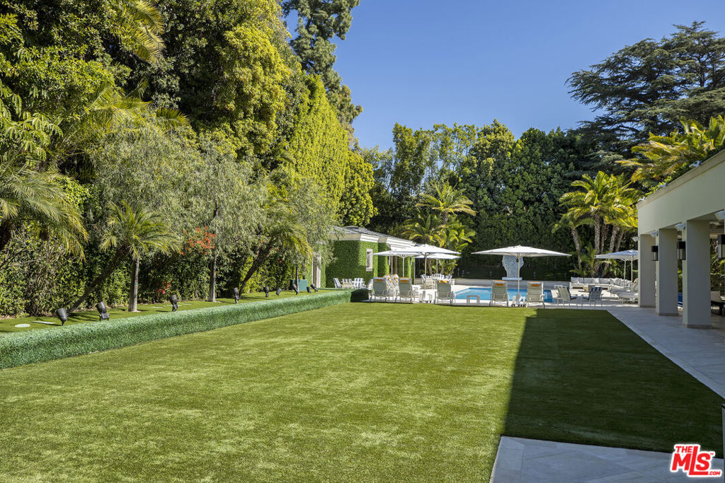 On a private road off lower Benedict, this exquisite 2.7-acre estate in the City of Beverly Hills stands as a testament to uncompromising luxury and refined taste. Architecture by the renowned William Hablinski, landscape artistry by Robert Truskowski and interiors by the celebrated Roger Thomas. The property's grandeur begins through an elegant gate with a park-like drive leading to the main residence. Upon entry, guests are welcomed into a sophisticated reception area with stylish arrival lounge and bar. The estate unfolds to reveal a grand living room with city light views, an expansive indoor/outdoor main dining area, the owner's office, a full Bel-Air Circuit capable digital Cinema, a spa suite, and large gymnasium. An elevator ensures effortless navigation throughout the residence. The owner's suite has dual amenities. Four en-suite guest bedrooms and a guest lanai suite with a full kitchen and living room provide ample space for visitors. The estate also includes three staff bedrooms with a dedicated kitchen and two security team bedrooms with a kitchenette. Outdoor amenities are equally impressive, featuring a professional tennis court with an air-conditioned seating house and kitchenette, an air-conditioned pool lanai house with kitchen, and meticulously landscaped grounds. This Beverly Hills masterpiece offers a perfect blend of privacy, luxury, and sophisticated living, making it a true jewel in one of the world's most prestigious neighborhoods. Every detail has been carefully considered, from the architectural design to the interior finishes, creating an unparalleled residential experience.