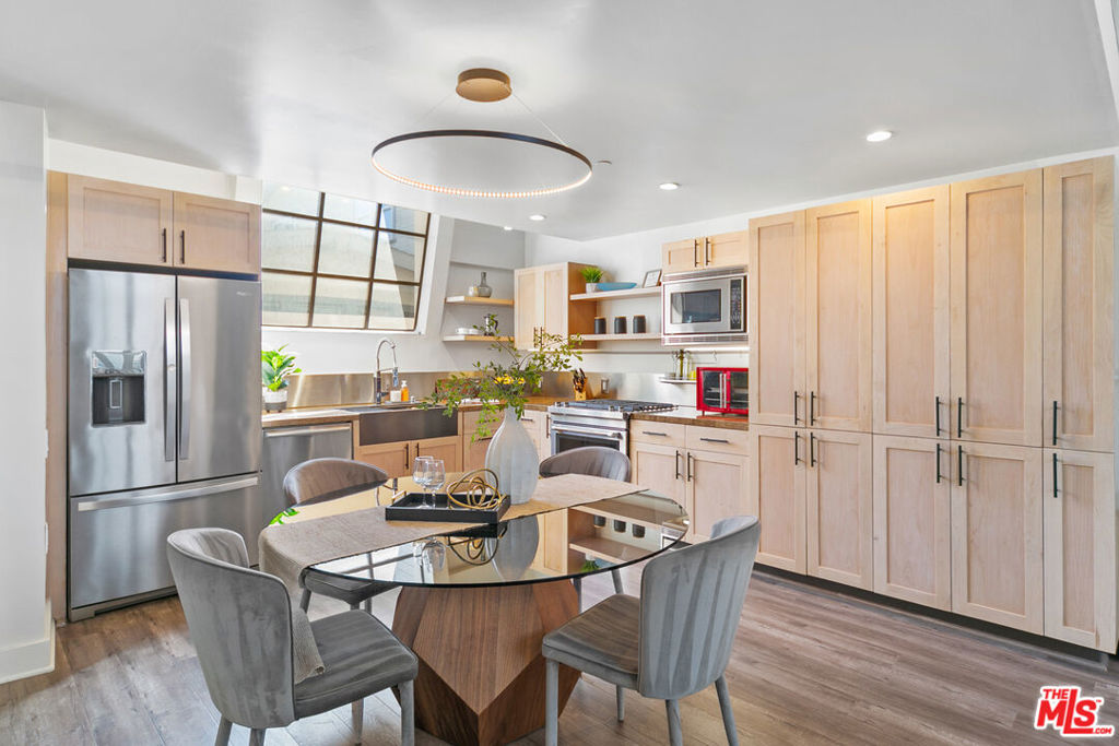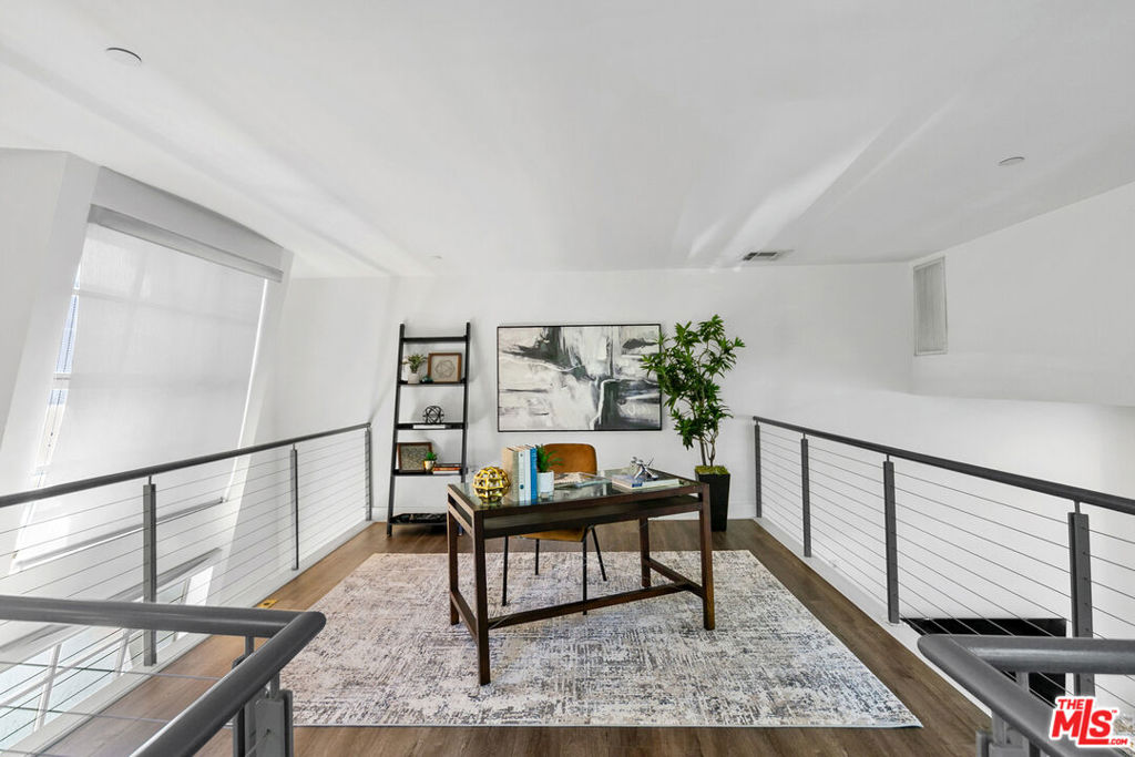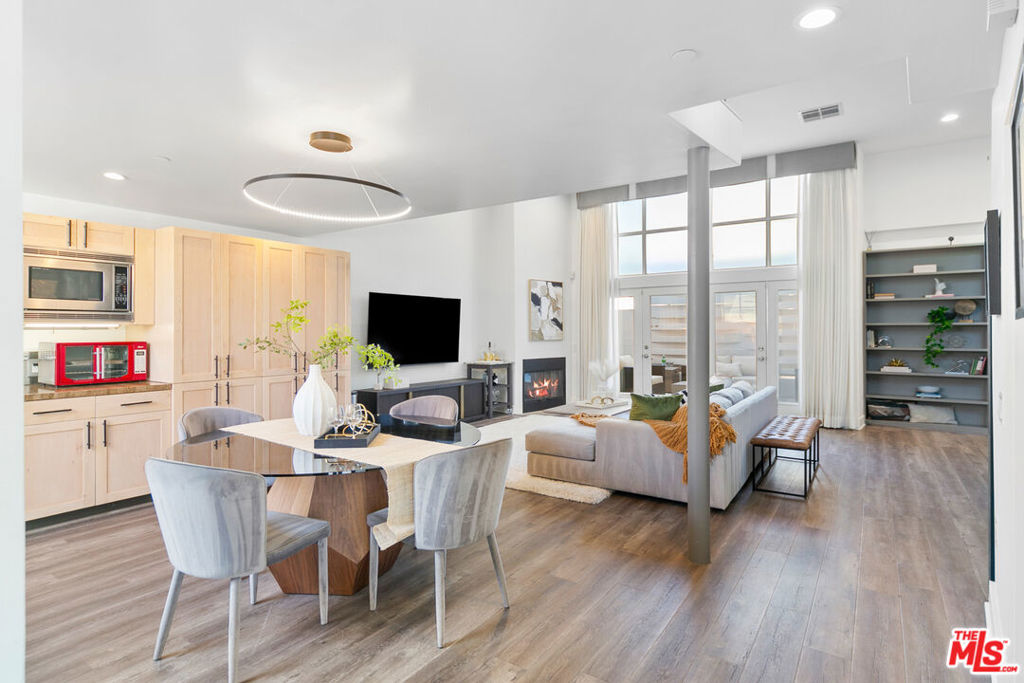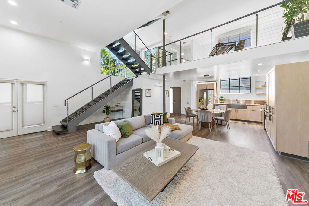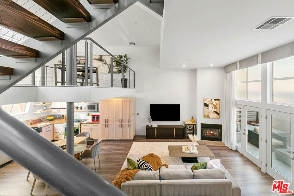 Offering an open and spacious, naturally light filled architectural townhouse for absolute live-in comfort. Open floor plan with high ceilings and floor-to-ceiling windows. Gourmet kitchen with stainless steel appliances and distinctive wood cabinetry. Open floating mezzanine that can be utilized as an office area. Indoor laundry with stackable washer/dryer. French doors with remote controlled curtains that open up to a private patio. Underground two single-parking spaces in gated community garage with an EV charging unit. Walk to WholeFoods, Trader Joes, restaurants, and shops. Feel the calm and comfort of home with beautiful and extraordinary architecture in the bustling life of Santa Monica!
