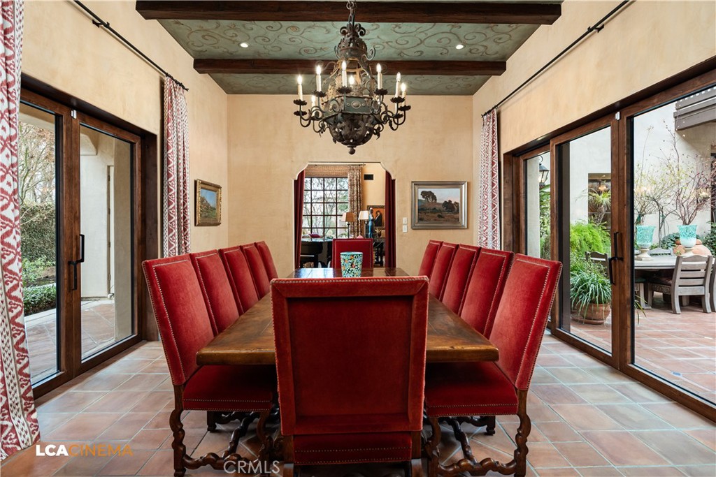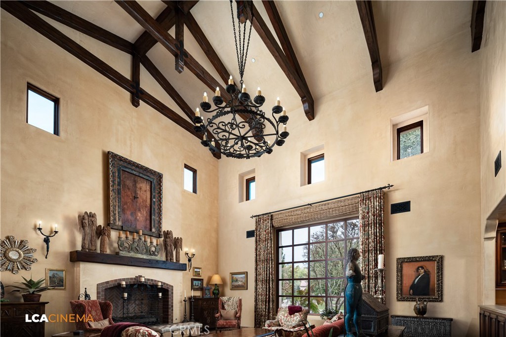 This stunning Spanish Colonial home located on the Seven Oaks Golf Course is within the finest enclave of homes in Bakersfield. A Santa Barbara design inspired by the original and only owner is a true one-of-a-kind masterpiece. This property features custom craftsmanship and meticulously chosen materials throughout. Upon entering, you're greeted by a grand staircase and a foyer leading into the courtyard featuring a Spanish fountain. Moving into the heart of the home, the kitchen offers both beauty and functionality boasting an oversized island, Viking appliances, double ovens, and a spacious butler’s pantry. The luxurious primary bedroom displays an elegant fireplace and incredible his and her bathrooms and closets. Spacious bedrooms with two bedrooms bringing you the comfort of ensuites giving this home room for extended family. Hand-selected materials including handcrafted beams, Mexican Talavera tiles, cotto pavers, custom woodwork, hand painted murals, and unmatched detailing of the Spanish centric interior design gives this home its unique character. Designed for the ultimate entertaining experience, this home offers a grand living room with a stately fireplace, an upstairs library overlooking an entertainment bar with its own private entrance, and a majestic wine cellar in the home’s basement. Outside the home is equally impressive as the property boasts golf course views, a pool, spa, multiple balconies, and a private entrance to the primary bedroom. A gated driveway and beautifully landscaped grounds complete this luxurious estate. Bathroom count is as follows: 2 full, 3 3/4, 4 1/2. Square foot of home is 9128