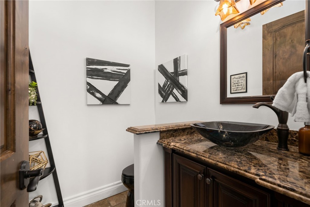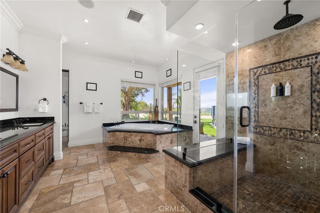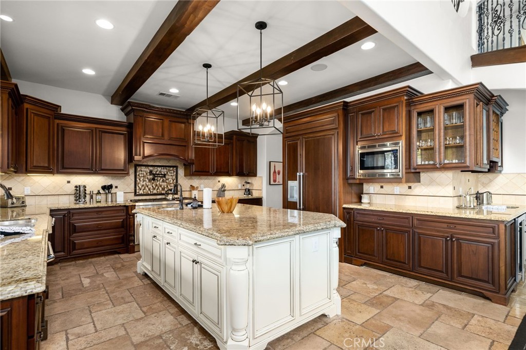 Nestled on a quiet cul-de-sac in the heart of Temecula Wine Country, this extraordinary estate offers nearly 8,500 square feet of luxurious living space on over 2 acres, with breathtaking views and world-class amenities. Just a quarter-mile from the first winery and a short drive to Old Town Temecula, this home provides the perfect blend of privacy and convenience. The well-designed floor plan features eight bedrooms and nine bathrooms, including four bedrooms on the first floor, two of which have en-suite bathrooms, plus a separate laundry room. The second floor boasts three additional en-suite bedrooms, along with an attached ADU offering private backyard access, its own one-car garage, a dedicated staircase, a full kitchen, a living area, a bedroom, a bathroom, and a separate laundry room with washer/dryer hookups. Also on the second floor is a spacious balcony with a built-in bar, offering stunning views of the wineries and backyard. A spiral staircase connects the balcony to the backyard for seamless indoor-outdoor living. The third floor features a versatile bonus room or additional bedroom with a half bathroom, perfect for a private retreat or entertainment space. Exquisite craftsmanship is showcased throughout, featuring a grand wrought-iron staircase, crown molding, and elegant flooring. The gourmet kitchen is a chef’s dream, equipped with high-end Thermador appliances, a built-in refrigerator, dual dishwashers, and custom cabinetry. Designed for entertaining, the resort-style backyard is a paradise featuring a stunning pool with a waterfall, grotto, slide, and water features, plus a fully equipped outdoor kitchen with granite countertops, a pizza oven, BBQ, and more. The expansive six-car garage includes RV parking, a workshop area, an enclosed office or storage space, and a half bathroom. This exceptional estate is a must-see!