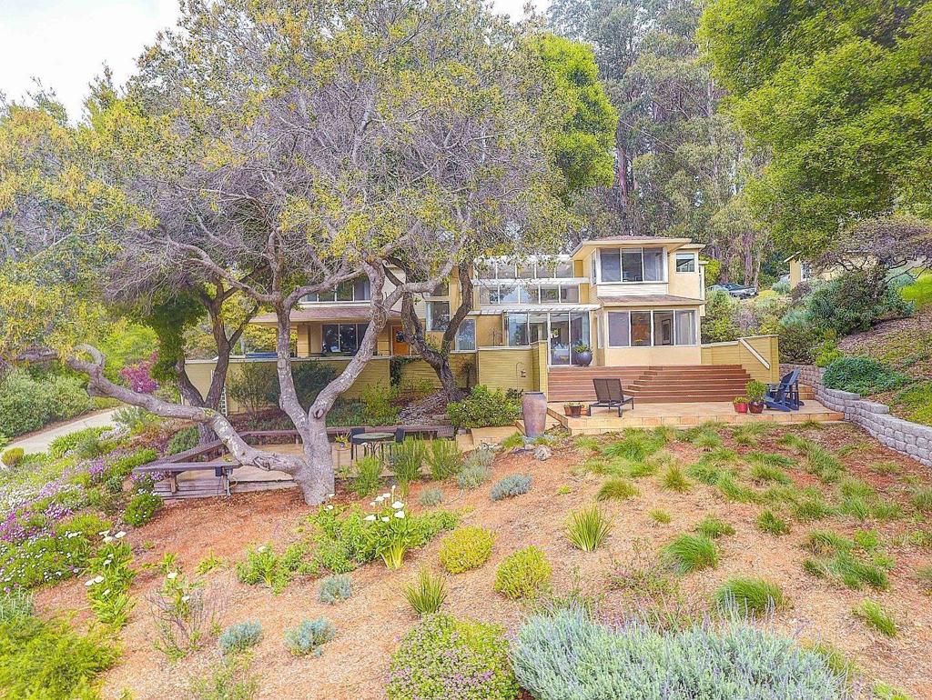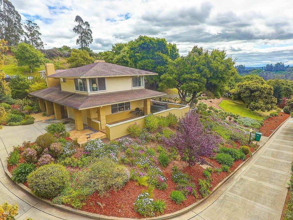 This architectural masterpiece was inspired by Frank Lloyd Wright and designed by local favorite and award-winning, Fred Lattanzio. The house features a modern layout with massive windows and skylights. There are beautiful views of trees and the grounds from every room. Spacious home with 3 bedrooms, 2.5 bathrooms, and 2,402 sq. ft. of living space. This stunning home is situated on 2.5 acres, in a beautiful, gated neighborhood. The home blends indoor luxury with nature, offering elegance in a country lifestyle. The back doors open to a tranquil, park-like setting with wooden decks and tiled patios. With its open floor plan, and ample outdoor living areas, it's perfect for entertaining guests in style. The huge yard features beautifully landscaped gardens with native drought-tolerant plants, creating a sustainable and low-maintenance outdoor space. There is plenty of room to add raised beds. Youll love the end-of-the-road privacy and benefit of neighbors not too far away. This property is perfect if you love modern architecture and the outdoors. And it's conveniently located between Watsonville and San Juan Bautista. It's a short drive to the beach; Monterey, Santa Cruz, and Hollister are about 35 minutes away.