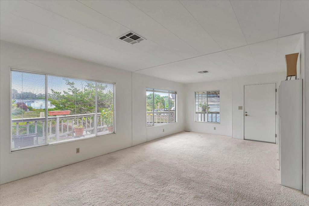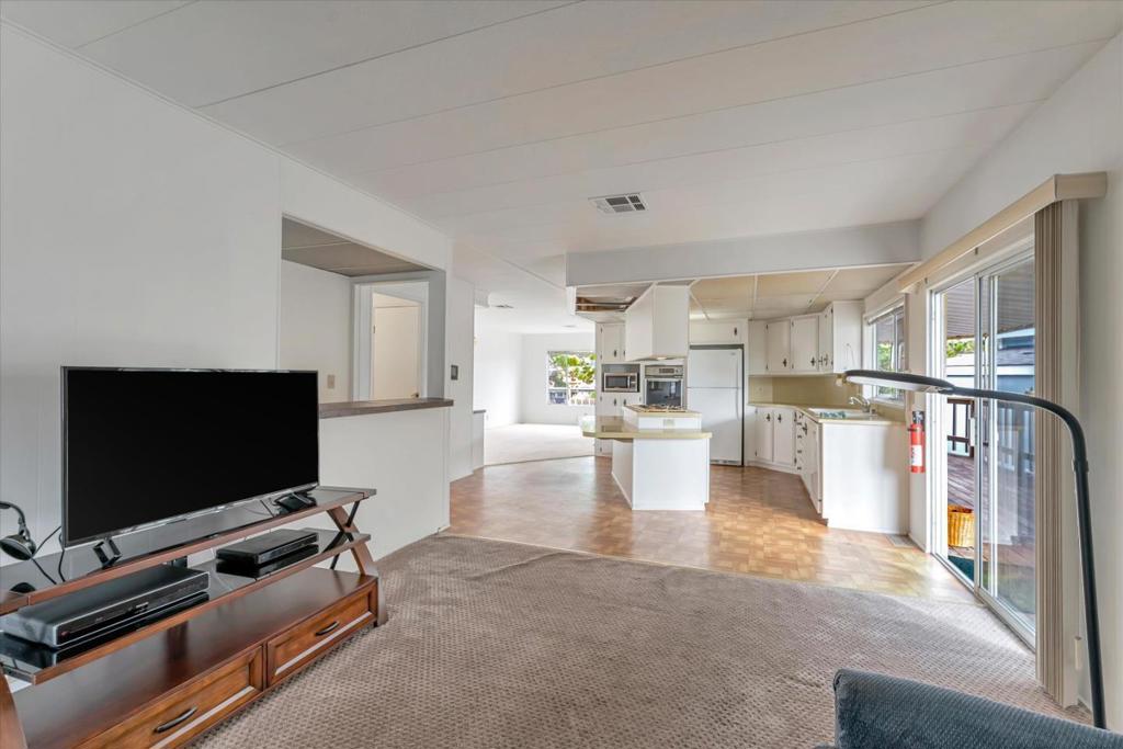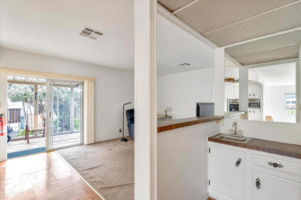 New LOW price! Make this home shine, with all of your touches!!This is a "lease land" park, monthly space rent $4763, and NO property taxes, for a home steps away from the ocean, situated on the lagoon,w/views of the water,f ountain, walking bridge, trails,& more! Enjoy the natural beauty,& wildlife right from your deck/living room. Great natural light flood this home throughout. The over size deck is great for outdoor living as well. The large living room has neutral carpet & bookshelves.The nearby dining area, has built-ins to display your nice pieces/serve your guests. The kitchen has an Island w/ a cooktop & is open to your family room. There is even a "bar area" to serve up some cocktails for your company!The 2 bedrooms are good size,ea have a bathroom connected.The laundry room is located near your kitchen for added convenience & has an exterior door for easy access.Deanza Mobile home park is situated on the Pacific ocean.Meandering streets,w/ lush landscaping lead you to the ocean,fun walking trails,a beach, and so much more. The Clubhouse offers a large area for events,& equipped w/ a chef's kitchen.The gorgeous year round heated swimming pool is warm everyday of the year,jacuzi,sauna,outdoor kitchen,gas fire pit,a workout facility,all included to use at no extra cost.