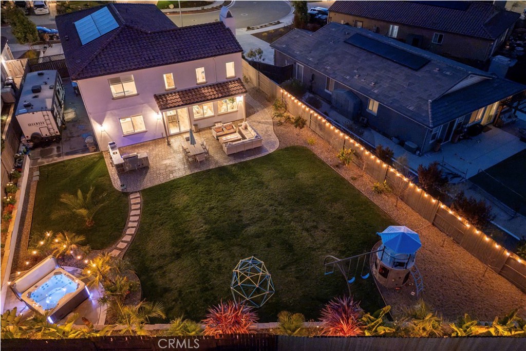 Stunning 5-Bedroom Home with Outdoor Kitchen, Expansive Backyard & Premium Upgrades! Welcome to this exceptional 5-bedroom, 4-bathroom two-story home that offers RV parking, a huge backyard, and unparalleled indoor-outdoor living. The backyard is an entertainer's dream featuring an outdoor kitchen with a Mont Alpie pizza oven, grill, and fridge, complemented by gorgeous lighting, a high-end hot tub, and a natural gas fire pit perfect for cozy evenings under the stars. Get your fruit fix! Just planted a variety of delicious fruit trees including mandarin, lemon, avocado, fugi apple, peach, plum, Granny Smith, apricot, and banana. Inside, the massive kitchen is a chef's delight, complete with LG stainless steel appliances, a stunning island with ample seating, a large pantry for all your storage needs, and a dedicated wine bar area featuring a bodega fridgeideal for showcasing your favorite Central Coast wines alongside your coffee station. This home is equipped with air conditioning, a secure security system, and features owned solar by SunPower to keep energy costs low. The versatile floor plan includes two bedrooms downstairs and a den that could serve as an additional bedroom or suite, while all other bedrooms are located upstairs. The luxurious primary suite boasts a large, spacious closet, a soaking tub, a large shower, dual sinks, and spectacular mountain views that greet you each morning. Additionally, select bedrooms offer ocean views on clear days, providing a serene backdrop throughout the home. As part of the Summit Club HOA, enjoy resort-style amenities such as a pool, Jacuzzi, gym, clubhouse, pickle-ball courts, basketball courts, and more. Don't miss the opportunity to experience this truly remarkable homeschedule your showing today!