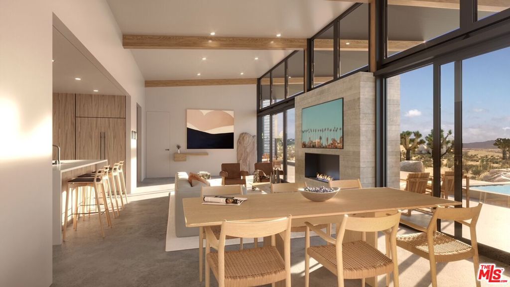 Pre-sale opportunity with an expected completion date of Winter 2026. Experience the perfect blend of modern luxury and desert serenity just minutes from the breathtaking landscapes of Joshua Tree National Park. This stunning new home with a detached ADU sits on 2.3 expansive acres, offering uninterrupted panoramic views of the peaceful surroundings, including head-on views of Goat Mountain. The property features a main residence with two bedrooms and two bathrooms, designed for seamless indoor-outdoor living. Soaring 16-foot ceilings and floor-to-ceiling glass walls create an airy, open atmosphere that brings the beauty of the desert inside. The sleek chef's kitchen boasts premium oak cabinetry and Caesarstone countertops, offering both style and functionality. A 700 sq. ft. detached ADU provides additional living space, perfect for guests, a home office, or an income-generating rental. A breezeway carport elegantly connects the two structures, offering shaded parking and architectural cohesion. Step outside and unwind in your private oasis, complete with a sparkling pool, a soothing spa, and a cozy fire pit perfect for stargazing and peaceful desert nights. Located close to La Copine, Pappy & Harriet's, and top off-road adventure spots, including Sand to Snow National Monument and King of the Hammers, this home offers a prime location for both relaxation and recreation. Don't miss this exclusive pre-sale opportunity to own a one-of-a-kind desert retreat this property also qualifies for Opportunity Zone benefits.