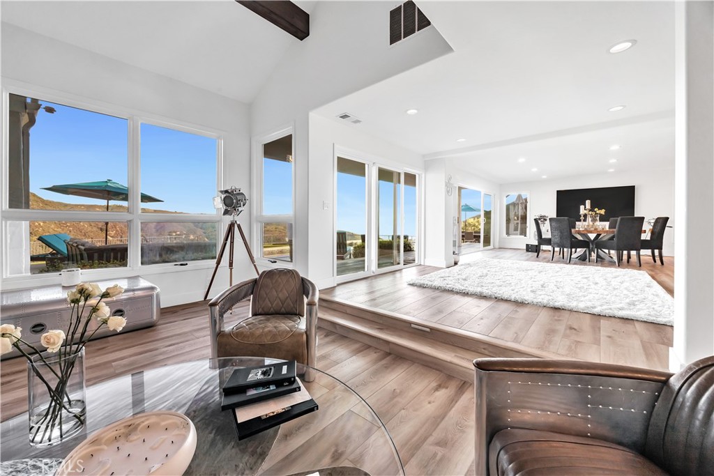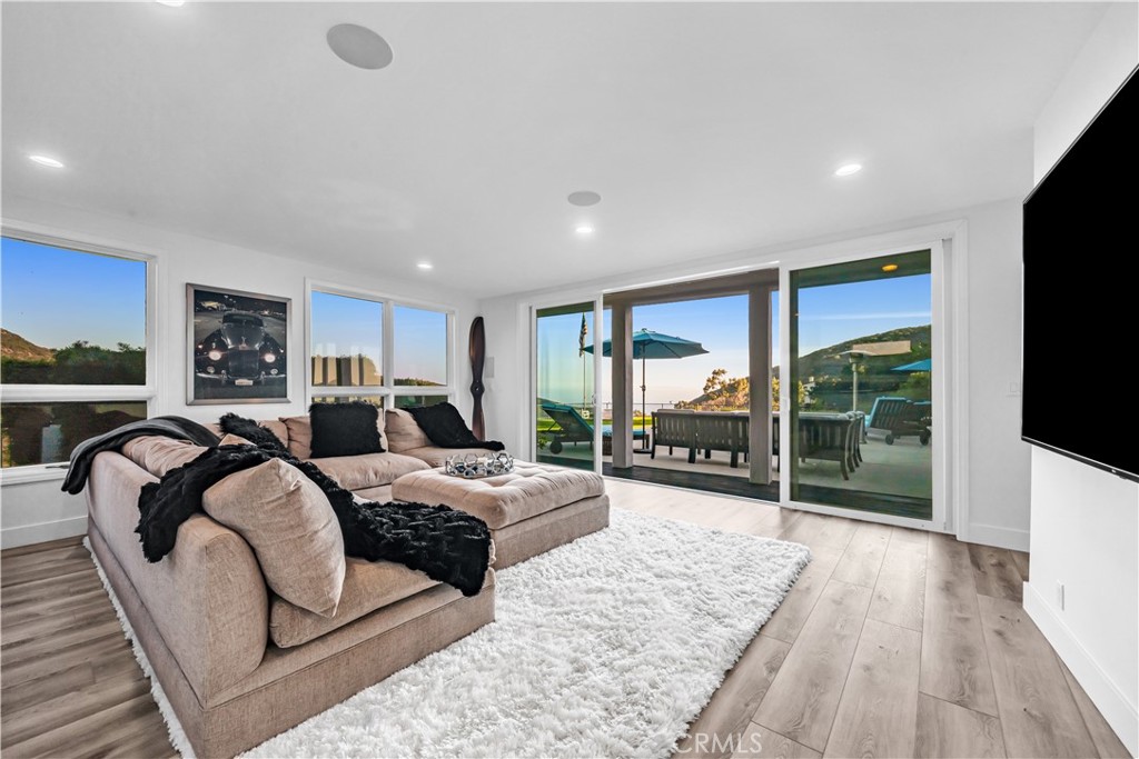 Welcome to 2356 Live Oak Meadows Road, a stunning Contemporary Mediterranean retreat nestled in the serene hills of Malibu. This expansive 4,100-square-foot residence boasts five bedrooms and five bathrooms, offering a harmonious blend of luxury, comfort, and breathtaking ocean vistas. Upon entering, you're greeted by a light-filled two-story living room that seamlessly flows into an open-concept kitchen and an expansive family room. Each of these spaces is thoughtfully designed to maximize ocean views and promote indoor-outdoor living, with multiple doors opening to the exterior. The home features five spacious bedrooms, including a convenient downstairs bedroom ideal for guests or as a private office. The open kitchen is equipped with modern appliances, providing a perfect setting for culinary endeavors while enjoying the scenic surroundings. The backyard is a private oasis, featuring a sparkling pool and hot tub that overlook the ocean. An outdoor patio with a built-in BBQ area is perfect for alfresco dining and entertaining. As the day winds down, gather around the built-in fire pit on the back lawn to soak in the final moments of the sun's rays and the tranquil ocean views. The property is accessed through a walled and gated entrance that opens to an expansive motor court, accommodating up to 12 cars. Situated at the east end of Malibu, this home offers an ideal escape from city life while remaining conveniently close to the center of Malibu, Santa Monica, and Calabasas. It's just a five-minute drive from Pacific Coast Highway, providing easy access to local amenities and attractions.
