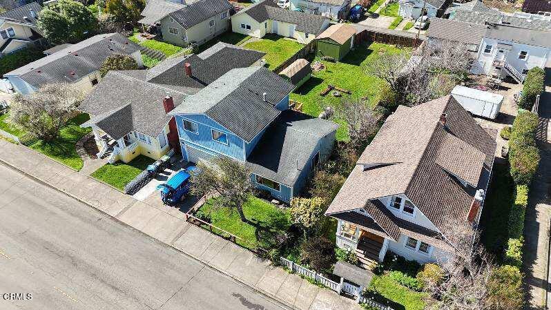 This home has much to offer. Three bedrooms, 2 and 1/2 bath with ocean view from the upstairs. Features include dual glazed windows. Ample sized backyard including a Tuff Shed with garage door off the alley making it good for one small car. Main house has an attached two-car garage. Newer tasteful updates in bathrooms and kitchen. Propane forced air heat with pellet stove backup keeps everything warm and cozy. A wooden deck overlooks the backyard with newly planted fruit trees making for a jump start for your dream garden.