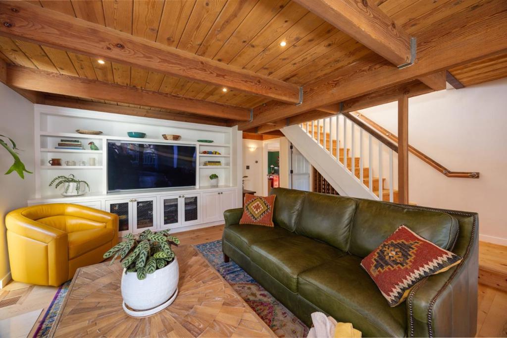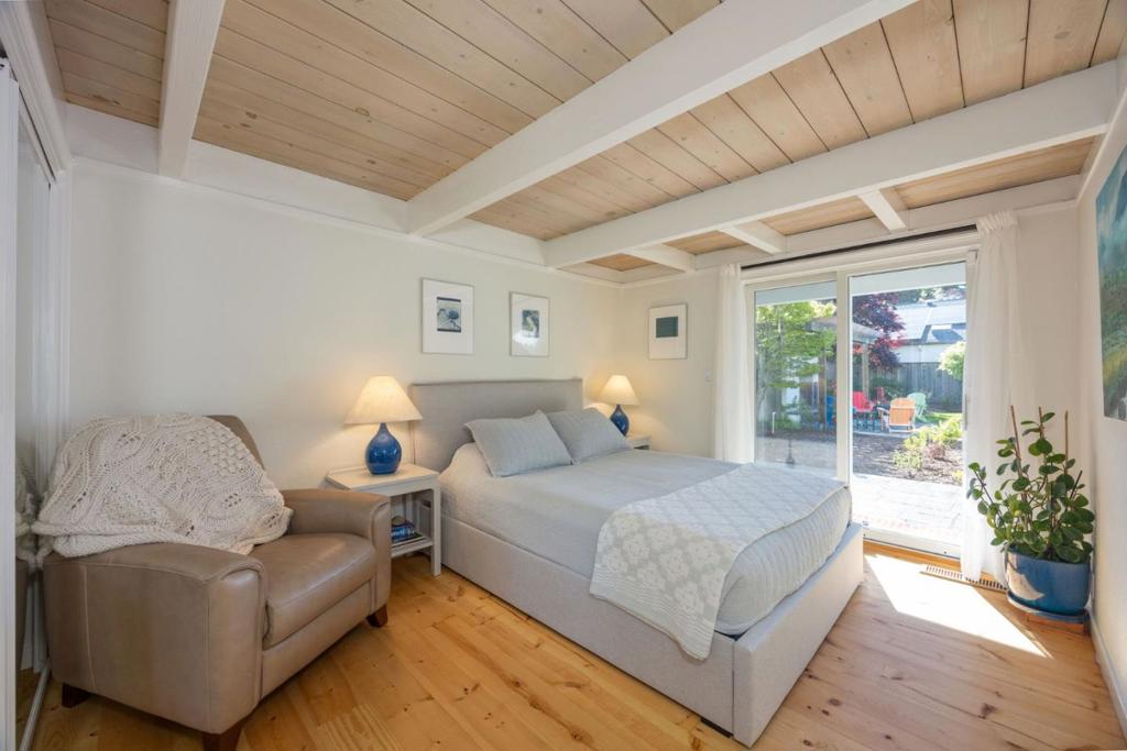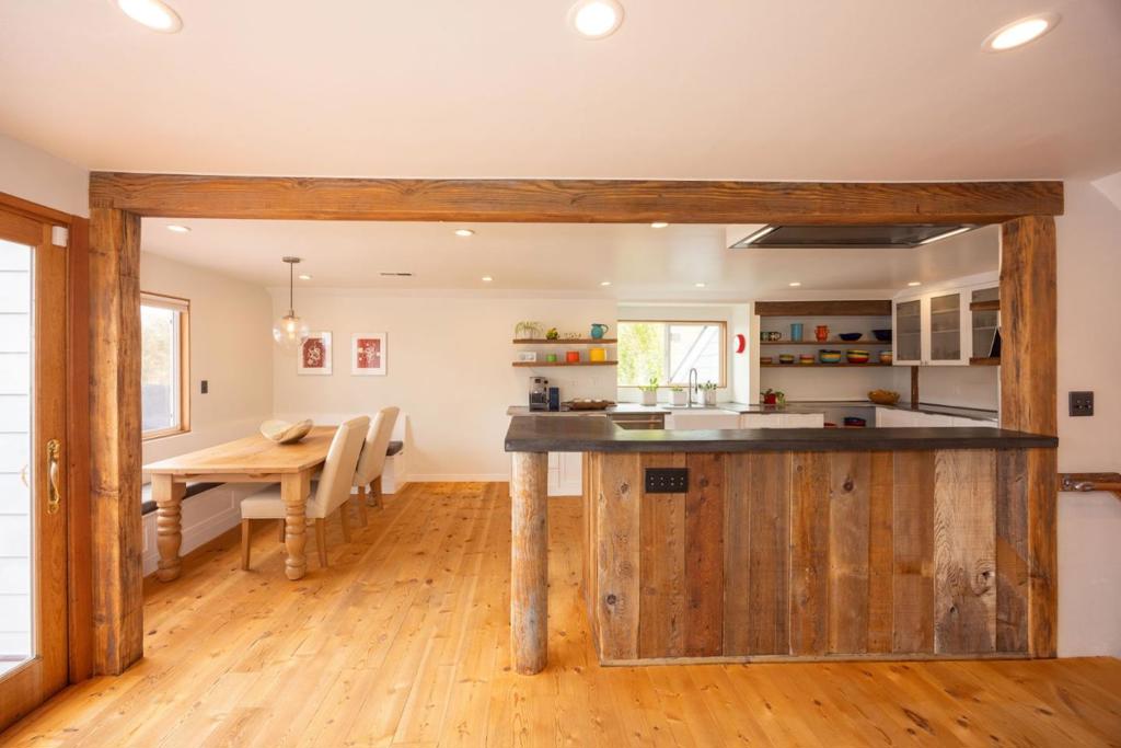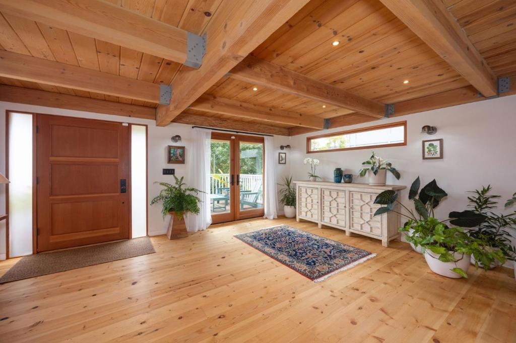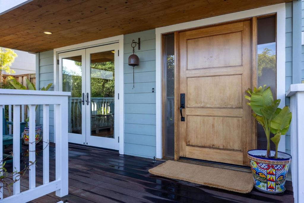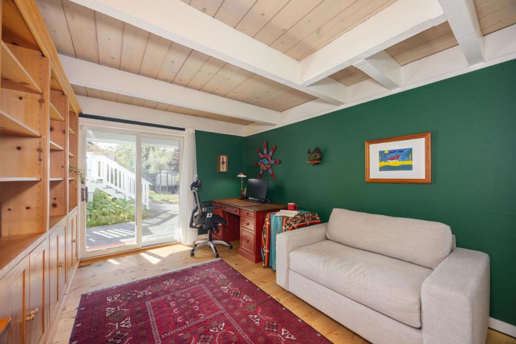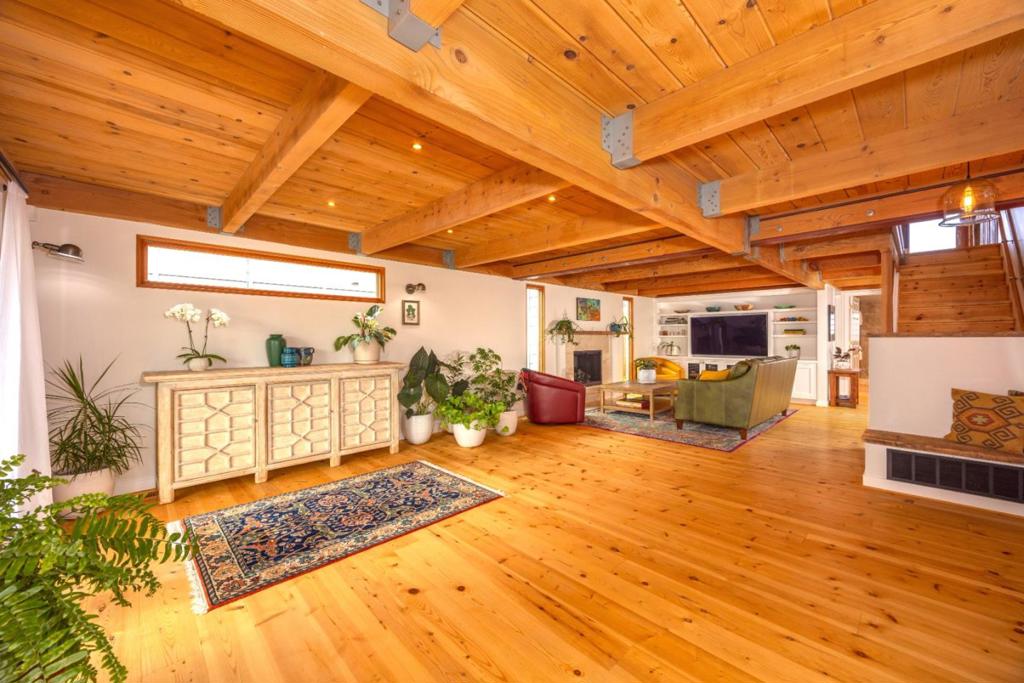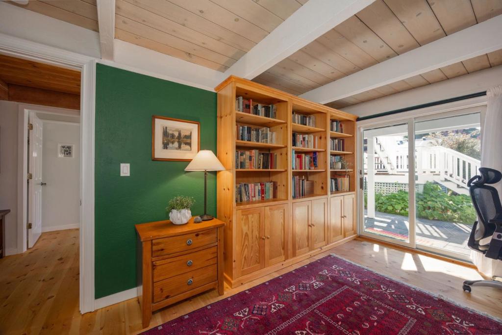Welcome to coastal living in the sought-after Alsace Lorraine neighborhood. This industrial/boutique-style home greets with lush landscaping, bluestone pavers, and a private front porch. Inside, the spacious great room features exposed pine beam ceilings, built-in bookcases, and welcoming fireplace, perfect for cozy gatherings. Two full-size bedrooms and a full bath complete the first floor. Upstairs, a soaring pine-clad living room with second fireplace flows into the modern chef's kitchen, where high-end appliances, stainless-steel countertops, and custom cabinetry set the stage for effortless entertaining. Choose from banquet seating, bar stools at the peninsula, or dine al fresco on the spacious deck. The primary suite impresses with antique barn doors, a chandelier-lit bath, and extensive custom closets. The 3rd floor loft offers a sunlit gallery and a newly permitted 4th bedroom with an ocean view. Step onto the deck overlooking a private backyard retreat with an outdoor fireplace, greenhouse, and fruit trees, including lemon, pear, apple, and mandarin. An artist studio/workshop sits off the attached two-car garage. Owned solar. Just a short walk to the beach and Main Street, with easy access to Hwy 1 & 92. A rare find in one of Half Moon Bay's most desirable communities!