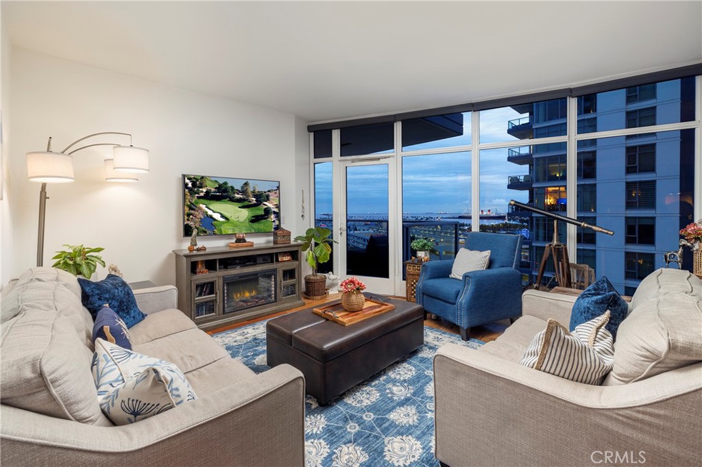Experience sophisticated urban living in this stunning 2-bedroom, 2-bathroom contemporary residence including a separate den/office, located on the 9th floor of the prestigious West Ocean Towers in vibrant Downtown Long Beach. With 1,440 square feet of beautifully appointed living space, this home offers breathtaking panoramic views of the Pacific Ocean, city skyline, harbor lights, and the iconic Queen Mary—all visible through expansive floor-to-ceiling windows and from your own private spacious balcony. Step inside the rare entry space that leads to an open-concept layout with rich wood flooring, a fully upgraded kitchen featuring granite countertops, custom cabinetry, and stainless steel appliances, perfect for entertaining or quiet evenings at home. The primary suite offers a tranquil retreat with a walk-in closet and a spa-like remodeled bathroom. As a resident of West Ocean, enjoy access to world-class amenities including a club room, resort-style pool and spa, BBQ area, sauna, library with pool table, board room, state-of-the-art fitness center, secret bike room for residents and even your own temperature-controlled private wine locker. This particular unit also includes a storage unit (4ft wide x 6ft deep x 8.5ft high) that is not available for every residence . The building also features 24 hour concierge service with video surveillance, providing both luxury and peace of mind. Located in the heart of Downtown Long Beach, you’re just steps from the waterfront, top dining, entertainment, and shopping. Don’t miss this rare opportunity to own a slice of coastal luxury with unmatched views and upscale amenities