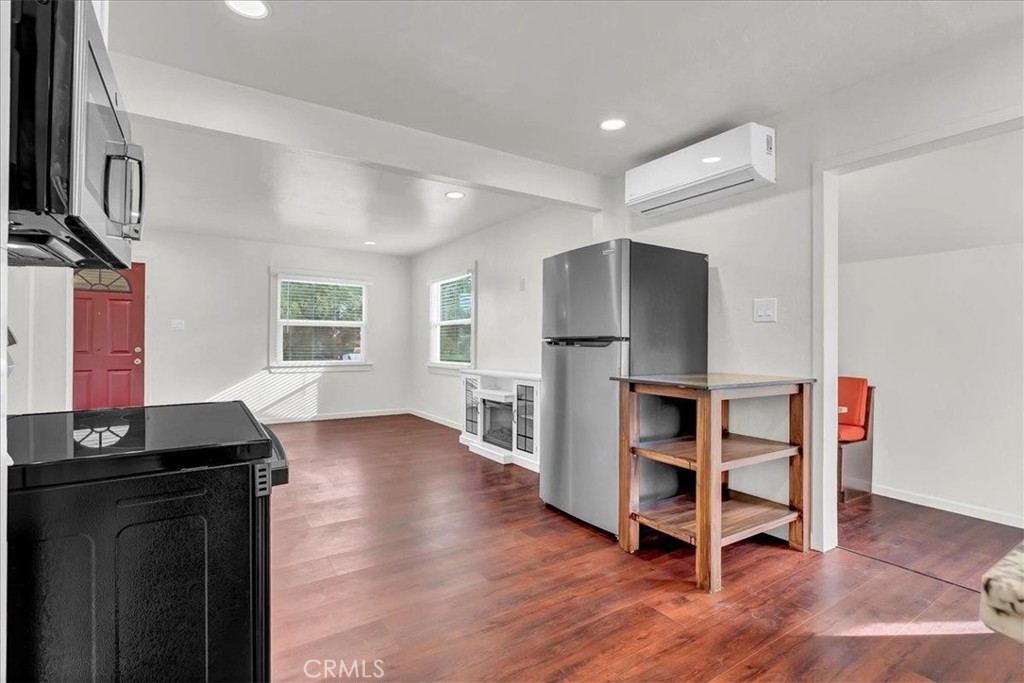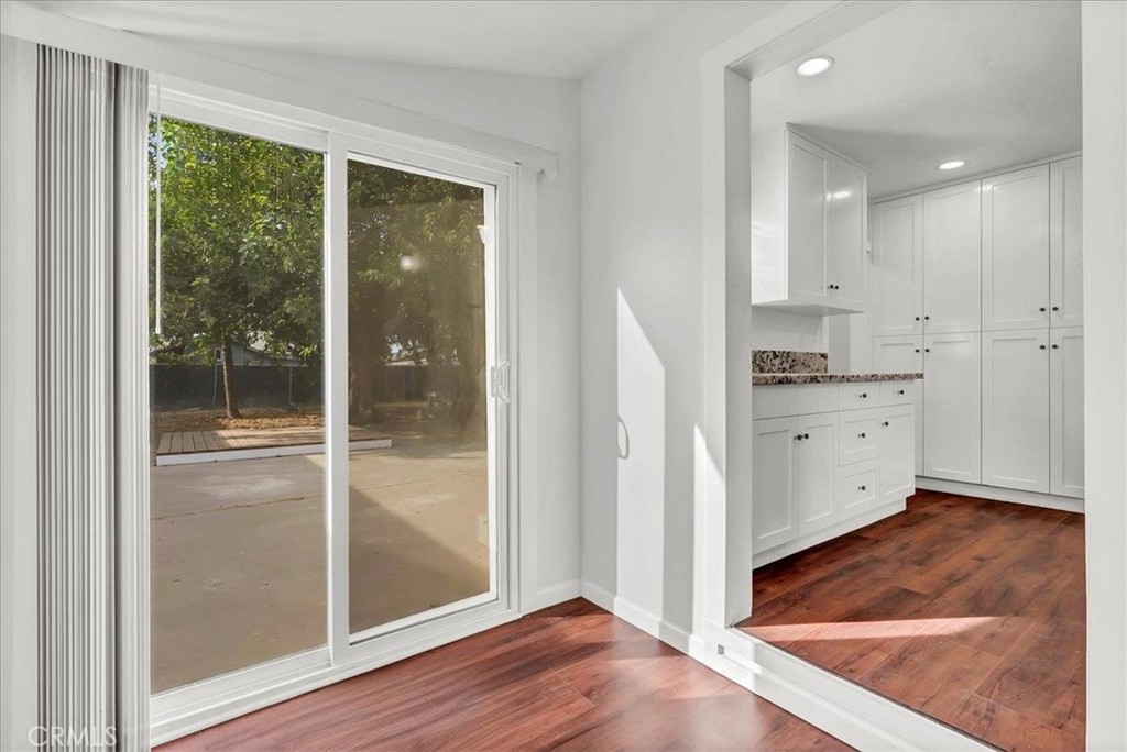 Discover this meticulously renovated bungalow, situated just a block from the vibrant heart of downtown Corcoran. As you head inside, you're greeted by stunning luxury vinyl plank wood flooring that extends throughout the home. The living room seamlessly opens to a beautifully appointed kitchen. Here, custom cabinetry, all newer stainless steel appliances including a state-of-the-art ceramic range, quartz countertops, and a bespoke butcher block dining table in the recently added breakfast nook create the perfect blend of style and functionality. This home's thoughtful design features spacious bedrooms, including one with a sliding glass door that opens to a beautifully stained wood deck. Enjoy the comfort of ductless heating and cooling with state-of-the-art mini splits that are not only discreet but incredibly energy efficient, potentially saving hundreds of dollars on energy costs annually. Head outside to a backyard designed for entertainment and relaxation. The large outbuilding, ideal as a home office or bonus room, adds versatility to this enchanting space. Ample side storage and a generous lot ensure you have all the space you need. Additional enhancements include all newer paint, all newer vinyl windows, a 75-inch TV that comes with the home, and a newer water heater. The property also boasts a 2-year roof certification for added peace of mind. This home is a true gem. Schedule your showing today and experience charm and convenience, all wrapped up in one perfect package!