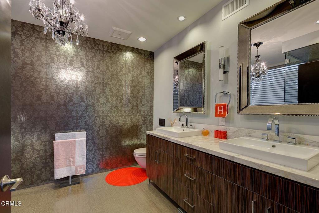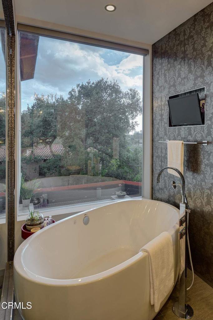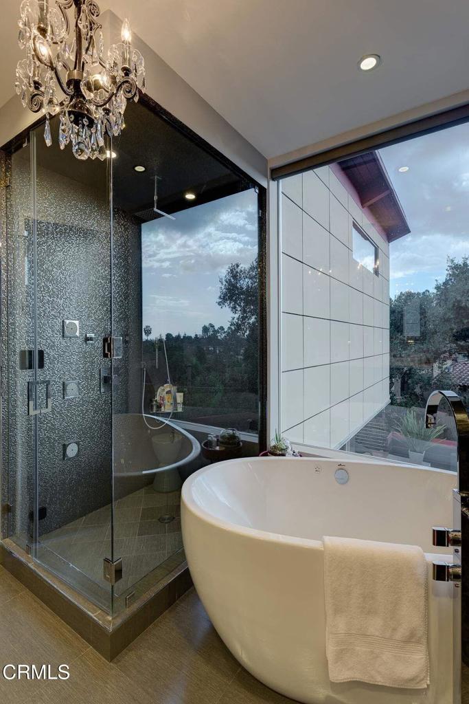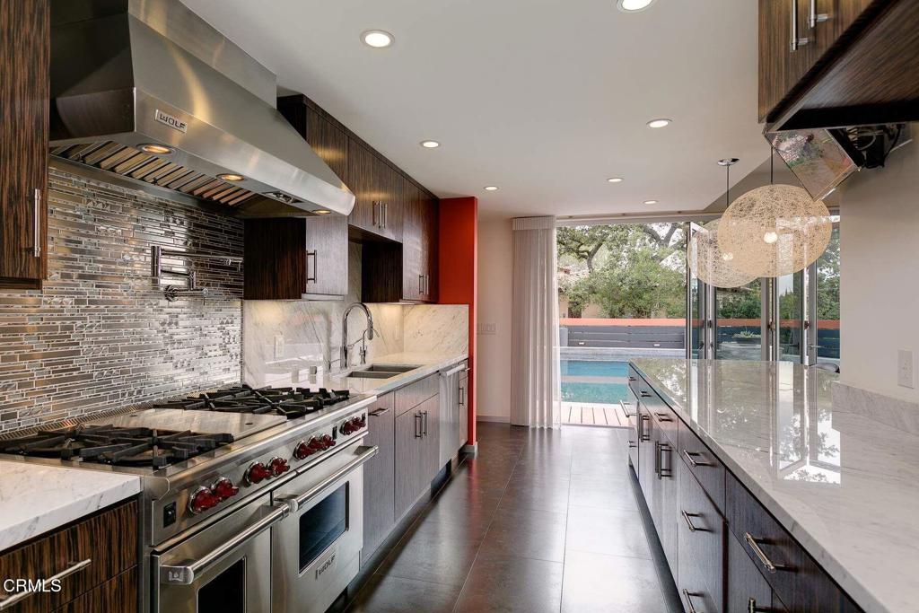 Discover the pinnacle of refined architectural design, where modern living seamlessly integrates with the natural world. This residence has been intentionally crafted to dissolve the line between indoor comfort and outdoor splendor, featuring soaring 15-foot ceilings and expansive folding glass walls that flood the space with light and open directly to the surrounding landscape. Towering walls and open-plan interiors radiate with daylight, creating a serene and elegant atmosphere.The sophisticated aesthetic is elevated by a thoughtful blend of materials--European tilework, marble finishes, and bespoke cabinetry--all carefully selected to enhance both form and function. Step outside to the striking infinity-edge pool, where clean, minimalist architecture frames unobstructed vistas of the San Rafael Hills.Every aspect of this home is a testament to refined taste, cutting-edge innovation, and luxury living. The master suite offers spa-inspired features including a steam shower adorned with Porcelanosa tiles and a generously sized air-jet soaking tub. All bedrooms are suites. The chef's kitchen is outfitted with premium Wolf, Sub-Zero, and Miele appliances, complemented by a Graff faucet and Blanco sink set in elegant Carrera marble. The top of the line custom outdoor kitchen with Lynx appliances completes this exceptional property.Notable enhancements include Hunter Douglas window coverings, UV-protective glass, Lynx outdoor kitchen equipment, a robust solar power system with around 58 owned panels, and a heated infinity pool. Designer lighting, integrated stereo speakers, an intercom system, surveillance cameras, and wired data access in each bedroom contribute to a fully connected lifestyle. Additional smart features like dual Nest thermostats and a front entry secured by fingerprint and PIN access round out this exceptional home.
