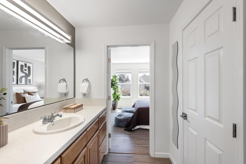 Welcome to this beautifully updated 1-bedroom, 1-bathroom condo! Freshly painted throughout, this inviting home features an in-unit washer/dryer, newly renovated kitchen with new cabinets, elegant countertops, and a convenient breakfast bar. The spacious living room flows seamlessly to your own private patio, creating a perfect indoor-outdoor living experience. The bedroom offers a generous walk-in closet, providing ample storage space. The bathroom has also been tastefully updated with modern finishes. Located in a well-maintained community with amenities that include a pool and hot tub, this condo is move-in-ready!