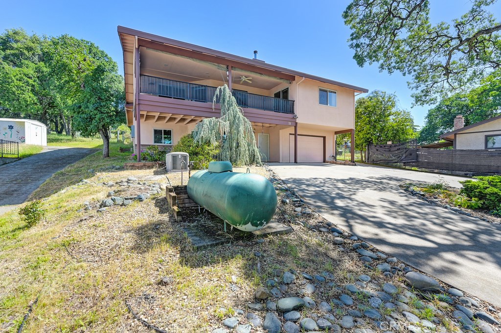 Tremendous opportunities and features on this unique, custom built home. Incredible sunset views of the Coastal Range, Sutter Buttes, and valley from the main floor balcony. Just 3 miles to the main boat ramp to Lake Oroville for fishing or a wonderful place to take a walk. Main floor includes a large, updated kitchen with dual ovens and tons of storage, vaulted great room with dining room, large main bedroom with ensuite bathroom and 2 closets, 2nd bedroom, and full hall bath. Attached via a covered walkway is a full 2 car garage with utility sink. Downstairs is a self contained area (separate entrance downstairs and internal stairs with door to upstairs) with living room, kitchenette area, bedroom, and full bath. Separate large 2 car tandem garage available downstairs as well with room for storage or a shop. Home has full backup coverage of a automatic Kohler generator along with hook-ups for a travel trailer in the gravel parking area in the back. Located on the green belt of the old golf course, there are no rear neighbors. Separate HVAC units for upstairs (replaced 4 years ago) and downstairs. Come check out the space, the quality build, and the options with this beautiful home.
