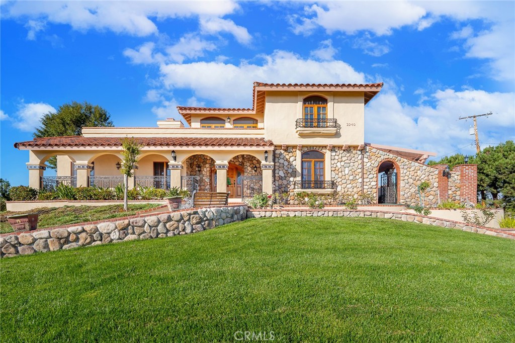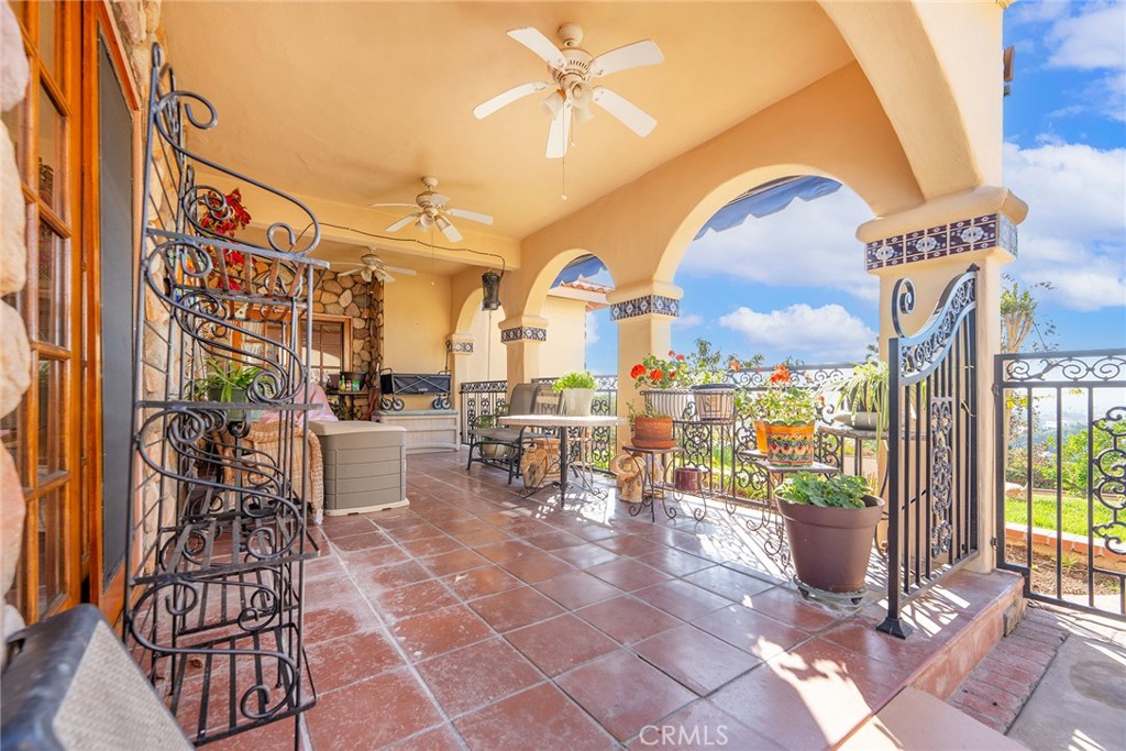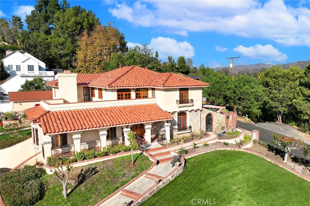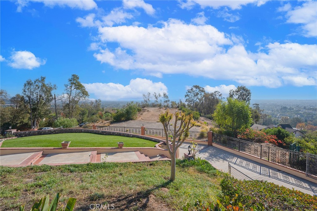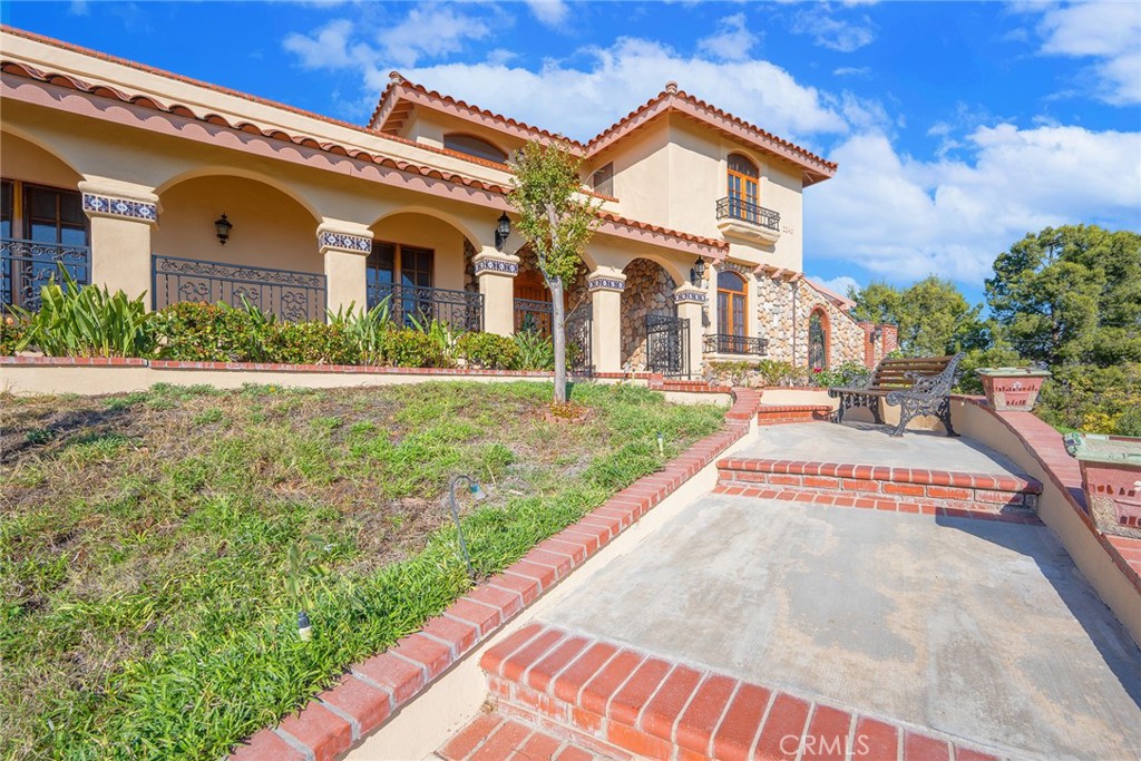 Welcome to Casa de Griffin! You're on top of the world inside this Spanish Style custom home built in 1988, located in coveted Lemon Heights neighborhood in North Tustin at the top of Foothill Ave. Starting from the outside, you have a beautifully maintained lawn on the south and west wide with pathways weaving in-between. You enter your home starting from a gated driveway as you go up either by bricked capped steps to your front porch, or pull into your ground level garage and head up a flight of stairs to your porcelain marbled floor foyer. From the foyer on your left, a family room with beamed ceilings, gas fireplace featuring a marble front with a wood mantle, with a porcelain marble floor outlined with wood accents. To the right of the foyer, a living room with 2 sliding wood glass doors leading to the side seating patio. Connected to the living room, a formal dining room that is just off the kitchen. The kitchen features custom cabinets topped with marble and a powered center island. You have a built-in gas stove with overhead range hood, dishwasher and a built-in oven. Off the hallway coming out of the kitchen, a convenient half bathroom, in addition to a sitting room in the center of the home with an additional room to the right, both have glass sliding doors out to the red paver patio on the west side of the house. Up the staircase, the primary bedroom with access to the 2nd story patio overlooking West Tustin and beyond. You have an ensuite bathroom with tile flooring, walk-in closet, dual vanity sink, walk-in shower, and seperate tub. Down the hallway you have 2 additional bedroom, both with closets and stellar window views. Each bedroom has an attached full bathroom. On the 2nd level you have a dedicated laundry room with washer/dryer hookups, utility sink, overhead cabinets and a storage closet. The casita in the backyard features porcelain marble floors, a full bathroom with shower tub and a kitchenette that is open to the living area with white cabinets. Lastly, the exterior is accented with manicured trees, rose bushes, hedges, and emerald green grass. This is one of the best locations, at the end of Skyline!