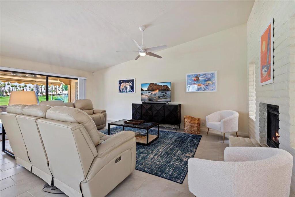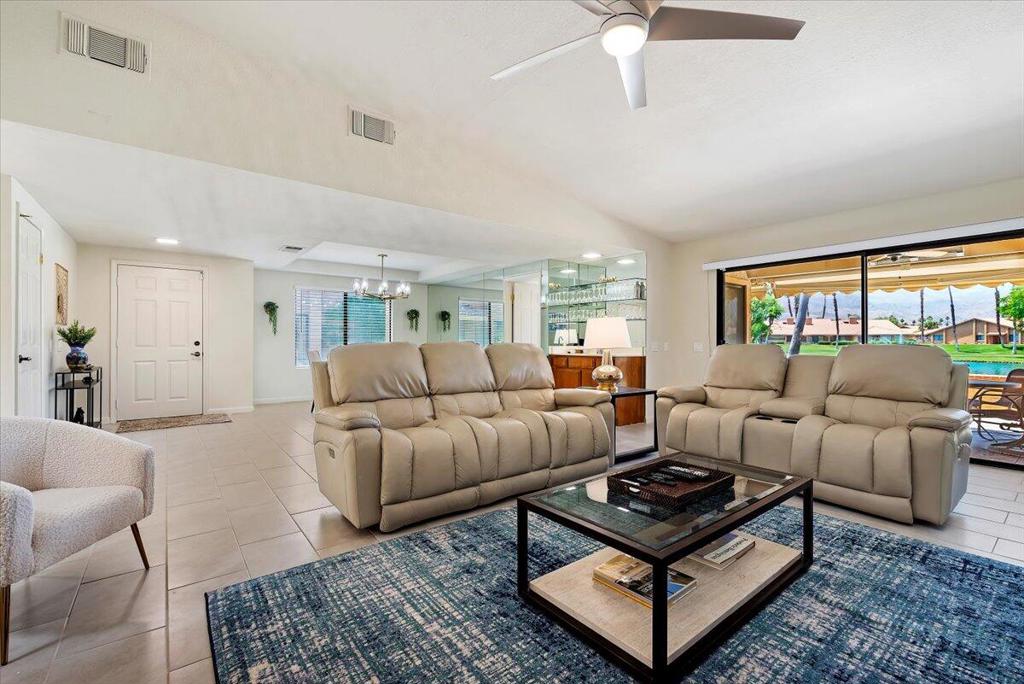 One of the most sought-after locations in Chaparral CC, this prime lake and golf-course location provides spectacular panoramic views of the San Jacinto Mountains, the lake and green of the 15th hole and the entire 16th hole. This 3-bedroom condo includes 3 full bathrooms and has just been updated with new tile floors, plush carpet in all the bedrooms and fresh paint. The atrium has been converted into additional indoor living space and the patio has been extended and a privacy wall installed. Other features include electric awnings, refinished ceilings and well-placed solar tubes. This is the unit you have been looking for; Enjoy viewing the snowcapped mountains from your extended patio with comfortable patio furniture and gas BBQ while you watch the golfers hit over the lake on hole #16. Located in the heart of Palm Desert, Chaparral offers 18 holes of challenging golf, 21 Pools & Spas, Tennis, Pickle-ball, a fully equipped Fitness room, Activity center with pool and card tables and a remodeled Clubhouse with world-class dining and entertainment. Owner pays baseline of first $200 of monthly gas and electric bills. Tenant to pay any amount over baseline. Update: Unit rented Nov 2026 thru Apr, 15 2027. Available Sep/Oct 2026 and May/Jun 2027 at $5,000/mo.