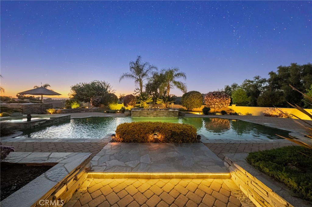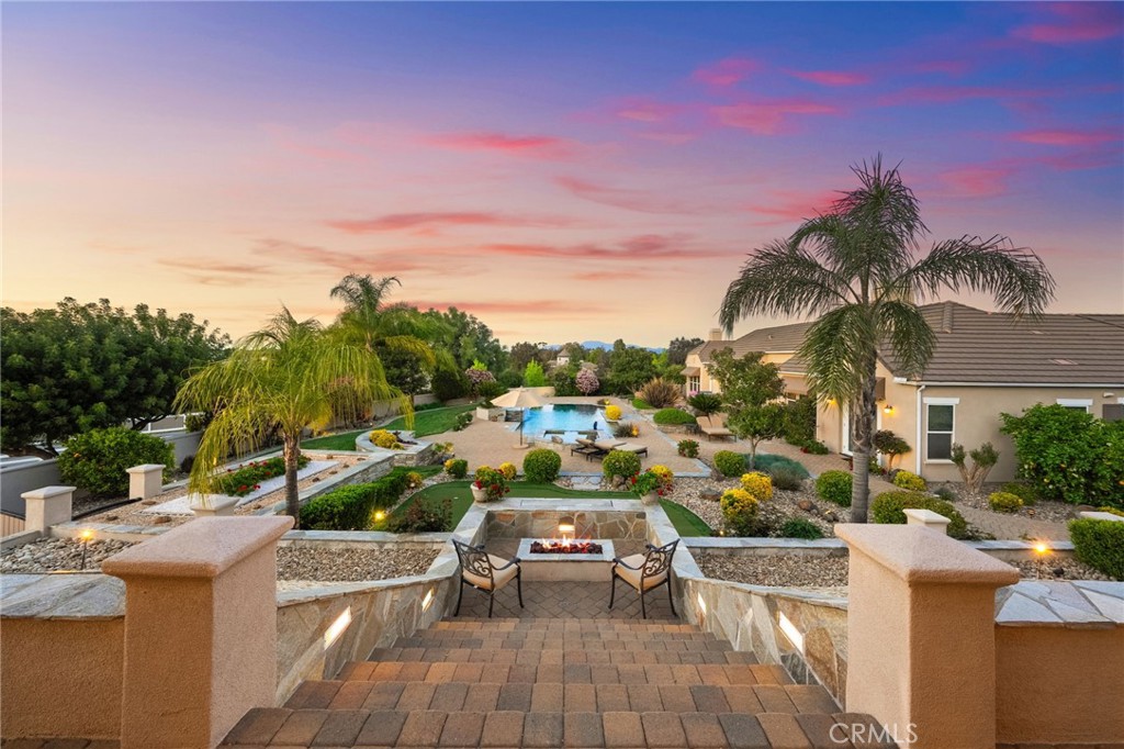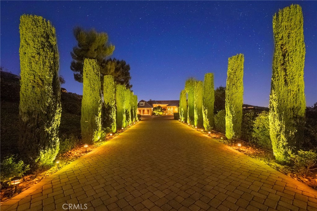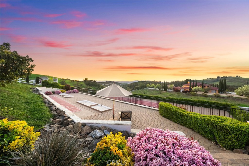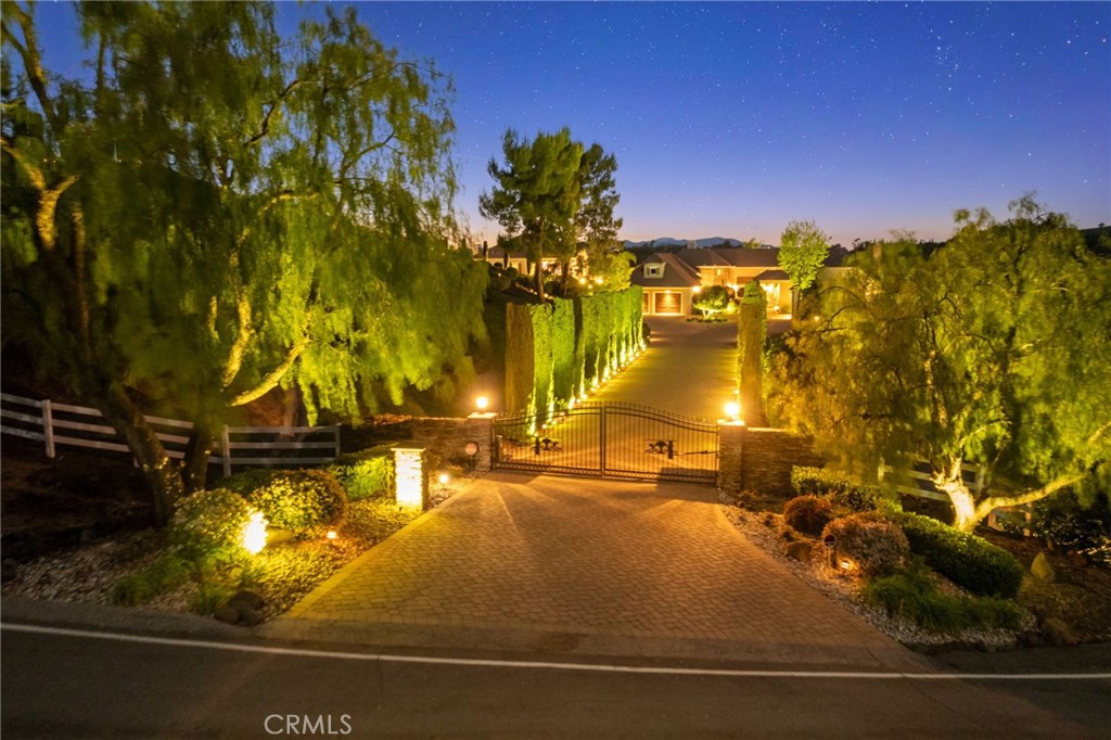 One-of-a-kind estate located just 5 minutes from the charm & culture of Old Town Temecula. Set behind 3 private gated entrances, this sprawling 4.19 acre compound features 3 separate single-story residences & an underground wine cellar all totaling approx. 6100 sq ft, masterfully positioned to capture breathtaking sunset views across rolling hills. The grounds truly set this estate apart; meticulously manicured landscapes framed by stately Italian cypress trees create an outdoor setting unlike any other. A dramatic stone stairway leads from the main home to the elevated studio residence. Entertain w/ ease and elegance w/resort style amenities; sparkling pool, two separate spas, water features, outdoor fireplaces, 2 putting greens, a sports court, & a post-tensioned tennis court w/ breathtaking views. Plus 2 built-in BBQ islands & pizza oven. Approx. 30,000 sq ft of stone pavers weave through the property. The main residence is approx. 3,275 sq ft w/ travertine flooring & architectural arches. It features 3 bedrooms, office, & 3.5 baths. The gourmet kitchen complete with granite countertops, 2 sinks, stainless steel appliances, built-in refrigerator, walk-in pantry, wine fridge, butler's pantry, & bar seating-all flowing seamlessly into the family room w/ views of the pool & gardens. The primary suite offers a private retreat w/ its own fireplace & French doors leading to the amazing pool & spa. The guest house offers approx. 1,600 sq ft of luxury living w/ 2 bdrms, 2 baths, a chef’s kitchen, & fully retractable glass doors opening to commanding views of the surrounding countryside. At the estate's highest point, the studio offers approx. 600 sq ft of open-concept living, complete with an elevated desk area, curved wine bar, a built-in spa, putting green, rooftop lounge, ATV-sized garage, & unmatched panoramic vistas. A 600 sq ft stand-alone reinforced concrete wine cellar is the perfect sanctuary for wine-making enthusiasts - complemented by approx. 1,000 wine grapevines and 21 table grapevines, as well as approx. 100 avocado trees, and various fruit trees. Additional features include upgraded mahogany garage doors, extensive landscape lighting, whole house & outdoor sound systems, multiple whole-house fans for year-round comfort, & a comprehensive security system. Perfect for a multigenerational compound, vineyard retreat, or entertainer's paradise, this Temecula estate redefines California luxury living with a setting that must be seen to be believed.
