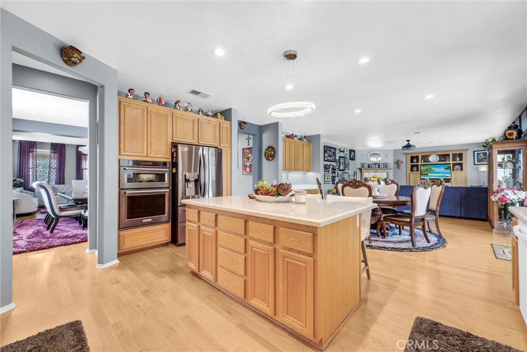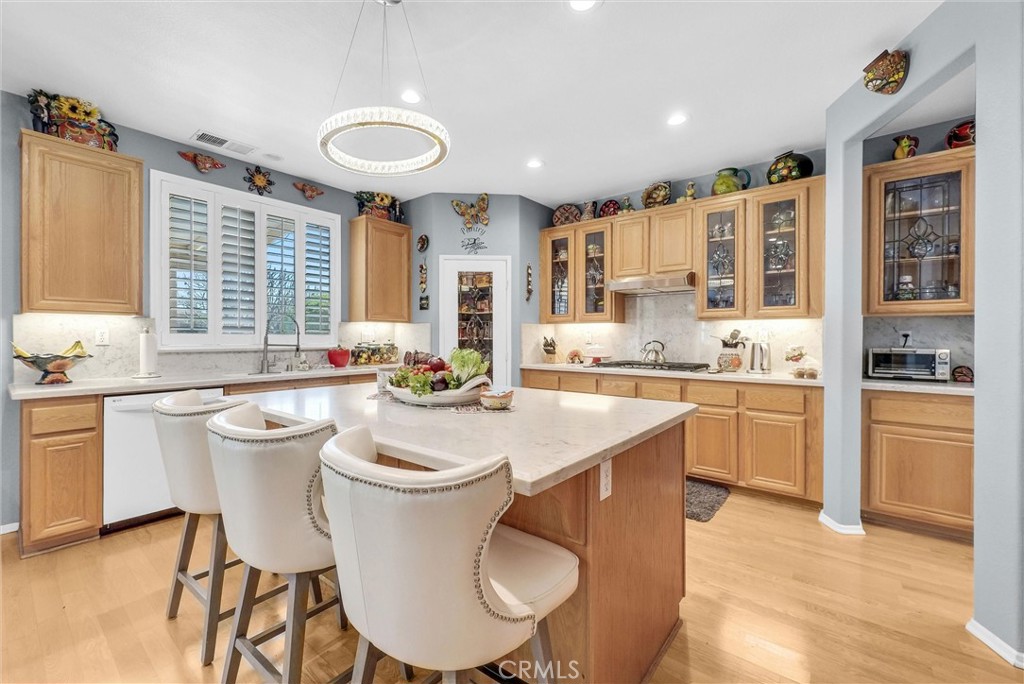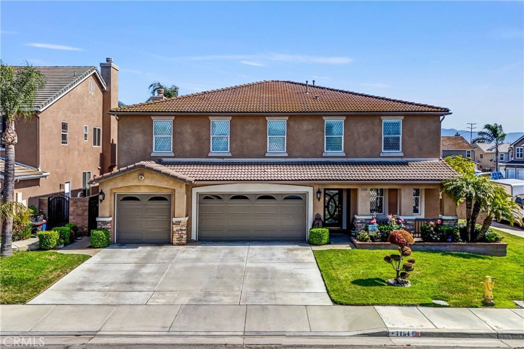 PRICE ADJUSTMENT on this Absolutely Gorgeous ExecutiveCorner Lot Pool Home – 5 Bedrooms, 4 Baths, 4,220 Sq Ft of Luxury and Pride of Ownership This impeccably maintained two-story home is a must-see! Located on a desirable corner lot in a great area of Eastvale, This home offers 4,220 square feet of elegant living space, featuring 5 spacious bedrooms and 3 full bathrooms. Beveled glass accents throughout add a touch of sophistication. A generous size bedroom and full bathroom are conveniently located on the main floor—perfect for guests, in-laws, or a home office. The main floor also includes an individual utility/laundry room for added convenience. The gourmet kitchen is a chef’s dream, showcasing a granite island, walk-in pantry, KitchenAid appliances, and beveled glass cabinet doors. Adjacent to the kitchen is a built-in desk and a huge great family room complete with a elegant marble fireplace and custom entertainment center. Upstairs, you’ll find a HUGE loft/bonus room that can be transformed into a home theater, game room, or anything you envision. 4 additional bedrooms upstairs and 2 share a Jack-and-Jill bathroom, while elegant crown molding and beautiful flooring enhance the space. The luxurious primary suite features a large walk-in closet, a second closet, and an en-suite bath with marble flooring, dual sinks, a soaking tub, and a separate shower. Plantation shutters and ceiling fans throughout the home provide both style and privacy. Step outside to your own backyard paradise—complete with a beautifully designed sparkling pool, rock waterfall, jacuzzi, built-in BBQ, and a cozy firepit area—perfect for entertaining or relaxing year-round. Additional features include solar panels, two HVAC units, 3 car garage and is in a prime location near the distinguished Corona-Norco School District, with easy access to freeways, shopping, dining, and the Silver Lakes Equestrian and Sports Park.