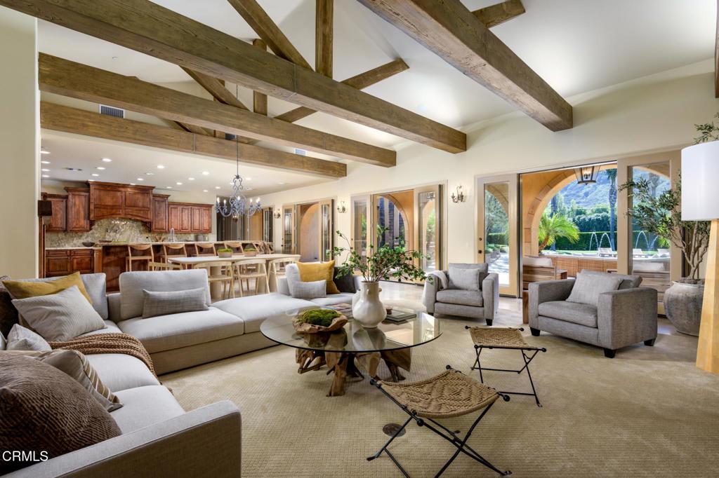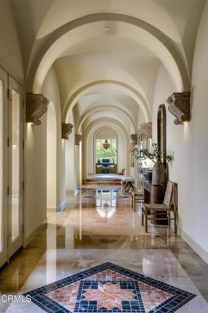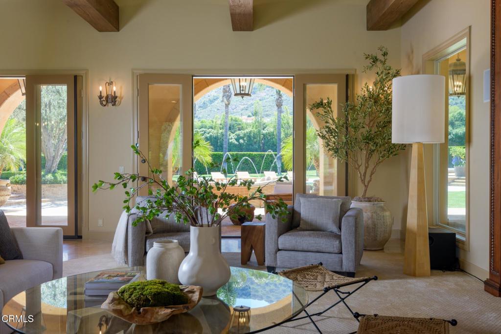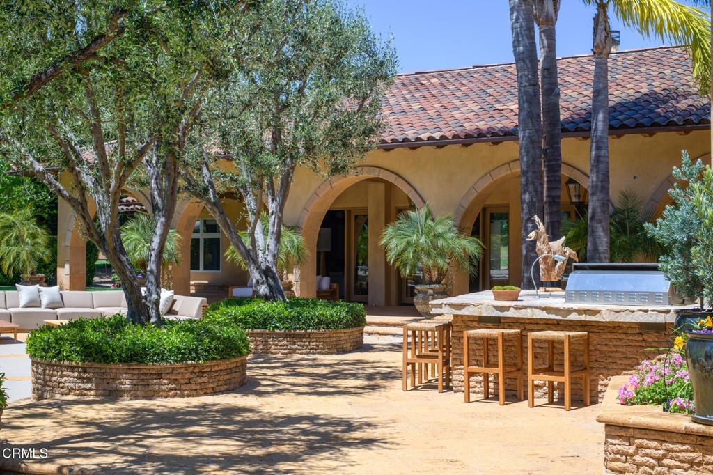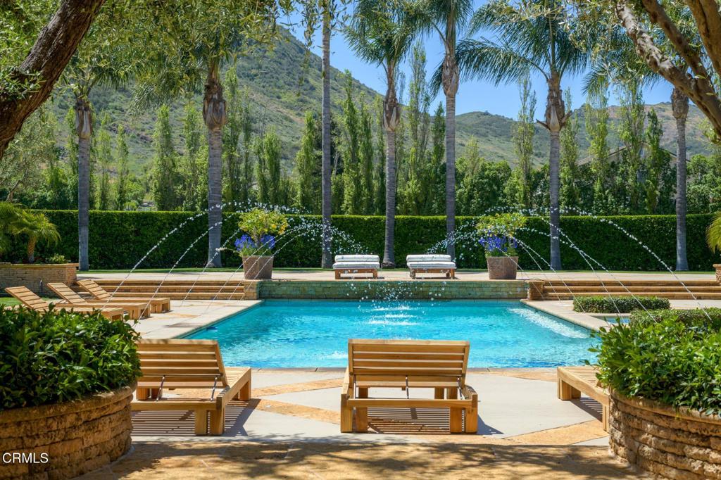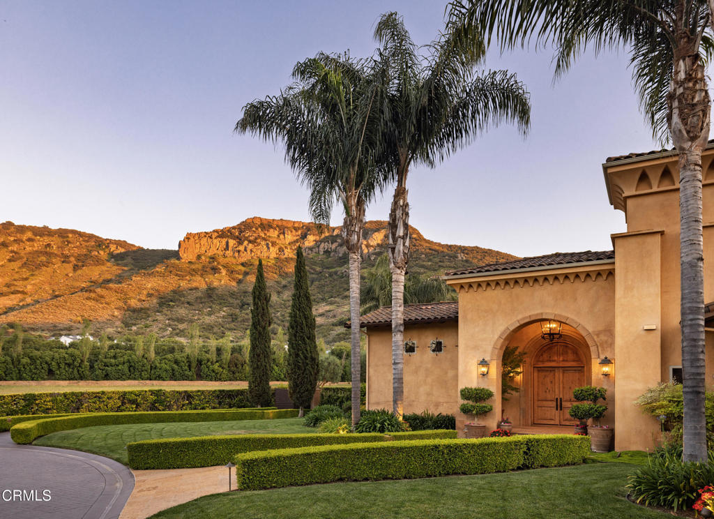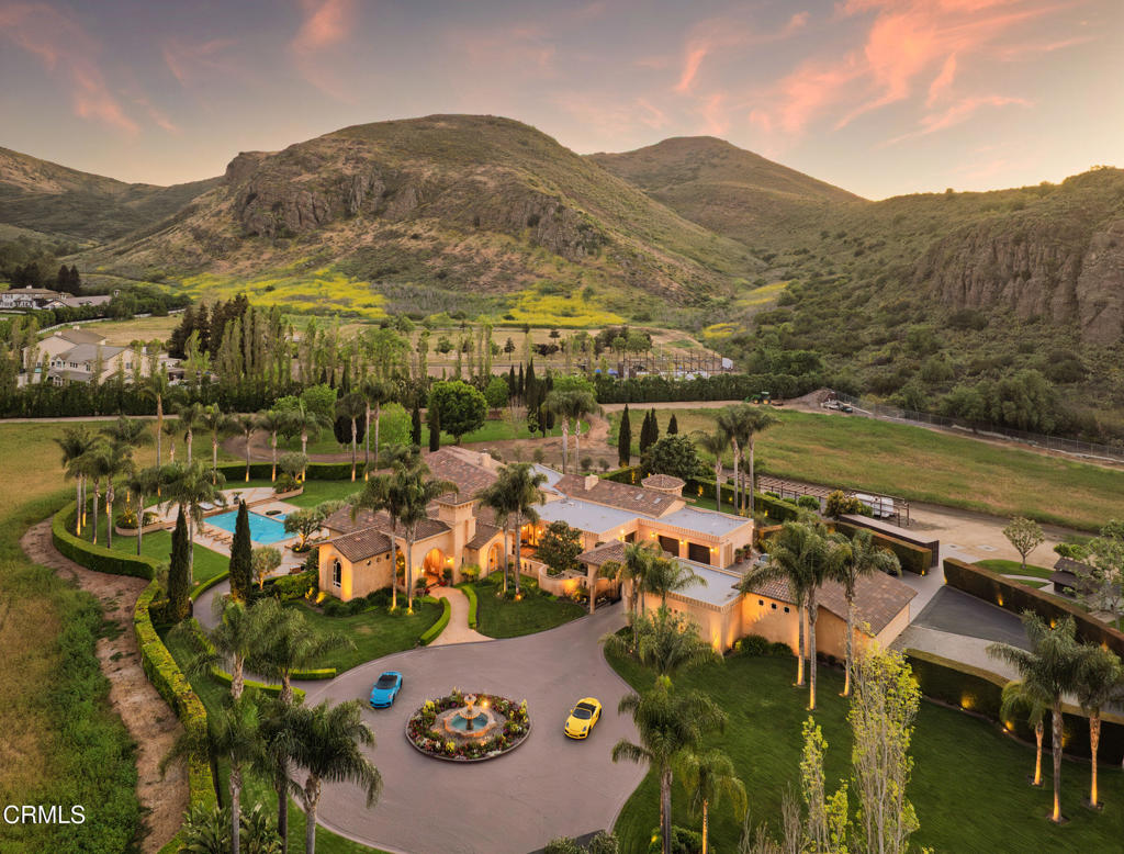 Ultra-Private Luxury Mediterranean Resort-like Sanctuary in the Santa Rosa Valley! Discover unparalleled privacy and prestige in this exquisite 10-acre Estate in Santa Rosa Valley's most exclusive, celebrity-favored enclave. Set against a breathtaking mountain backdrop, this gated retreat perfectly marries timeless architecture with the graceful, understated grandeur of California living. A grand gallery-style hallway welcomes you with soaring ceilings, gleaming marble floors, and custom lighting, creating a lavish and unforgettable first impression. Walls of floor-to-ceiling windows and elegant French doors flood the interiors with natural light, framing panoramic views and seamlessly connecting indoor and outdoor living. The home's design feels inherently at home here, nestled gracefully within the landscape and harmonizing with the serene beauty of the valley. This ultimate family compound offers over 7,500 square feet of refined single-level living, featuring five bedrooms and seven bathrooms. The show-stopping primary suite is a private sanctuary, while spacious guest suites and thoughtfully designed living areas provide ideal spaces for family, creativity, and retreat. An Entertainer's Dream, the state-of-the-art chef's kitchen, outfitted with professional-grade appliances and elegant finishes, is a culinary masterpiece. For alfresco dining, the outdoor kitchen boasts a wood-fired pizza oven, a built-in BBQ, and an expansive patio perfect for gatherings under the stars. The resort-style grounds feature a sparkling pool with graceful fountains, manicured lawns, lush gardens, and mature trees, offering a breathtaking backdrop for grand celebrations and tranquil relaxation. Enjoy unforgettable movie nights in the immersive theater or marvel at the mesmerizing 500-gallon saltwater aquarium. Every detail caters to discerning tastes, from an air-conditioned doghouse with filtered water to an eight-car garage ideal for collectors or entertainers. Fruit orchards dot the landscape, while a private sports field adds playful energy. Soaring red-tail hawks drift overhead, underscoring the Estate's peaceful exclusivity. More than a home, this extraordinary Estate is an immersive experience and a legacy to be cherished for generations. Furnishing is negotiable. Discover the ultimate in privacy, luxury, and California's graceful elegance--where every moment is utterly unforgettable! Welcome home!