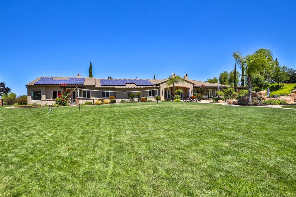 Sprawling Single Story Gated Estate in the Heart of Temecula Wine Country with Resort Style Backyard. Over 6,000 Sq Ft Residence on Five Acres. Incredible Location @ Rancho California Road Wine Trail, Walking Distance to Several Award Winning Wineries. Car Enthusiasts Bring Your Treasures! Nine Car Garage Awaits! Soundproof Room for Musical Enthusiasts and Gorgeous Wine Cellar Awaits Your Friends and Wine Enthusiasts. Multiple Patios, Large BBQ Island, Outdoor Fireplace and Two Firepits. Huge Impeccably Maintained Lawn Ready for All The Lawn Games and Entertainment. Spectacular Salt Water Pebble Tec Swimming Pool Includes Large Waterslide, Bar, Reef Entry, Waterfalls and Oversized Spa. This Remarkable Residence Includes Oversized Primary Suite with Retreat, Luxurious Bathroom, Spacious Walk-In Closet with Organizers and Dual Fireplace. This Home Offers Four Fireplaces. Huge Den/Bonus Room is Currently Used as a Sixth Bedroom, and it's Adjacent to Wonderful Home Theater. Enormous Chef's Kitchen Includes Massive Center Island. Watch the Wine Country Hot Air Balloons Soar from Your Backyard. Approximately 1.5 Acres Are Beautifully and Fully Landscaped and 3.5 Acres are Currently All Natural, Ready for Your Vineyard, Orchard, Equestrian Facilities or an Ultimate Playground?! No HOA, low property tax rate and paid solar with 72 solar panels are included! Seller might consider Seller financing with 25% down @ 4.5% interest rate with a balloon payment at one year. Seller might consider selling the property partially or fully furnished.