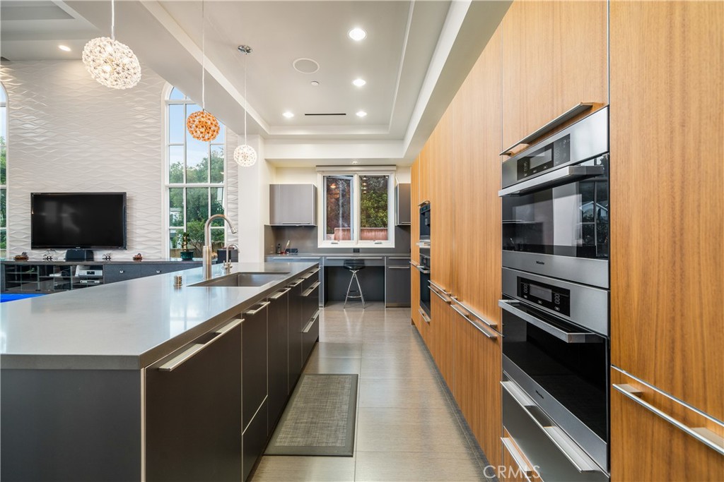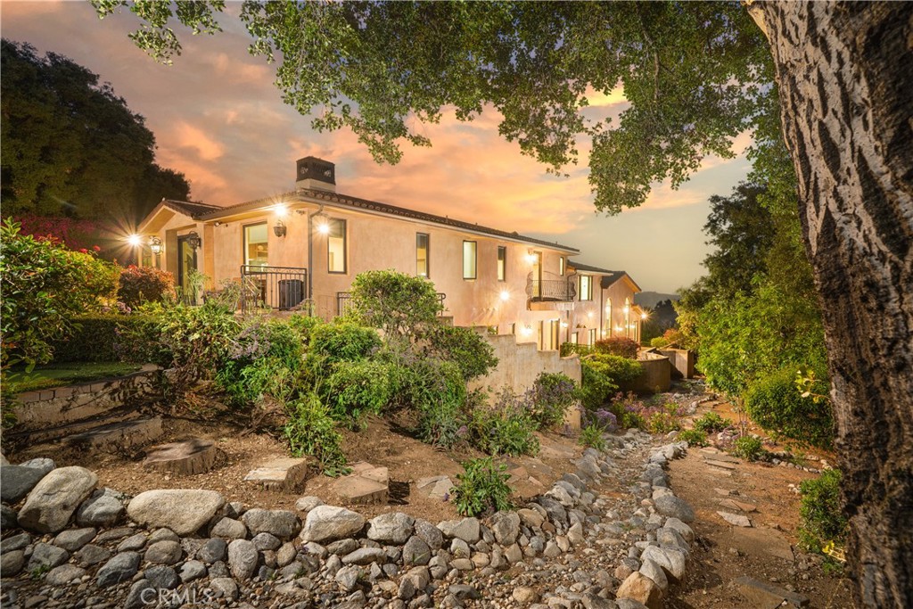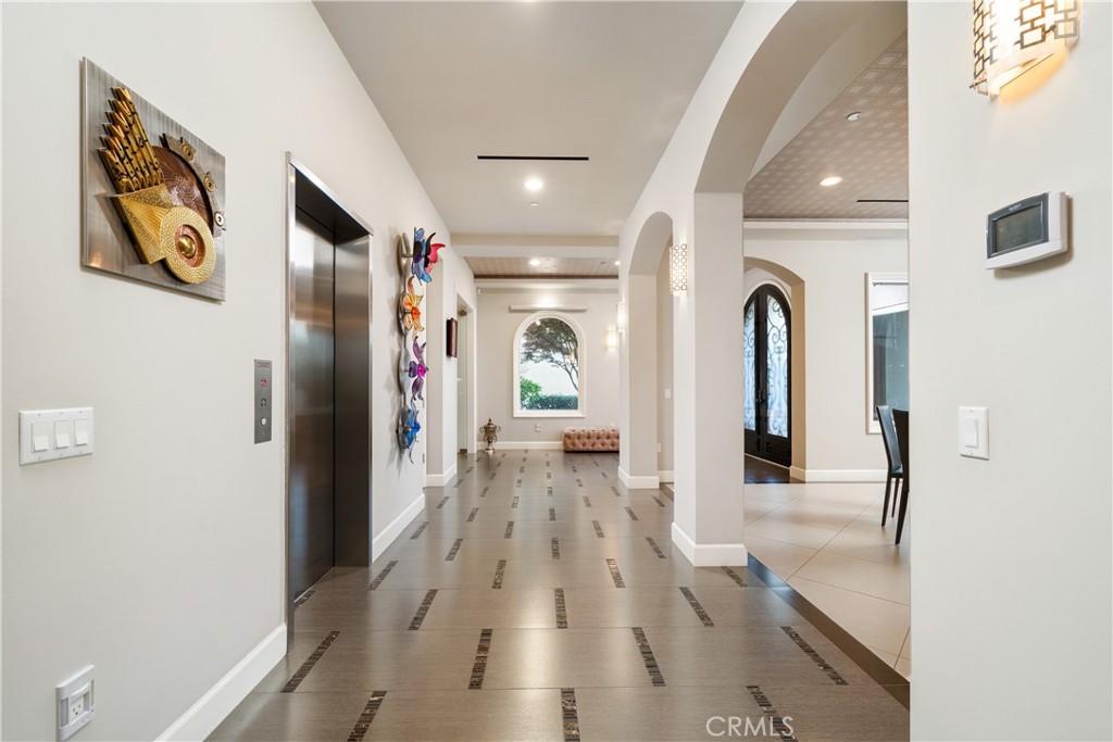 Experience the height of luxury and privacy in this breathtaking custom estate nestled in the foothills of North Glendora. Built in 2012 and situated behind private gates on a spacious one-acre lot, this one-of-a-kind residence offers an extraordinary blend of elegance, comfort, and cutting-edge smart technology, all set against a stunning backdrop of panoramic city and mountain views. Boasting 6 bedrooms, 5.5 bathrooms, and nearly 6,800 square feet of sophisticated living space, every inch of this home showcases exquisite craftsmanship and the finest materials. Enter through grand double iron doors into a dramatic formal entry, where a designer chandelier and gleaming finishes set the tone. The heart of the home is the expansive great room featuring high ceilings, a custom fireplace, wet bar, and French doors that open to a serene-covered patio. The adjacent state-of-the-art kitchen is a chef’s dream, complete with a Miele appliance suite, Bulthaup cabinetry, a central island, and a fully equipped wok kitchen with a built-in fryer, super burner, and Viking hood. Retreat to the luxurious primary suite with a private sitting area, balcony overlooking the city, spa-inspired bathroom with a steam shower, air jet tub, and dual vanities. Additional highlights include a private office, game/theater room with wet bar and fireplace, and a spacious playroom. Modern convenience meets timeless elegance with a full home automation system, integrated sound throughout, custom window coverings, and even a commercial-grade elevator. The attached six-car garage (approx. 1,400 SF) provides ample space for vehicles and storage. Outside, the park-like grounds offer a peaceful escape with mature oak trees, fruit trees, a putting green, and plenty of space to relax or entertain. Truly a one-of-a-kind property in one of Glendora’s most prestigious neighborhoods. Designed for discerning buyers who demand the very best—this home must be seen to be fully appreciated.