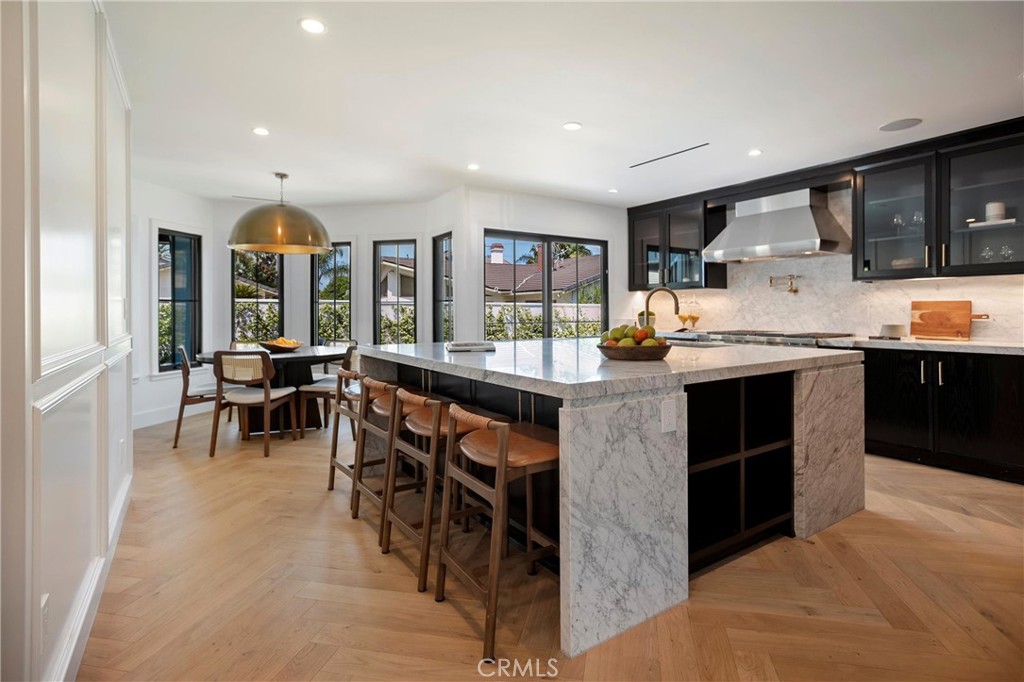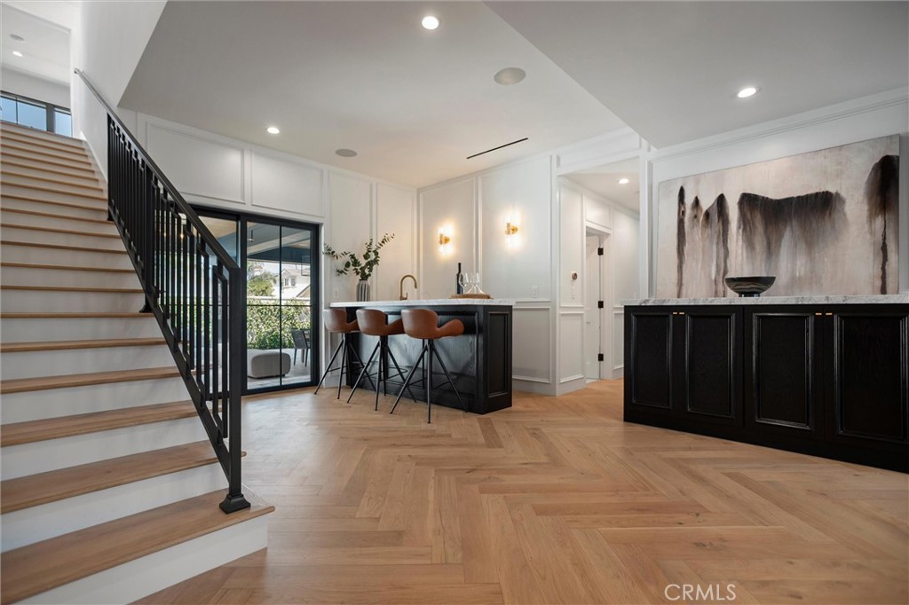 Experience the pinnacle of modern design, beauty, and functionality in this completely rebuilt, luxury residence nestled in the coveted North Downey neighborhood. This four-bedroom, four-bath (one full, three three-quarter) home exemplifies the latest in custom homebuilding, with high-end finishes and thoughtful details at every turn. As you step through the grand foyer, sunlight pours through Windsor metal-framed windows, illuminating custom millwork and herringbone wood flooring that set the stage for refined living. Formal living and dining rooms provide an elegant backdrop for entertaining and just beyond, the kitchen anchors the center of the home with striking architectural presence—designed for both performance and style. It features a dramatic marble waterfall island, premium, built-in Wolf and Sub-Zero appliances, a spacious walk-in pantry, and a bright breakfast nook overlooking the backyard oasis. An adjacent wet bar stands ready for crafting cocktails, and a nearby main-level laundry room adds everyday ease. For ultimate comfort and privacy, the residence offers a rare dual-suite layout. Upstairs, the expansive primary suite is a private retreat unto itself—step out onto your balcony for morning coffee, unwind in the cozy sitting area, or indulge in the spa-inspired bath featuring Waterworks fixtures. A custom dream closet provides boutique-like organization. Downstairs, a second luxurious suite with its own bathroom and direct pool access is perfect for guests or multigenerational living, offering resort-style comfort on the main level. The west wing of the home features two spacious bedrooms that share a designer bathroom with dual sink vanity and stone finishes. Outside, the entertainer’s backyard beckons with a sparkling pool, relaxing spa, and a covered patio ideal for al fresco dining and lounging. An outdoor-access bath adds convenience. The front yard boasts mature landscaping and a circular hand paved driveway that enhances the home’s commanding curb appeal. Every inch of this home reflects uncompromising quality—from Restoration Hardware lighting & hardware to the Presidential Shake roof. A 3-zone, HVAC system, new Control4 Automation system and a tankless water heater ensure year-round comfort and efficiency. This residence invites you to live an elevated lifestyle, where everyday moments are as luxurious as they are effortless.