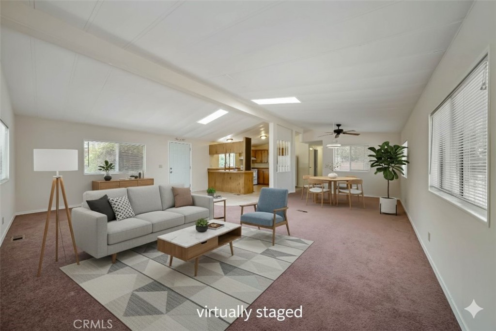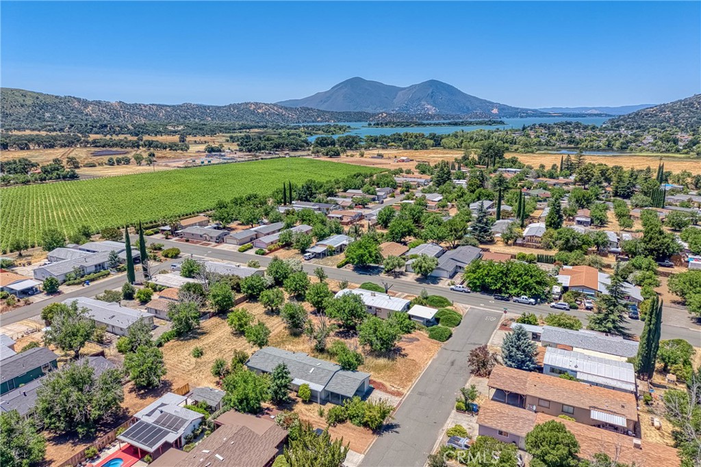 Live beautifully in this open and spacious 2 bedroom & 2 bath home in Clearlake Oaks. The approximately 1344 square foot is super welcoming and practical with a great floorplan including vaulted ceilings in living areas and master bedroom. With a green belt in the back and on the side of the home, experience a feeling of living large with fantastic views of the hillside vineyards. The living areas have an open concept living/dining room, a large kitchen with ample cabinetry and counter space, 2 generously sized bedrooms, plus a large convenient inside laundry room. The AC/Heating unit was replaced in 2024 and the roof is nearly new - installed in 2023. Other major component such as the water-heater is about 2 years new. Located in the well planned community of Orchard Shores, with wide streets, underground utilities, a club-house, seasonal pool and more. Covered parking in a good size car-port. A large storage room provides excellent storage space. Easy access into and around the home - space for planting a garden, a few fruit trees and backyard fun. Come take a look! Excellent value considering almost brand new roof, AC/Heat and Water-Heater. With very little effort could be a real showcase. Fantastic opportunity for retirees looking for low cost living, rental investment or a vacation home.