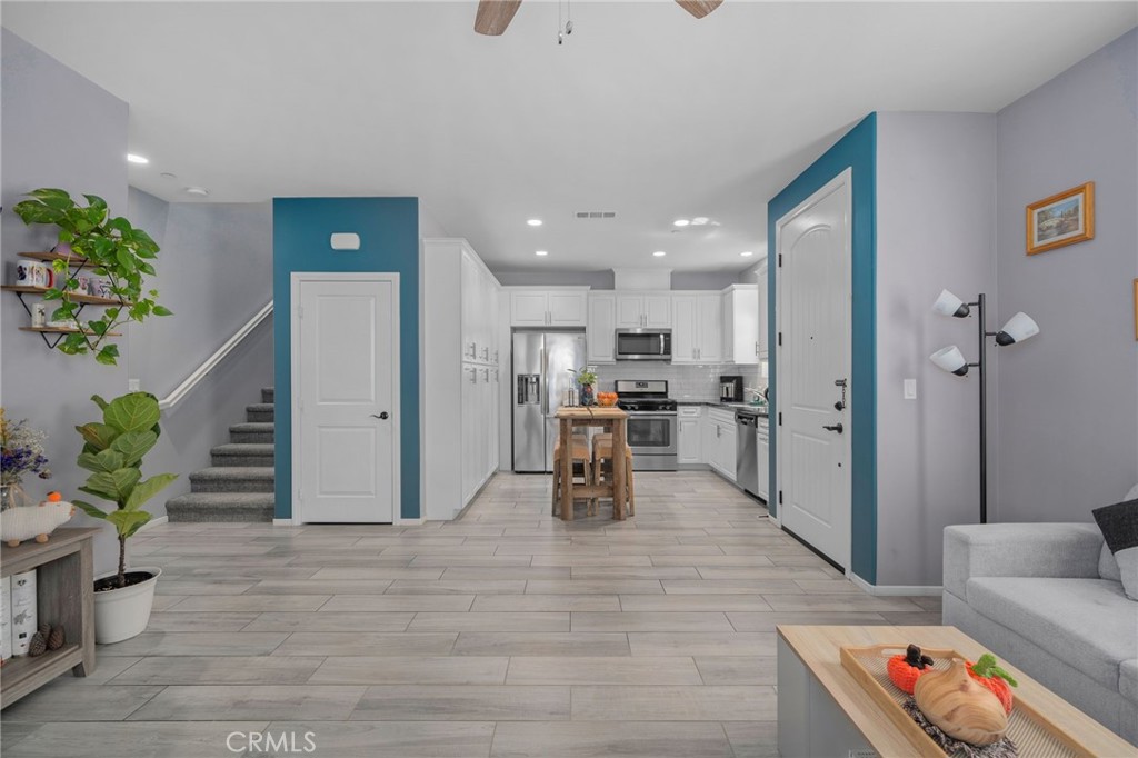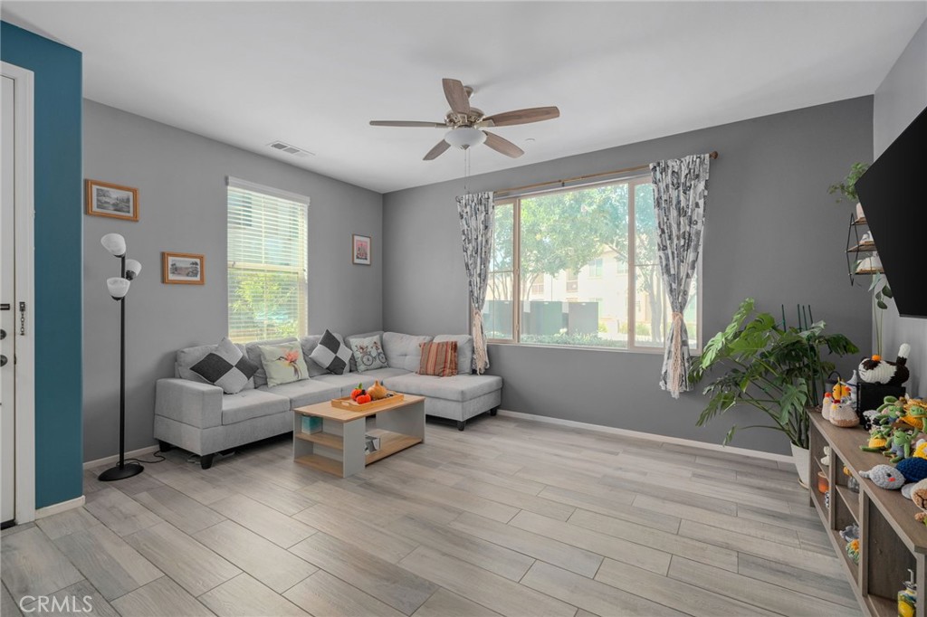 Welcome to this charming end-unit condo nestled in the sought-after New Haven community. This thoughtfully designed home features an open floor plan and stylish LVP flooring throughout, creating a seamless flow perfect for entertaining and everyday living. The spacious kitchen boasts abundant cabinetry, sleek stainless steel appliances, and ample counter space to inspire your inner chef. Just off the kitchen, enjoy the convenience of a stackable washer and dryer on the main floor. Upstairs, you’ll find ceiling fans in the comfortable bedrooms, providing year-round comfort. Additional highlights include a private fenced courtyard—ideal for outdoor relaxation— an attached two-car tandem garage offers generous parking and storage options. Enjoy the incredible community amenities including a clubhouse, large lap pool, community spa, playground, beautifully maintained green belts, dog park, and a neighborhood park perfect for gatherings or a peaceful stroll. Located close to markets, shopping centers, and with easy access to major freeways, this home offers the ultimate in convenience and connectivity. Don’t miss this opportunity to own a bright, low-maintenance home in one of the area’s most vibrant and family-friendly communities!