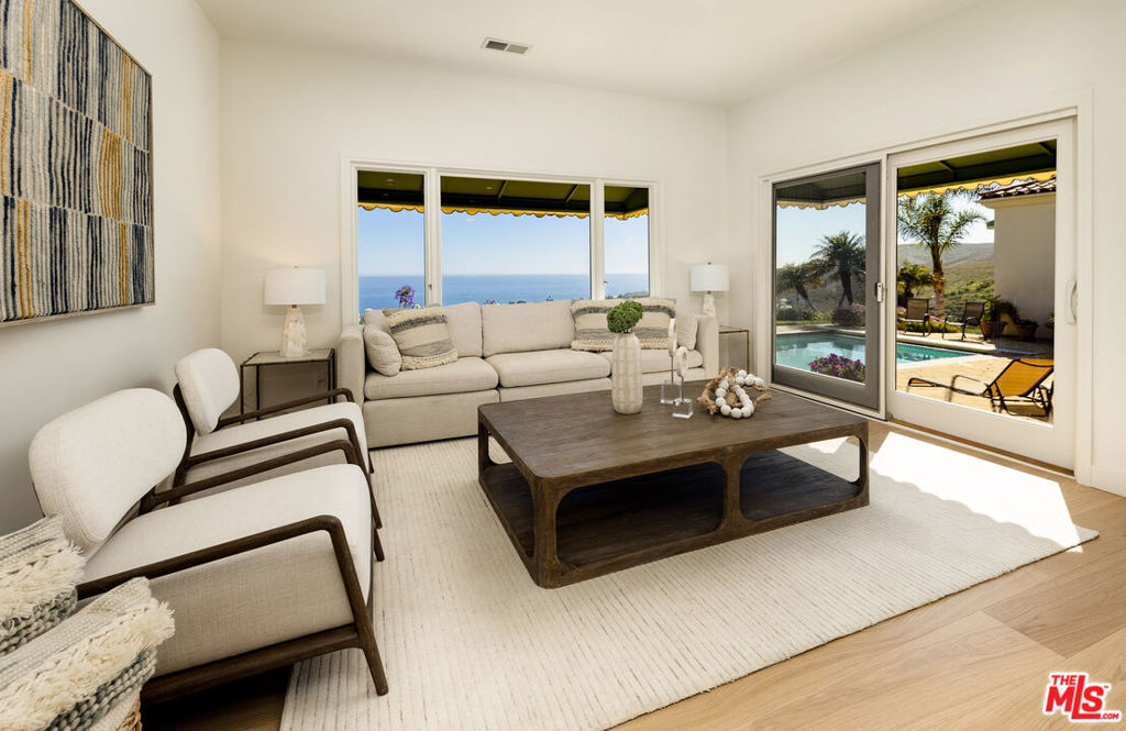 Set on approximately 10.24 acres of coastal beauty, this expansive ranch estate is nestled within the ultra-private, gated enclave of El Capitan Ranch an exclusive community where homes rarely come to market. Recently reimagined, the Mediterranean-style residence offers sweeping, unobstructed ocean views from nearly every room. A stately Formal Entry introduces newly installed wide-plank wood floors that flow seamlessly throughout. Step into the sunken Living Room with a fireplace and oversize glass sliders that open to a generous terrace and pool perfect for entertaining against the backdrop of the Pacific. The adjacent formal Dining Room captures both ocean vistas and charming courtyard views. At the heart of the home lies the completely transformed chef's Kitchen & Family Room, featuring top-of-the-line stainless steel appliances, a large island, and abundant custom cabinetry. This space opens directly to the pool, spa, and a sprawling, sun-drenched south-facing terrace. An adjacent flex area is ready to be customized into a walk-in pantry, a serious wine cellar, and a mudroom with easy outdoor access. The expansive primary suite is a private sanctuary with commanding ocean views, a private balcony, an oversized walk-in closet, and a luxuriously appointed new spa bath with soaking tub and a large Oversize shower overlooking the peaceful hillsides. An additional suite and a third bedroom offer ample space, while the ocean-facing fourth bedroom currently serves as an office or den. Outside, mature avocado trees dot the landscape with approximately 5 acres ready to expand the existing crop. Two oversized garages one ideal for boat or RV storage offer generous utility, and a newly installed whole-house generator ensures peace of mind. Additional amenities include a workshop, gift-wrapping room, and multiple bonus spaces to tailor to your lifestyle. Residents of El Capitan Ranch enjoy a shared private water system and exclusive gated access to a secluded beach and cove. Just five minutes to the Sandpiper Golf Course, Bacara Ritz-Carlton Resort, and convenient shopping and top Ranked Schools, this is coastal California living at its most refined.