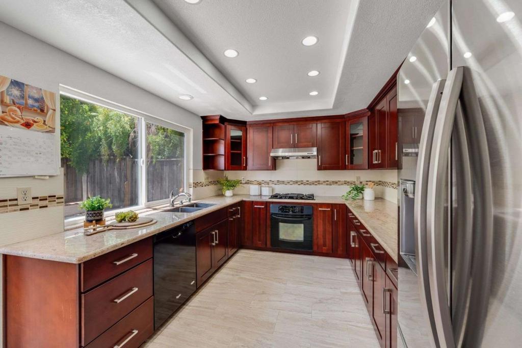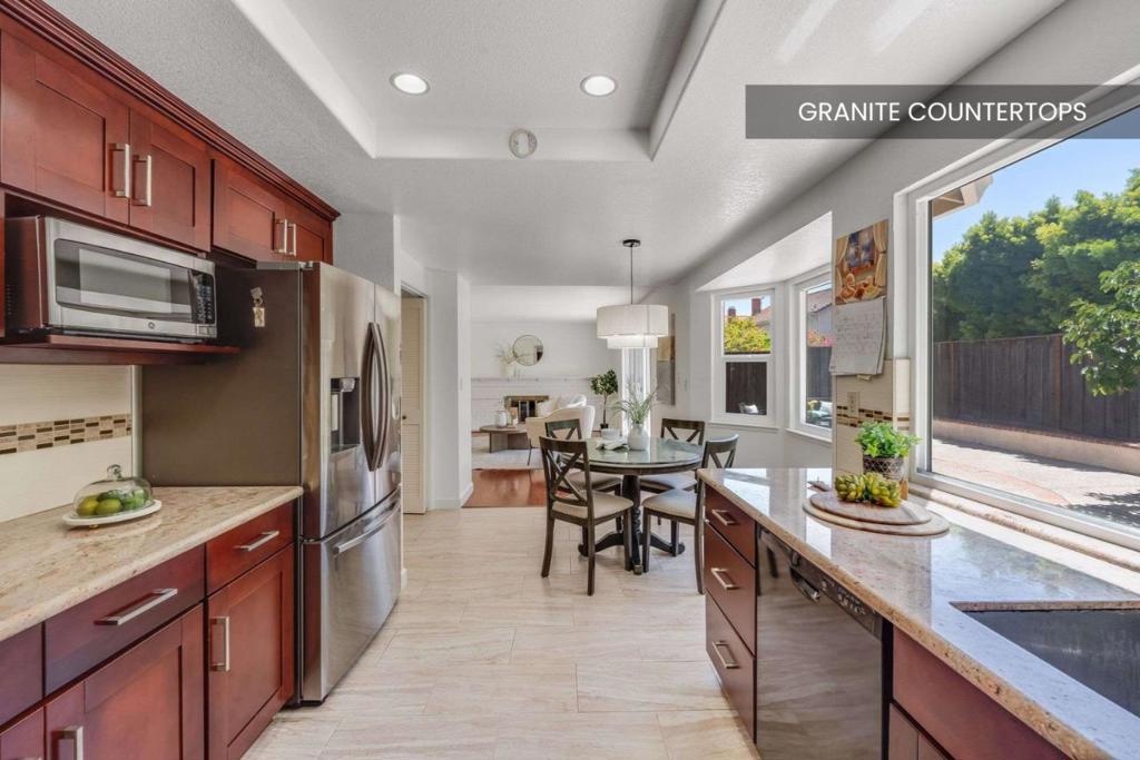 800 Los Positos Drive, 4-bed, 3-bath Shapell home located in one of Milpitas' most sought-after neighborhoods. This two-story home offers 2,566 sq. ft. of thoughtfully designed living space on a 5,000 sq. ft. lot. The home boasts bright and open layout, featuring high vaulted ceilings in the formal living and dining area with large windows flooding the room with natural light. The spacious kitchen has ample cabinet space with granite countertops that flow seamlessly into the family room with a cozy fireplace and sliding glass doors that lead to the backyard. The downstairs bedroom and full bath are perfect for guests or multigenerational living. Upstairs, you'll find spacious bedrooms and a large primary suite with an en-suite bathroom and walk-in closet. An additional oversized bonus room that could be used as an office, 5th bedroom, or gym is located on the second floor. Modern amenities include laminate floors, designer light fixtures, double pane windows, central AC and heating, plus a laundry room. The low-maintenance backyard is perfect for relaxing, gardening, or hosting gatherings. Located near top-rated schools, local parks, shopping centers, and major tech employers, this home also offers easy access to I-880, I-680, and BART, making your daily commute effortless.