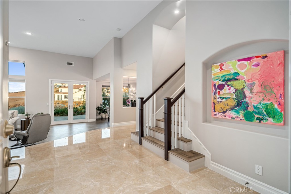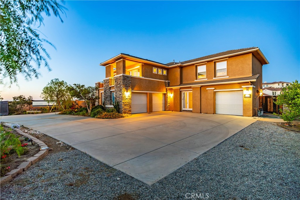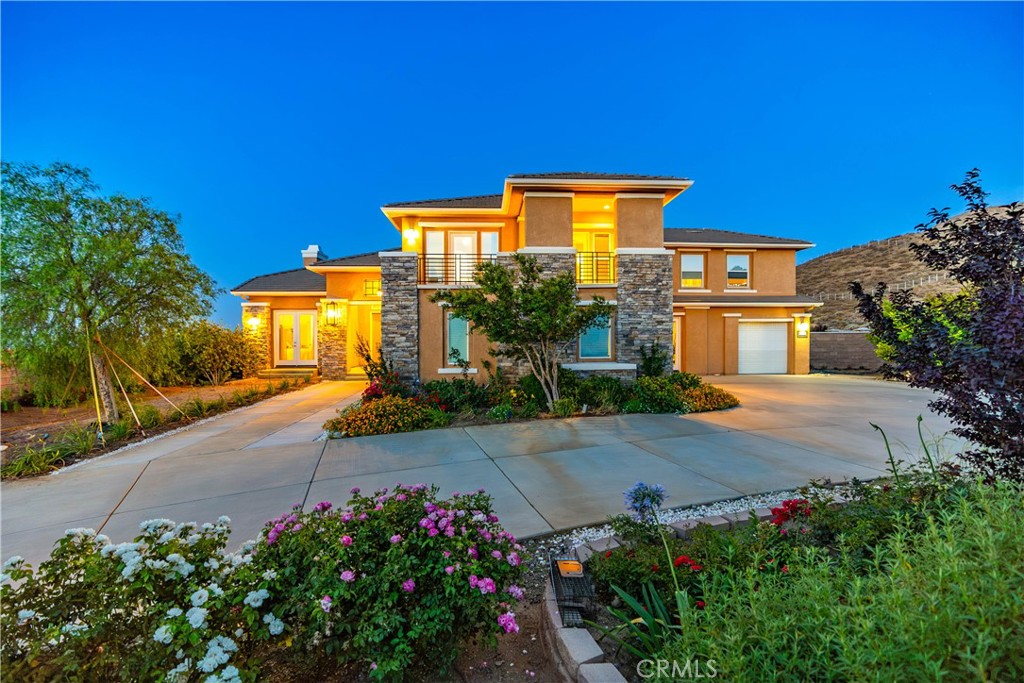 ***LIVE BEAUTIFULLY*** Nestled in the scenic foothills of West Palmdale, this exceptional 6-bed, 6-bath estate offers nearly 4,600 square feet of refined living space and showcases breathtaking panoramic views of the mountains, city lights, and tranquil lake. Designed with luxury and durability in mind, the property is fully gated with a custom entry and enclosed by a fire-hardened block wall with stone pillars—meeting LA County fire inspection standards and enhanced by a fire hydrant conveniently located at the property line. Inside, the home blends sophisticated finishes with thoughtful upgrades. The expansive kitchen is a true chef’s dream, featuring a GE Monogram appliance suite including a 36” induction cooktop, convection oven, and Advantium speed oven, along with dual sinks, dual dishwashers—including a Miele “knock to open”—a pot filler, under-cabinet lighting, and a massive 5' x 9' island topped with luxurious Caesarstone Statuario Nuvo. The adjacent formal dining room is illuminated by a modern chandelier and framed by motorized cellular blinds, while the spacious living room opens to the backyard through premium Marvin French doors. Throughout the main level, bamboo flooring with upgraded underlayment ensures comfort, insulation, and a clean, contemporary aesthetic. The 2 downstair suites are perfect for visitors or multigenerational living. Upstairs, the expansive primary suite is a spa-like escape, featuring dual custom vanities with quartz countertops and built-in power strips, lighted anti-fog mirrors, a soaking tub, and a glass-enclosed shower wrapped in Livorno Veincut Capri tile with marble penny tile flooring. Additional bedrooms offer unique design elements including floating vanities, LED backlit mirrors, solar or blackout shades, ceiling fans, and upgraded fixtures from Delta, Moen, and Hansgrohe. Outdoors, the estate continues to impress with mature trees, fruit-bearing lemon and lime trees, block and capped planters, a custom side gate, and an enclosed outdoor dining garden with custom metalwork. With high-end finishes, cutting-edge appliances, designer touches throughout, and a prime location in one of Palmdale’s most desirable areas, this estate offers an unmatched combination of elegance, privacy, and panoramic beauty. A rare opportunity to own a true hillside sanctuary.