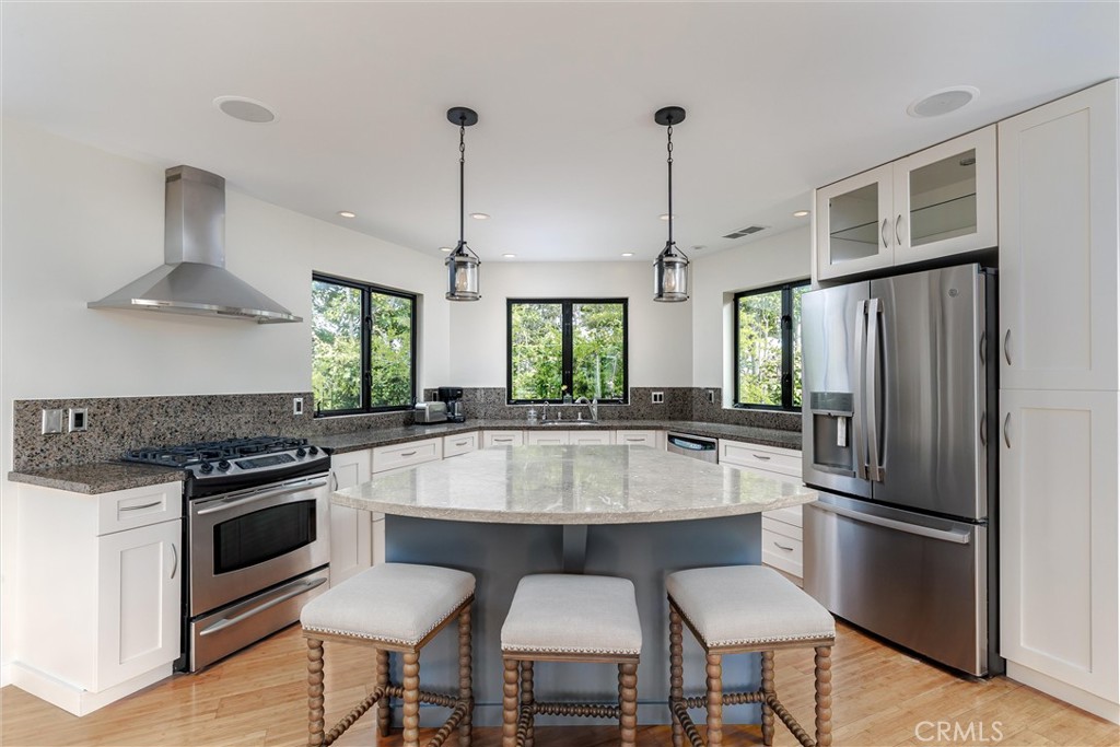 Discover this private, island-inspired sanctuary just minutes from the coast. This beautifully refreshed 2-bedroom, 2-bath home offers a serene escape with lush landscaping, multiple slate patios, and a tranquil courtyard that evokes the feeling of Hawaii. Enjoy peekaboo ocean views from your own backyard oasis. Inside, fresh interior paint and a reimagined stacked stone fireplace create a welcoming and modern ambiance. The updated guest bath adds a contemporary touch, while bamboo flooring flows through the kitchen and dining areas. The kitchen features a uniquely shaped island. Each room overlooks the patios and grounds creating a sense of true indoor-outdoor living. Vaulted ceilings enhance the open, airy feel, and a flexible bonus space Could easily be converted to a3rd bedroom, or use as home office or creative studio. Additional highlights include a 2-car garage with EV charger and plenty of storage. This one-of-a-kind property blends relaxed coastal living with style, a functionality and privacy. A must see!