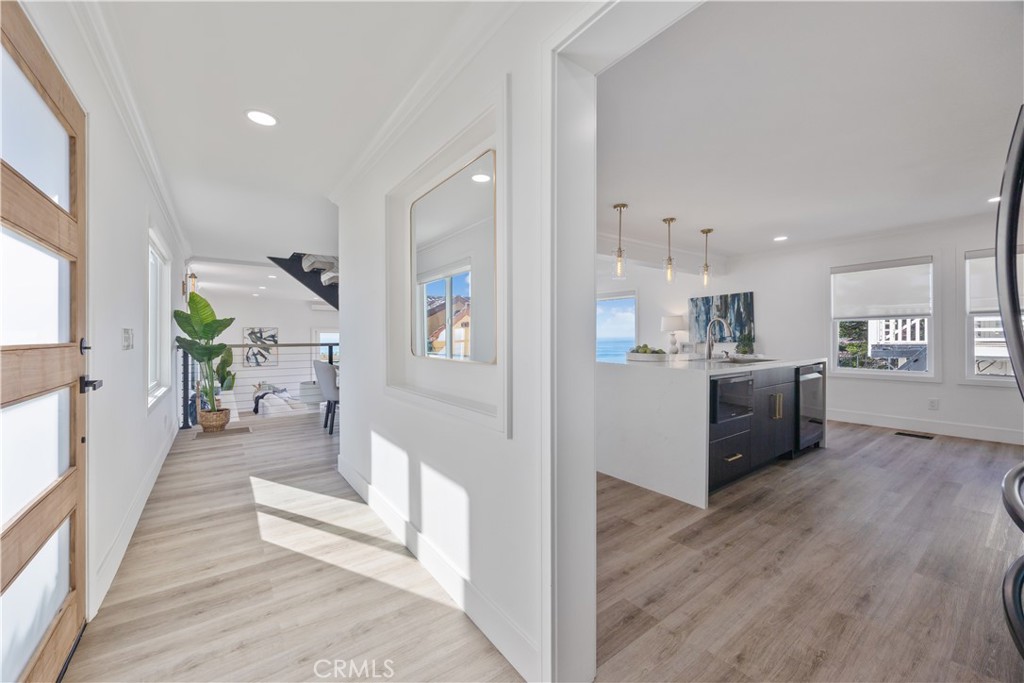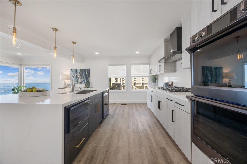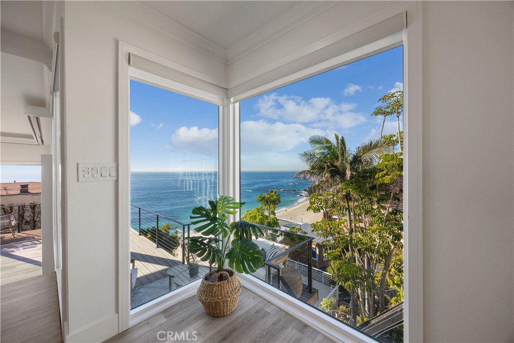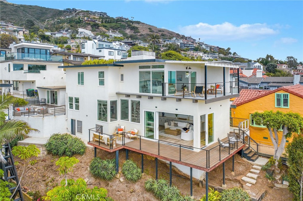 Panoramic Ocean Views • Iconic Beach Setting • Quiet Coastal Retreat Wake up to sweeping ocean, white-water, Catalina Island, and year-round sunset views from this exceptional South Laguna Beach retreat overlooking iconic Thousand Steps Beach. Set on the ocean side of Coast Highway within the private 12-home enclave of Point Place, this residence offers a rare combination of privacy, breathtaking views, and effortless coastal living. Designed as an ideal second home or weekend escape, the light-filled open floor plan features high ceilings and expansive glass that frame stunning beach and ocean vistas. The updated kitchen, finished with quartz countertops and newer appliances, opens seamlessly to the dining and living areas, creating an inviting flow for entertaining or relaxed coastal living. A full sliding glass wall system opens to ocean-view decks, allowing indoor and outdoor living to blend effortlessly. Two expansive ocean-view decks and a private backyard terrace offer multiple settings for morning coffee, sunset gatherings, or simply enjoying the sound of the waves below. The flexible floor plan includes four bedrooms, with the upstairs primary suite offering spectacular ocean views and a peaceful retreat. The main level also provides a primary bedroom option or additional living flexibility. Additional highlights include an uncovered parking court accommodating multiple vehicles, a private gated entrance, a dedicated area for surfboards and beach gear, and an outdoor shower. The community offers private beach access from within Point Place (currently under repair; status subject to city approval). Quietly tucked away yet moments from the heart of Laguna Beach, the home is close to renowned dining, galleries, and beaches, with convenient access to John Wayne Airport, Dana Point Harbor, and San Clemente Pier. A rare opportunity to own a quiet, hidden coastal retreat where panoramic views, privacy, and the Laguna Beach lifestyle take center stage.