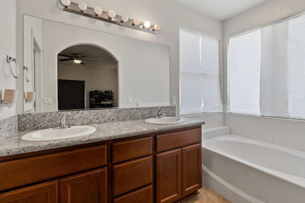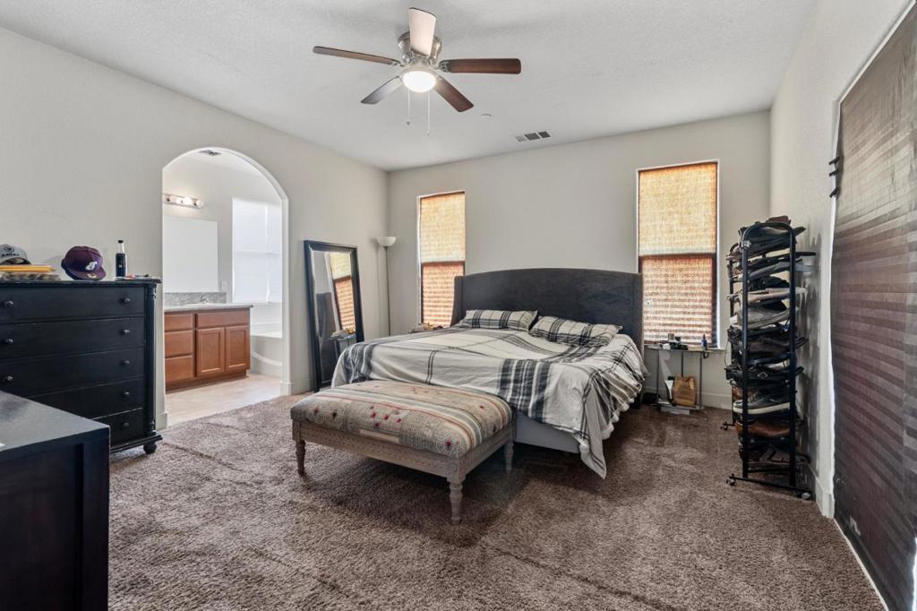 Located in the quiet and highly desirable neighborhood of Monte Vista Estates, this beautiful two-story home offers 2,034 square feet of thoughtfully designed living space. With an impressive open floor plan, soaring 20-foot ceilings, and expansive windows, the home is filled with natural light, creating a warm and inviting atmosphere. Featuring four spacious bedrooms and three full bathrooms, this residence is perfect for comfortable family living. The first floor boasts a seamless flow between the modern kitchen, dining area, and great room ideal for both everyday living and entertaining. The kitchen is equipped with shaker-style cabinetry, granite countertops, and stainless-steel appliances, including a range, microwave, and dishwasher. The primary suite is conveniently located on the main level, offering private access to the backyard through a patio door. It includes a luxurious ensuite bathroom with dual sinks, a large walk-in closet, and a spacious shower with a built-in bench. Upstairs, you'll find three additional bedrooms and a full bathroom, providing ample space for family members or guests. This exceptional home combines modern design, practical layout, and an unbeatable location dont miss your opportunity to make it yours.