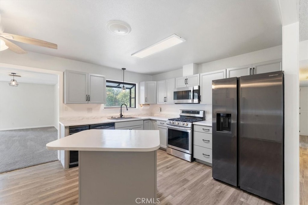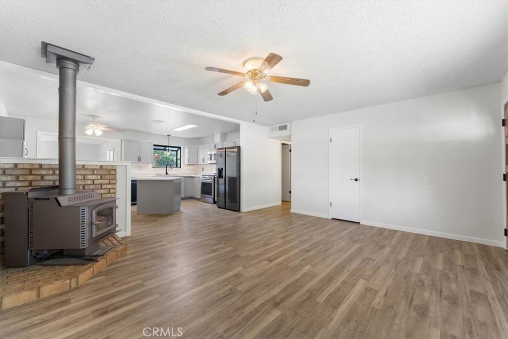 Charming and move-in ready, 3 bedrooms, 2 bathrooms, newer flooring, and fresh interior & exterior paint throughout. Updated kitchen, with movable island, is ideal for extra meal prep space and gathering around. Enjoy both a cozy living room and a spacious large family room with a pellet stove for added warmth. Covered front & back porch. The home also boasts a newer roof and is fully enclosed with perimeter fencing—ideal for privacy, pets, or play. Enjoy the mature apricot tree, and shed in back yard. A great blend of comfort and function!