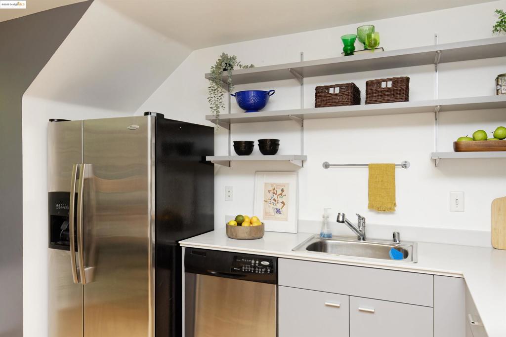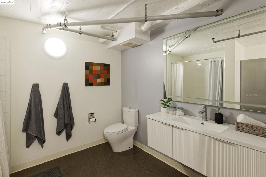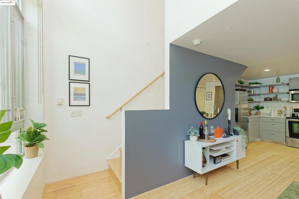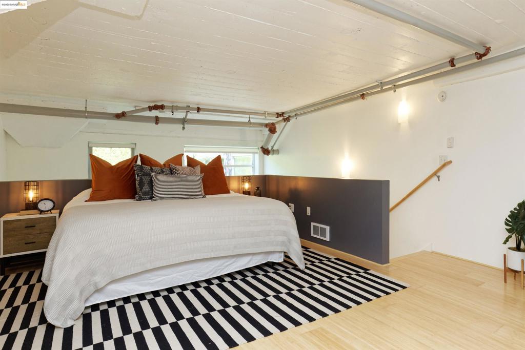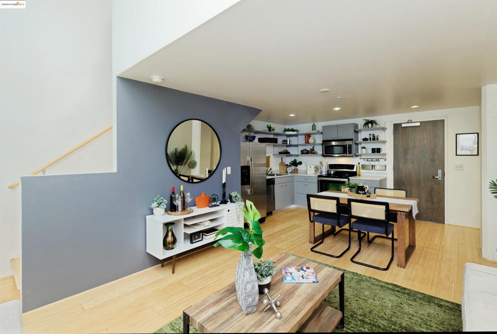 Easy to show! Call Sandi LIVE-WORK-PLAY-ENJOY! A Rarely available unique 1 bedroom, 1 bathroom bright and Sunny Courtyard Loft end unit at Pacific Cannery Lofts the Award Winning Rick Holliday-David Baker and Partners Gated historical community located in West Oakland. Don't miss this incredible opportunity to enjoy all the advantages of living in this cute end unit loft with lush courtyard views and lots of natural light. First floor open concept living with a modern kitchen that has all stainless appliances, Corian countertops, plenty of counter space for the cook, living room - dining area has great lush landscaping view. Lovely Bamboo flooring throughout. Upstairs Primary bedroom can easily accommodate a king size bed and has a huge closet with great custom built-ins. Fabulous separate flex space perfect for Home Office, Exercise area, Nursery and more! In-unit washer- dryer. Convenient location with easy commute, Low HOA, Pets OK and just a stone's throw from Emeryville, San Francisco, Downtown Oakland, Bart, freeways, bike paths. One assigned covered parking space with EV charger in gated garage. Secure bike room & dog washing station too. Vacant and easy to show.