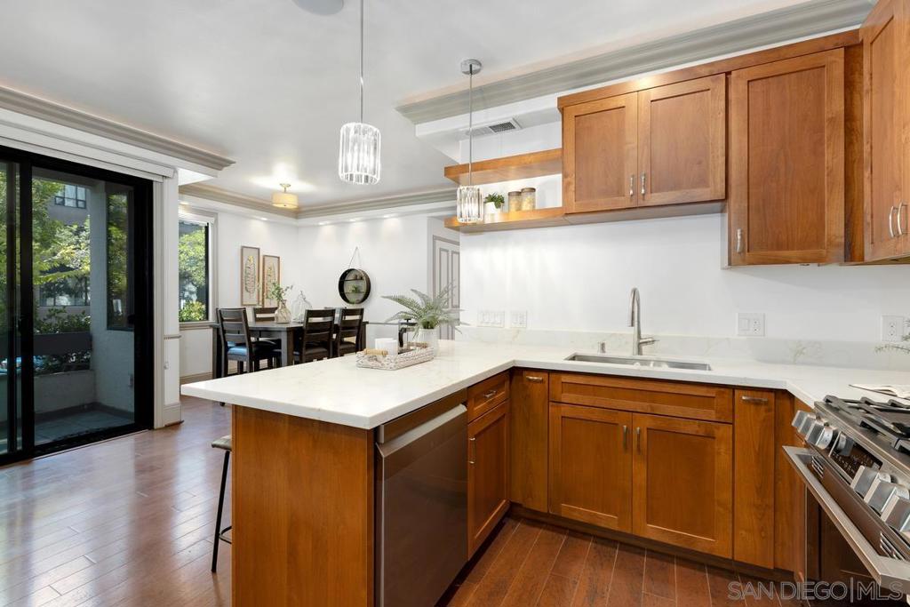 Reduced Price! STUNNING Move in ready single level move in ready home! No expense spared renovation includes brand new kitchen with custom made wood cabinets and beautiful solid surface countertops. All new appliances. Beautiful wood floors throughout and attention to detail at every turn. Incredible office with full builtins and private bar sink and build in high end refrigerator. Fully tiled bathroom conveniently located off the hallway. Also features 3 patios including one that overlooks Pantoja Park, one facing G Street, and another private patio facing the interior. A single parking spot is also located just steps away. Forced air heating, as well as a brand new high end tankless water heater round out the list of desired features. There are many more details to appreciate. Come see them in person!