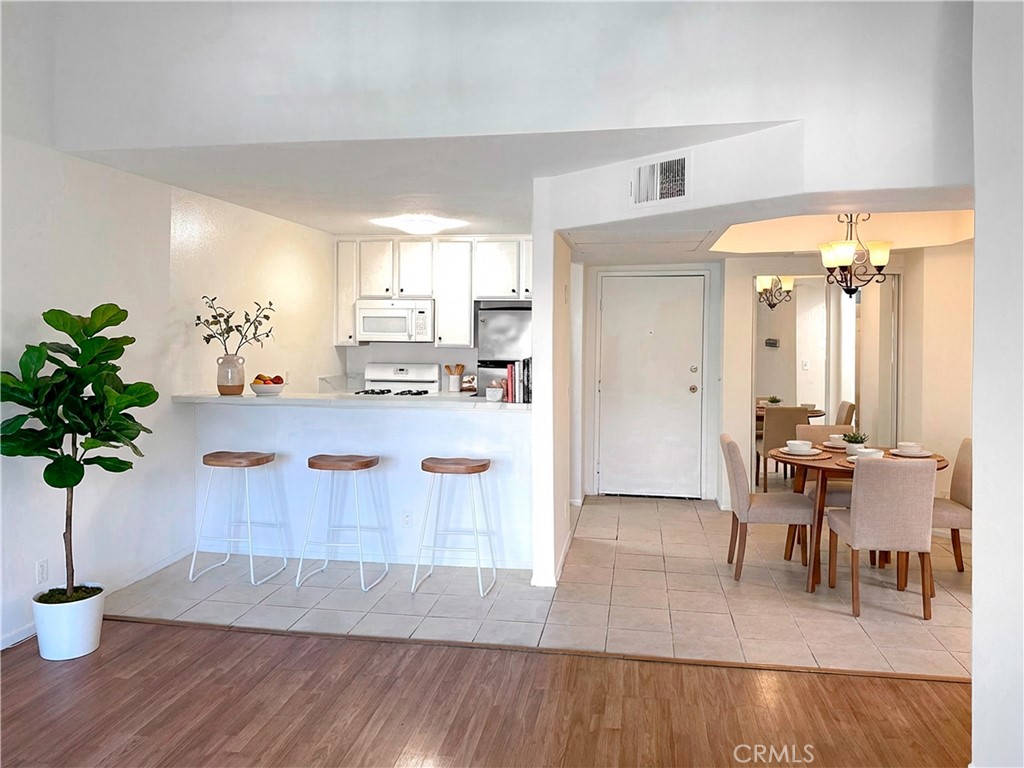 This incredible 1+1 freshly painted penthouse unit with vaulted ceiling is very bright with views of the trees and close proximity to area shops and restaurants. Great complex with a lot of trees and greenery. Spacious living room with fireplace and large balcony with storage. Open kitchen with brand new Quartz counter tops and breakfast counter. Dining area. Primary bedroom with vaulted ceiling and walk-in closet. Washer and dryer hook-ups in the closet. Full hallway bathroom. Other features include wood and tile floors, plenty of closet space. Small complex with pool and spa. Gated garage with 2 car parking. Plenty of guest parking. Prime location.
