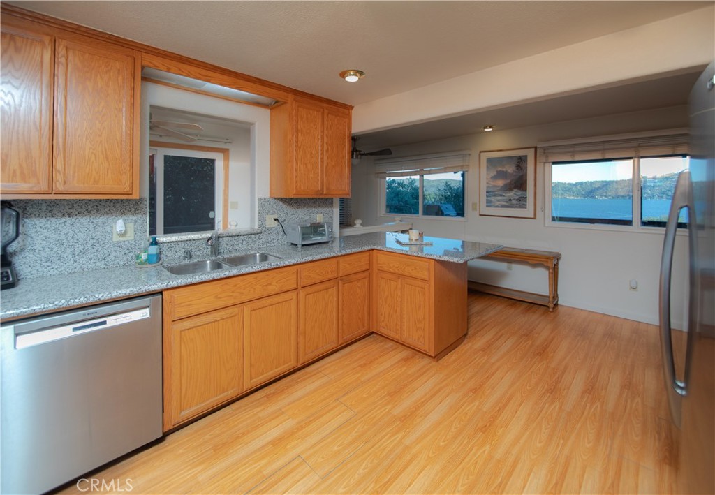 Spectacular Lake Views & Outdoor Living! Welcome to your private retreat! This charming 2 bedroom, 2 bath home sits on an oversized 16,000+ sq ft lot and boasts panoramic lake views you have to see to believe. The updated kitchen features granite countertops and an open layout perfect for entertaining. Step outside onto the expansive deck—ideal for morning coffee or sunset dinners—and soak in the spa tucked under a romantic gazebo. There’s plenty of room for your hobbies or toys with two storage sheds and a 1-car garage with a custom workshop area for hobbies. Whether you're searching for a peaceful home away from city life or a potential short-term rental investment, this property checks all the boxes. With space, views, and unbeatable charm, this one is ready to impress!