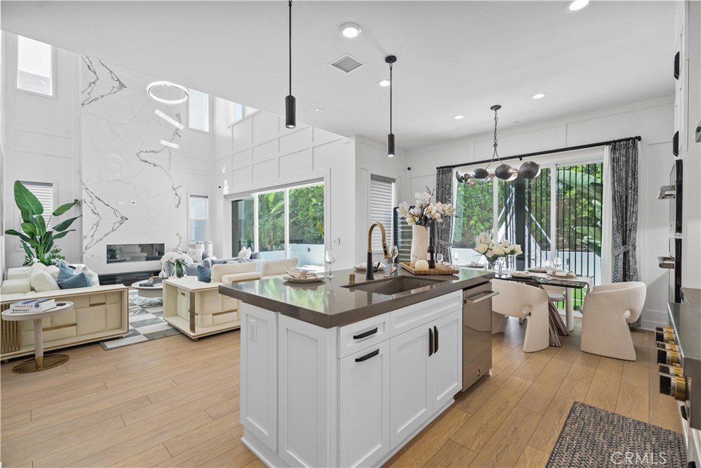Modern Luxury Toll Brothers Home in Metro Heights, Montebello!Welcome to this exquisite three-story modern luxury residence in the prestigious, guard-gated community! This stunning home offers an exceptional blend of bold design, luxury finishes, and versatile spaces. Enter through a dramatic three-story foyer highlighted by soaring ceilings and an elegant chandelier. To the right, a spacious room currently serves as a home office but can easily convert into a bedroom or private gym.The impressive two-story great room boasts custom wall paneling and a striking linear fireplace set against a floor-to-ceiling natural stone backdrop, creating a warm yet sophisticated atmosphere. Expansive sliding doors open to a beautifully landscaped backyard featuring a built-in children’s swing bed and tranquil water feature—perfect for entertaining or unwinding under the stars.The modern chef’s kitchen is a dream, offering a large center island with breakfast bar, abundant cabinetry and counter space, and a spacious walk-in pantry. A whole-house water filtration system further enhances comfort and peace of mind. Upstairs, discover three ensuite bedrooms, including a luxurious primary suite with a private home theater setup complete with projector and screen. The primary suite also features a massive custom walk-in closet and a spa-inspired bathroom with a large soaking tub, lavish walk-in shower, dual vanities, and a Kohler smart toilet. Two secondary bedrooms each offer generous closets and premium Kohler fixtures. The third floor opens to a versatile loft space with motorized window shades and a covered balcony—perfect for a media room, game room, or creative studio. An additional bedroom and full bathroom on this level provide excellent accommodation for guests. Community highlights include a resort-style clubhouse, swimming pool and spa, fitness center, BBQ areas, and event spaces, all within the secure gated environment of Metro Heights.Ideally located close to Downtown Los Angeles with easy access to the 60 Freeway, this home offers quick commutes and a vibrant lifestyle, with shopping, dining, and entertainment just minutes away.Experience luxury, comfort, and modern elegance in this exceptional home!
