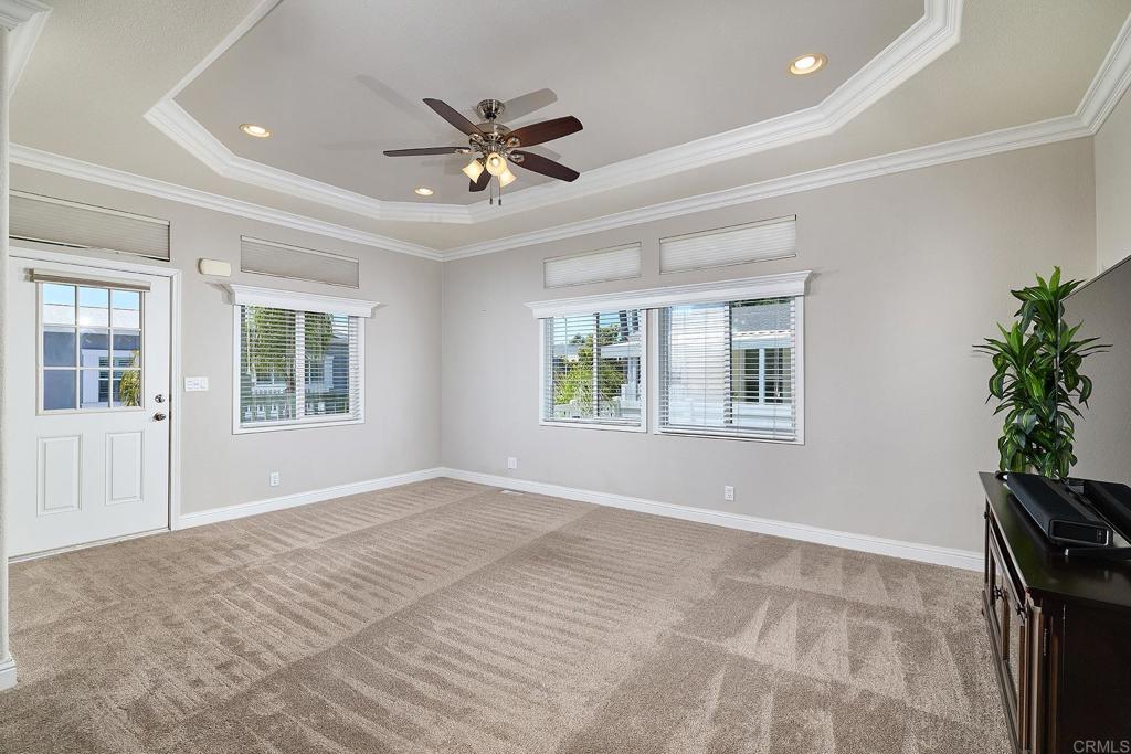 $25,000 PRICE REDUCTION! NO PROPERTY TAXES! Stunning curb appeal and conveniently located in the exclusive 55+ gated community of Lakeshore Gardens! Beautiful 2015 build boasts serene front porch for enjoying morning coffee, an open floor plan with a spacious kitchen and breakfast nook, a generously sized primary bedroom with walk-in closet plus two additional bedrooms, one perfect as an office or den, an interior laundry room, and a large storage shed. Vinyl-fenced side yard with new, carefully chosen landscape and fountain offers privacy and zen, just outside your door. Lakeshore Gardens amenities include various recreational activities, including a library, pool, spa, sauna, fitness center, fireplace, and firepit for gathering, a clubhouse and more! Close in proximity to Carlsbad beaches, shopping, restaurants, freeway, medical services and more. Don't miss this fabulous home! Land Lease Community; Beginning 1/1/2026, land lease for incoming residents is $2675/mo. Buyers must be approved by the property management company before purchasing.