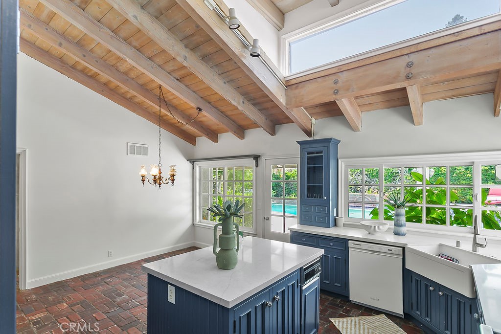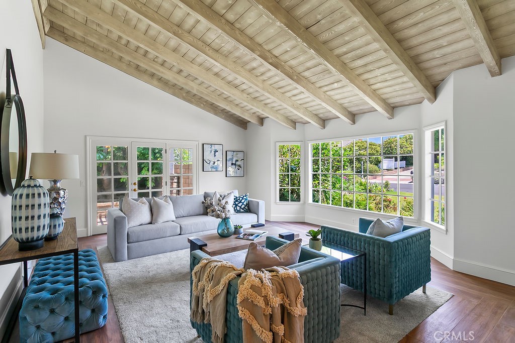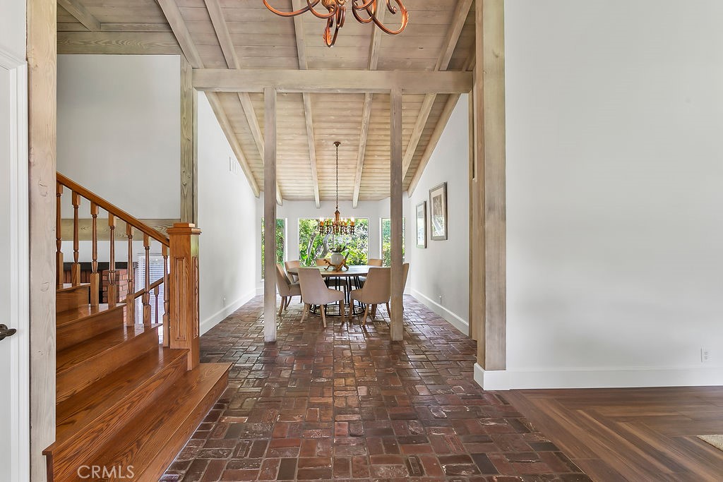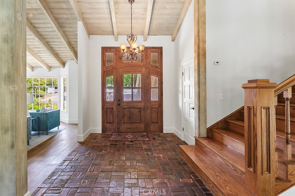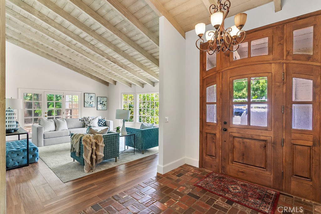 Nestled in the quiet and tranquil hills of Villa Park, this sprawling estate is full of the charm and character that defines the city in which it resides. This elegant example of the Americana dream has all the features you’d expect of a home built in an era where family and tradition was the goal. Arrive to a home with huge frontage and commanding curb appeal with rolling lawns, mature trees, and crisp architectural lines. Enter through hand crafted side lit and glass inlaid front door into foyer with soaring ceilings, brick finished flooring, and exposed beams and posts creating a warm and inviting feel. The living room is light and bright with cathedral ceilings and exposed T and G wood beam ceiling details. French doors to the spacious side yard give this room a light and airy ambiance. The dining room is perfect for those special holidays and gatherings with plenty of room for 8 person dining set. The custom-built kitchen has a cozy country charm, with handcrafted cabinets, large center island, stainless steel appliances, generous dining nook, farmhouse sink, glass-inlaid upper, and elegant brick and tile inlaid hood and splash design. Skylights flood the space with natural light, while French windows offer lovely views of the sparkling pool and yard. The family room has all the characteristics for nostalgic cozy nights! An expansive brick fireplace with oversized bricks and custom firewood box gives this room a homey feeling. The family room is also appointed with w/ wood floors, built in cabinets, and oversized windows w/ views of the backyard. The spacious primary bedroom features wood floors, a walk-in closet, and custom built-ins. The primary bath includes an elegant vanity, walk-in tub, and separate vanity desk. The secondary bedrooms are generous in size with fresh carpet, newly painted walls, & large French windows. Step outside to a parklike backyard, one of Villa Park’s signature features. Enjoy rolling lawns, a huge pool and spa, fruit trees, new vinyl fencing, built-in stainless-steel BBQ with ample counter space, mature landscaping, a detached utility room currently used as a classroom, an antique potting shed, and unmatched space and privacy. The raised planter beds, vintage greenhouse, and mature fruit trees are ready to be enjoyed and nurtured once again, just as they have been for decades. Other features include spacious bedrooms, dual vanity secondary bath, excellent location, separate outdoor entertainment areas, skylights, & more!