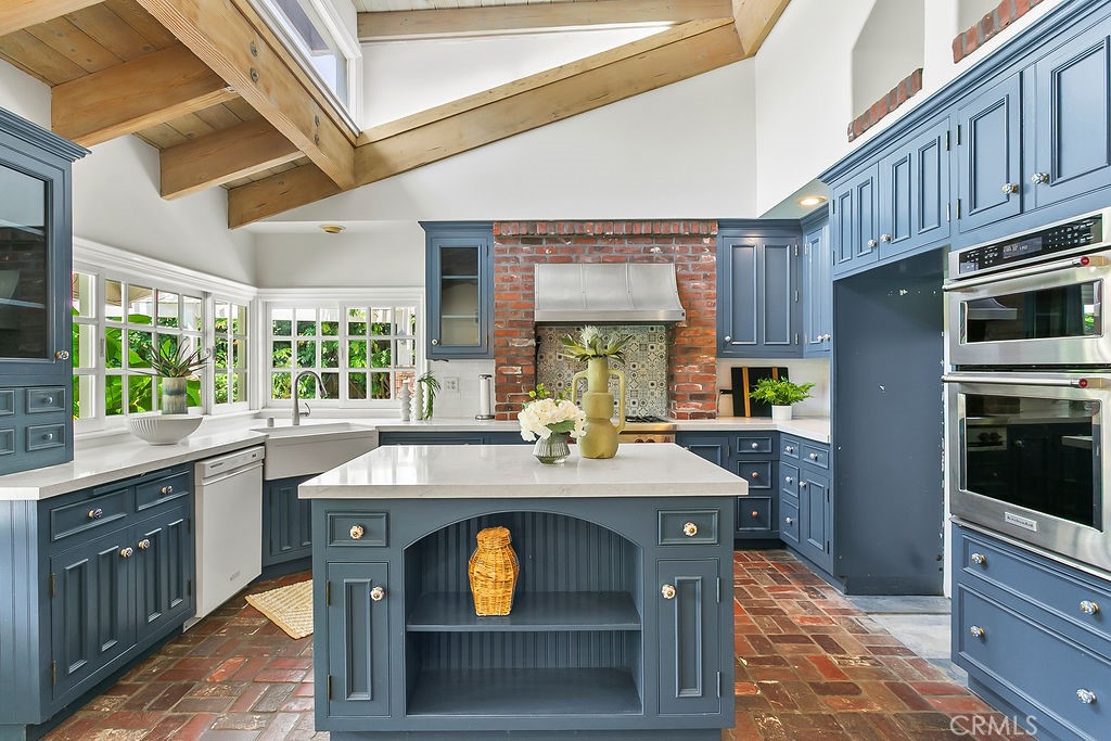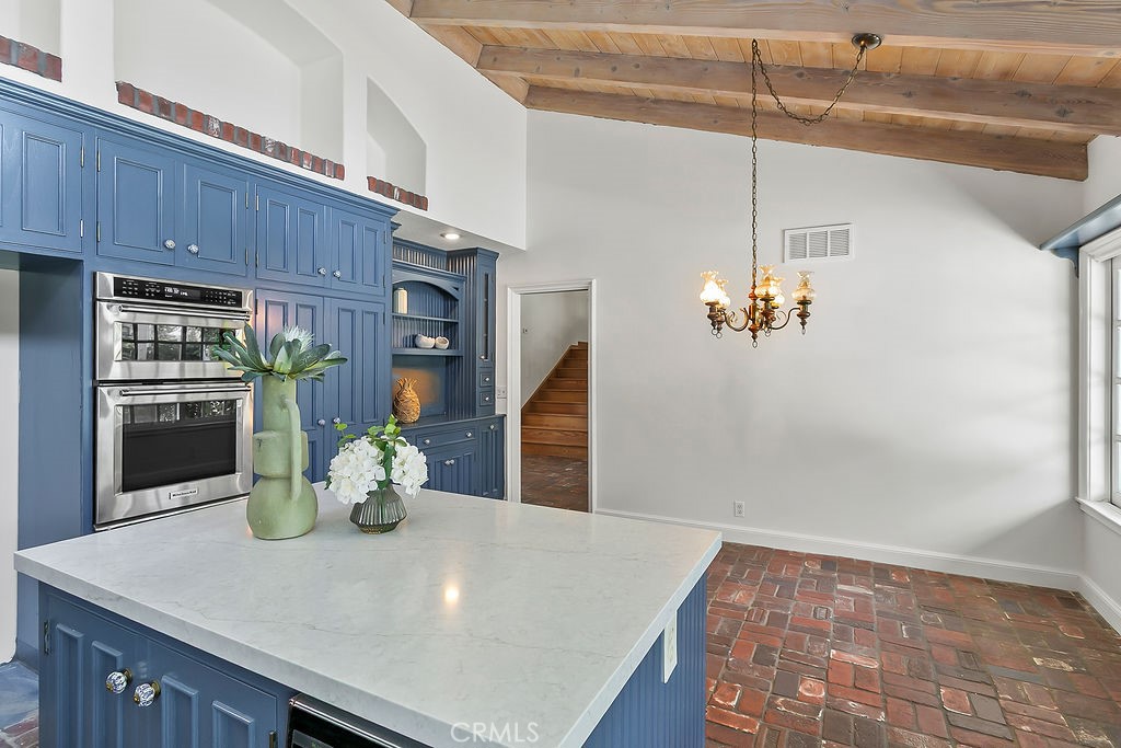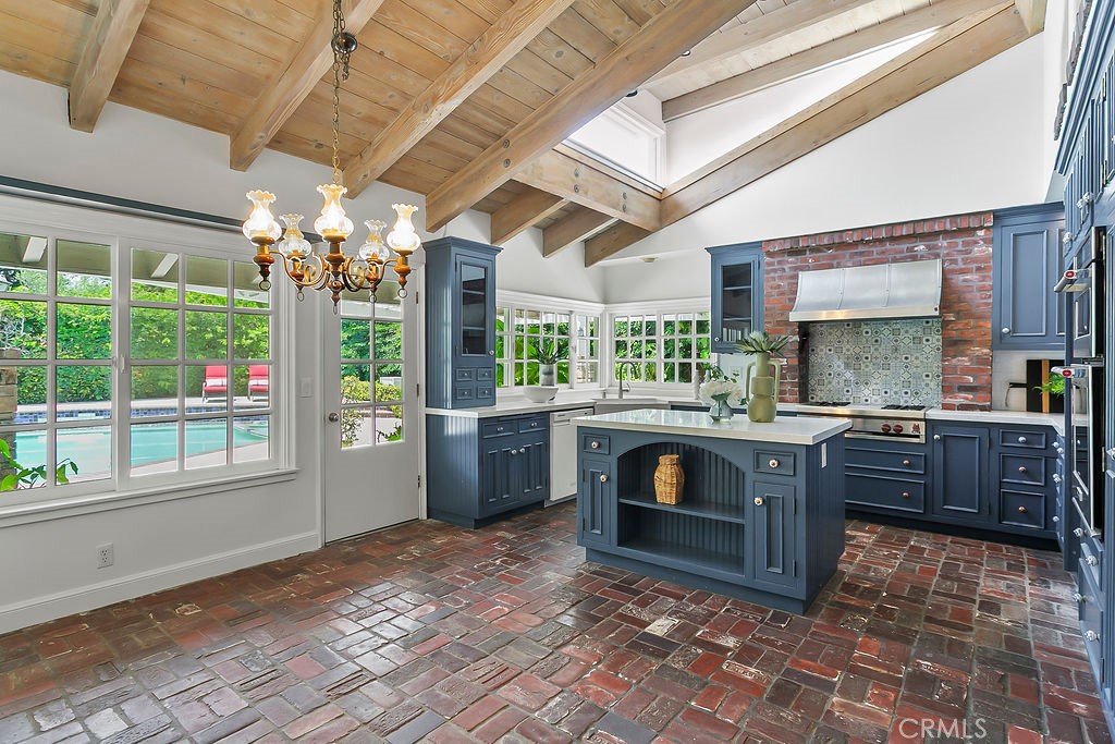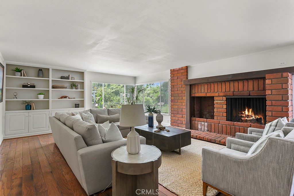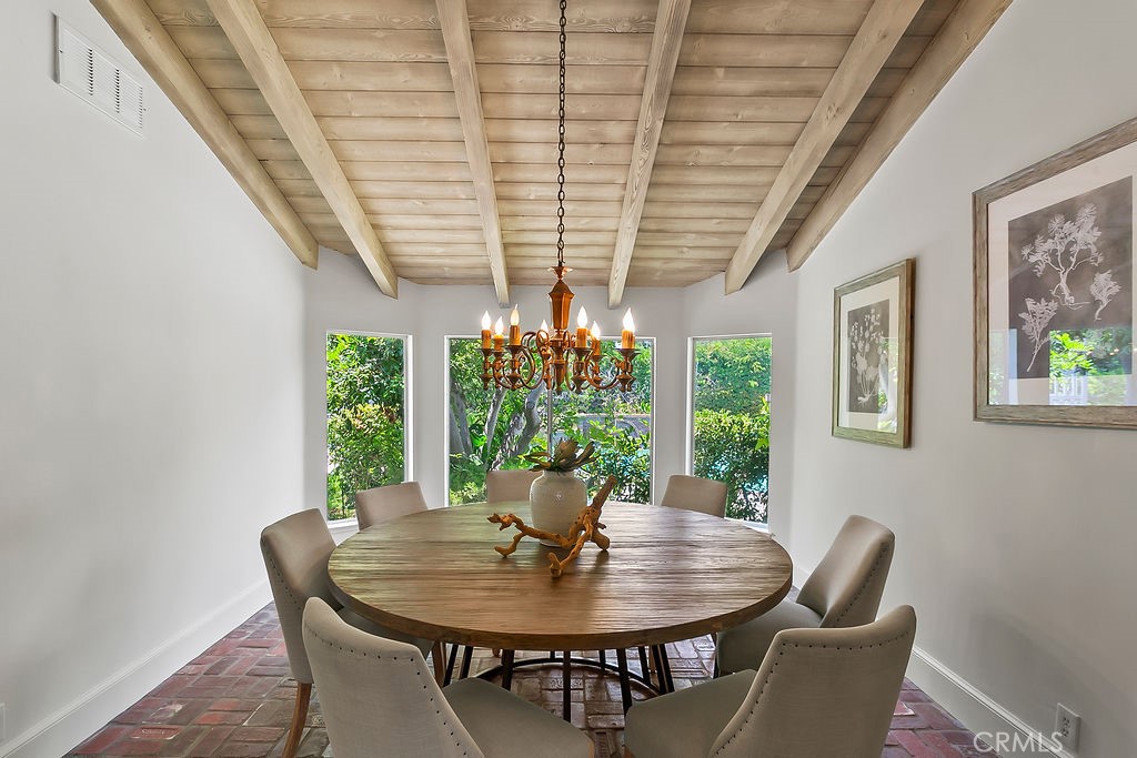 Nestled in the quiet and tranquil hills of Villa Park, this sprawling estate is full of the charm and character that defines the city in which it resides. This elegant example of the Americana dream has all the features you’d expect of a home built in an era where family and tradition was the goal. Arrive to a home with huge frontage and commanding curb appeal with rolling lawns, mature trees, and crisp architectural lines. Enter through hand crafted side lit and glass inlaid front door into foyer with soaring ceilings, brick finished flooring, and exposed beams and posts creating a warm and inviting feel. The living room is light and bright with cathedral ceilings and exposed T and G wood beam ceiling details. French doors to the spacious side yard give this room a light and airy ambiance. The dining room is perfect for those special holidays and gatherings with plenty of room for 8 person dining set. The custom-built kitchen has a cozy country charm, with handcrafted cabinets, large center island, stainless steel appliances, generous dining nook, farmhouse sink, glass-inlaid upper, and elegant brick and tile inlaid hood and splash design. Skylights flood the space with natural light, while French windows offer lovely views of the sparkling pool and yard. The family room has all the characteristics for nostalgic cozy nights! An expansive brick fireplace with oversized bricks and custom firewood box gives this room a homey feeling. The family room is also appointed with w/ wood floors, built in cabinets, and oversized windows w/ views of the backyard. The spacious primary bedroom features wood floors, a walk-in closet, and custom built-ins. The primary bath includes an elegant vanity, walk-in tub, and separate vanity desk. The secondary bedrooms are generous in size with fresh carpet, newly painted walls, & large French windows. Step outside to a parklike backyard, one of Villa Park’s signature features. Enjoy rolling lawns, a huge pool and spa, fruit trees, new vinyl fencing, built-in stainless-steel BBQ with ample counter space, mature landscaping, a detached utility room currently used as a classroom, an antique potting shed, and unmatched space and privacy. The raised planter beds, vintage greenhouse, and mature fruit trees are ready to be enjoyed and nurtured once again, just as they have been for decades. Other features include spacious bedrooms, dual vanity secondary bath, excellent location, separate outdoor entertainment areas, skylights, & more!