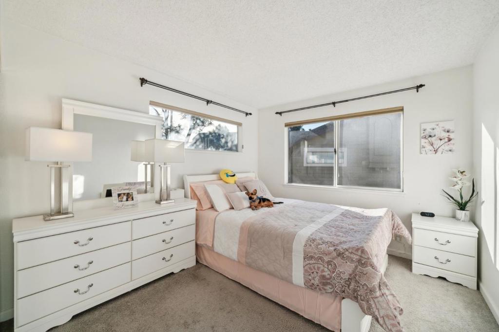 Gorgeous 3 Bedroom, 2.5 Bath Townhouse in South San Jose. Quiet corner lot location with lots of natural light. Gourmet kitchen with granite countertops, gas stove/range, built in microwave, and lots of cabinet space. Informal dining area and formal dining room. Laminate flooring in the living room, wood burning fireplace, recessed lighting, and ultra high ceilings. Spacious backyard area with a built in composite deck and lots of room for planters, patio furniture, and BBQ equipment. Master bedroom suite showcases a spacious walk-in-closet, dual sinks, and a roomy walk-in shower. Indoor washer/dryer area with built in laundry storage space. Updated lighting fixtures throughout and central A/C. Clean side-by-side 2 car garage. Close distance to VTA, Hwys 280/680/87/85, Cottle Park, Tennis Courts, Edenvale Gardens, Walking Trails, numerous restaurants/shopping centers, and a short drive to major high-tech companies. Pet friendly community with resort style pool area, mature trees, well maintained greenbelts, and very low HOA fee at $374/month.